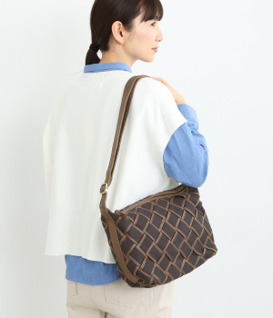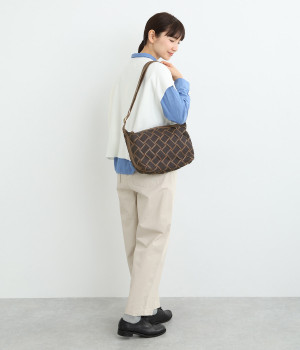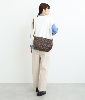 長さ調整可能なショルダーベルトで、肩掛けもななめ掛けも対応可能なバッグ。使い勝手のいいヨコ型で、マチもしっかりあるので500mlペットボトルや折り畳み傘なども収納できます。