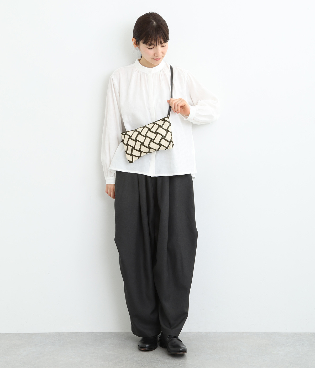 ちょっとしたお出掛けにちょうどいいミニサイズのバッグ。細めのショルダーベルトが上品な印象です。ベルトは長さ調整可能で、カジュアルな装いにマッチするななめ掛けから、きれいめにまとまる肩掛けまで対応。