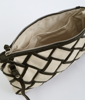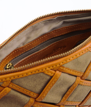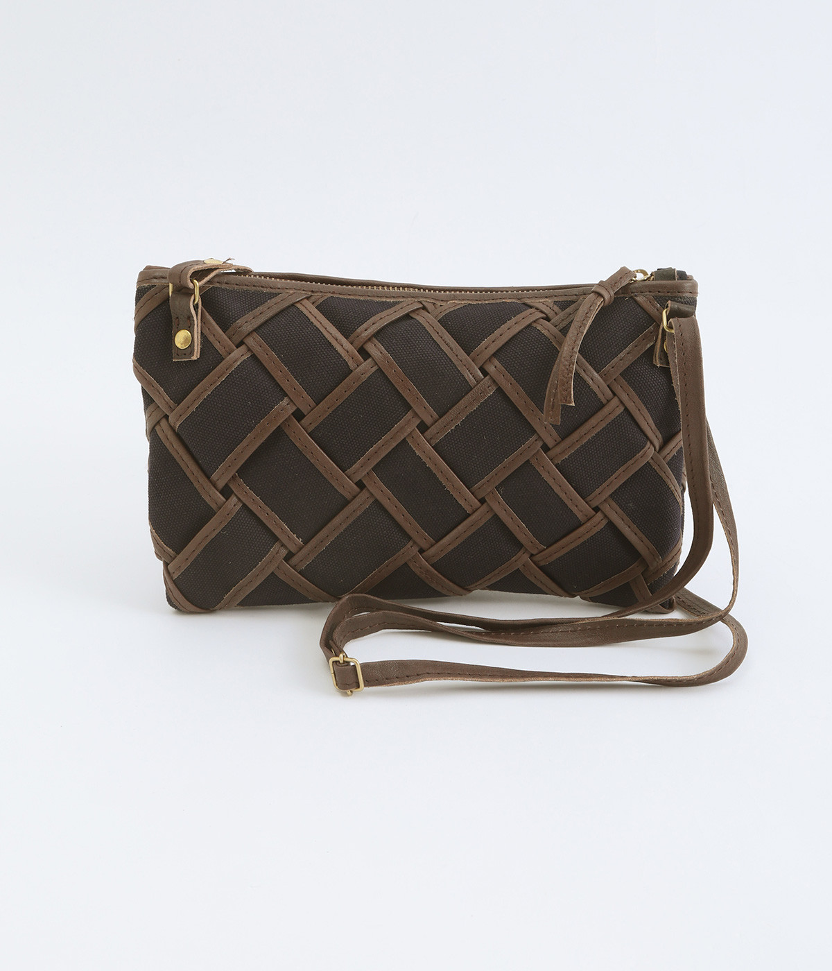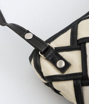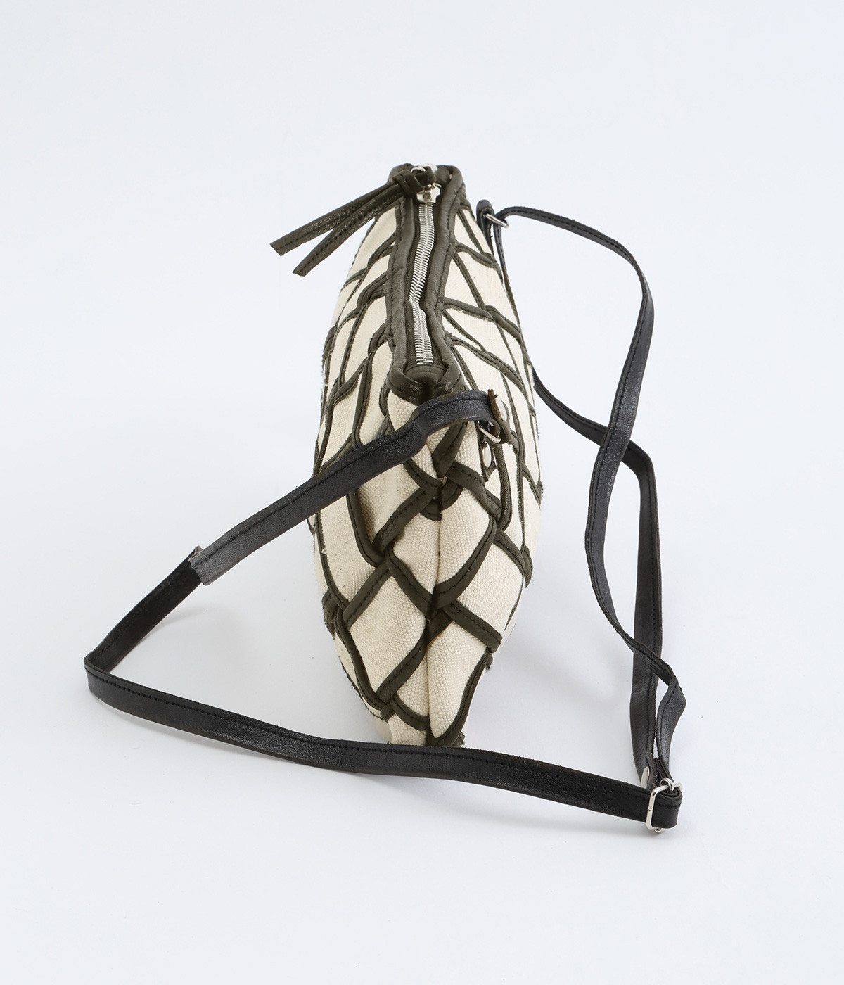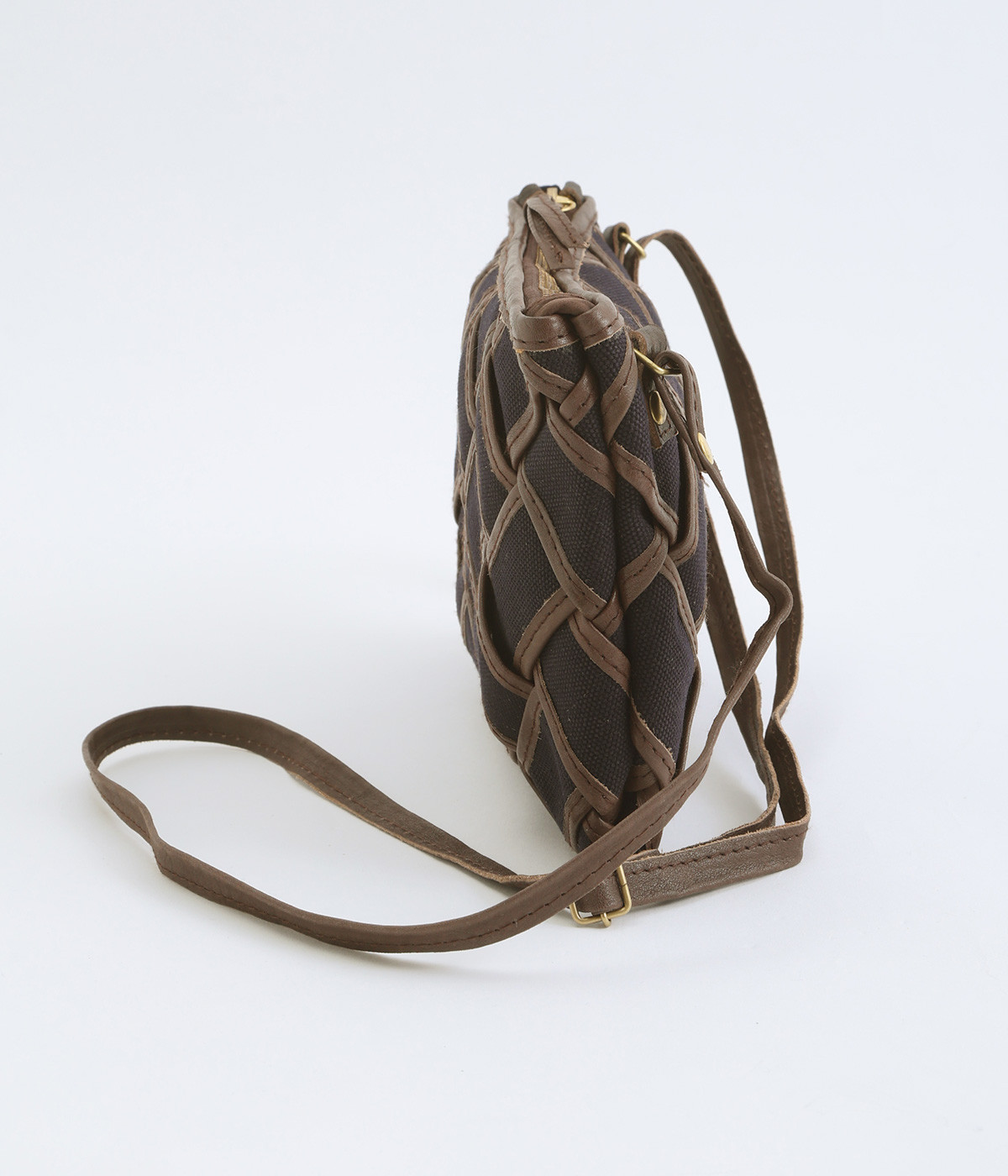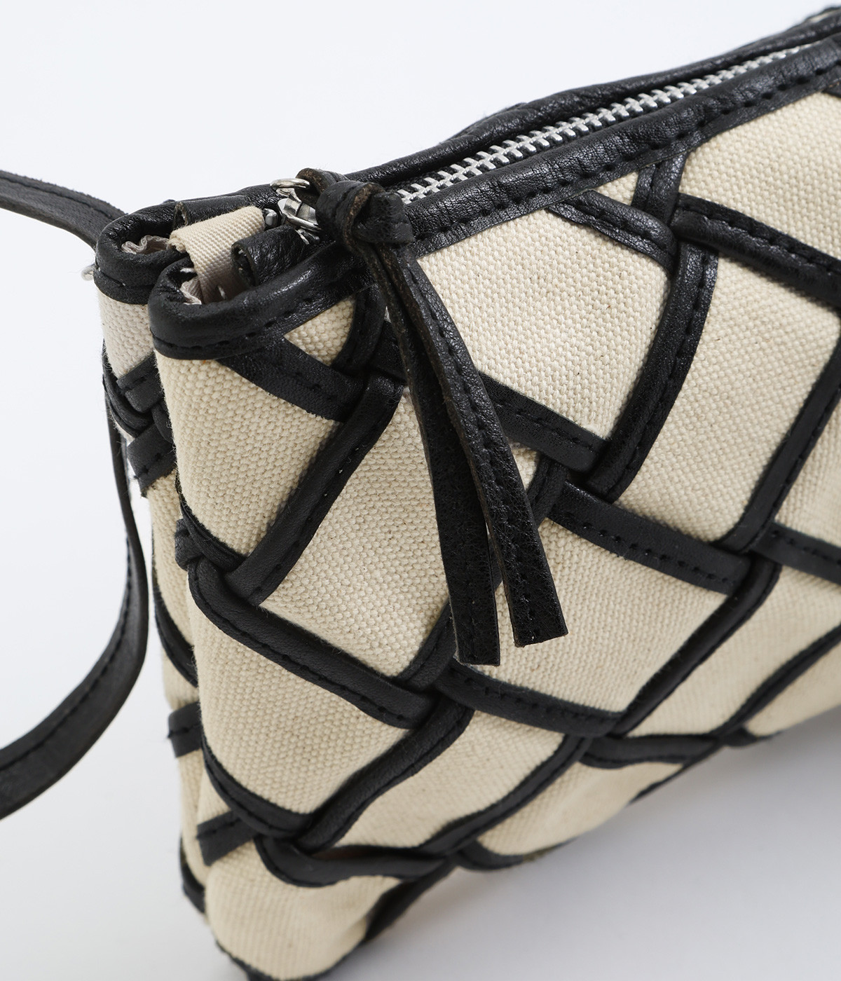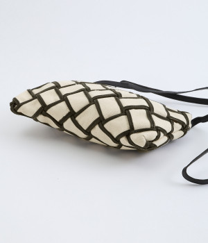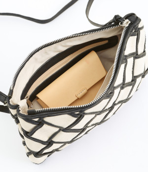 しっかりとしたコットンキャンバスを牛革でトリミングし、メッシュ状に編み立て。キャンバスのナチュラルさと、レザーの落ち着いた印象をあわせ持っています。ほのかにツヤのあるレザーが品のいい仕上がりです。