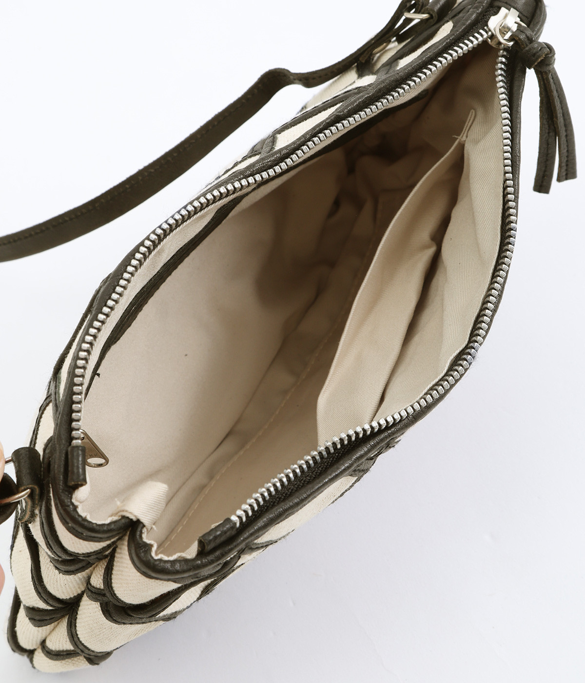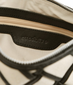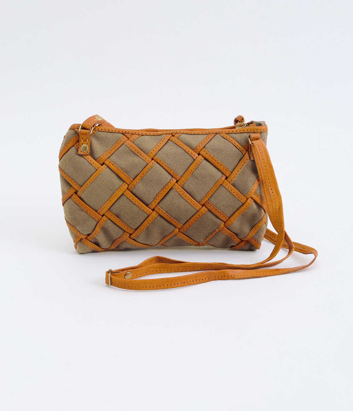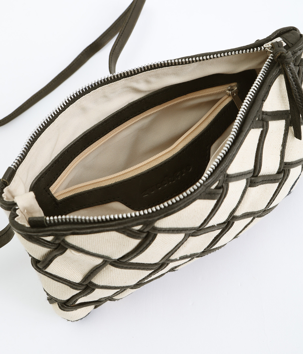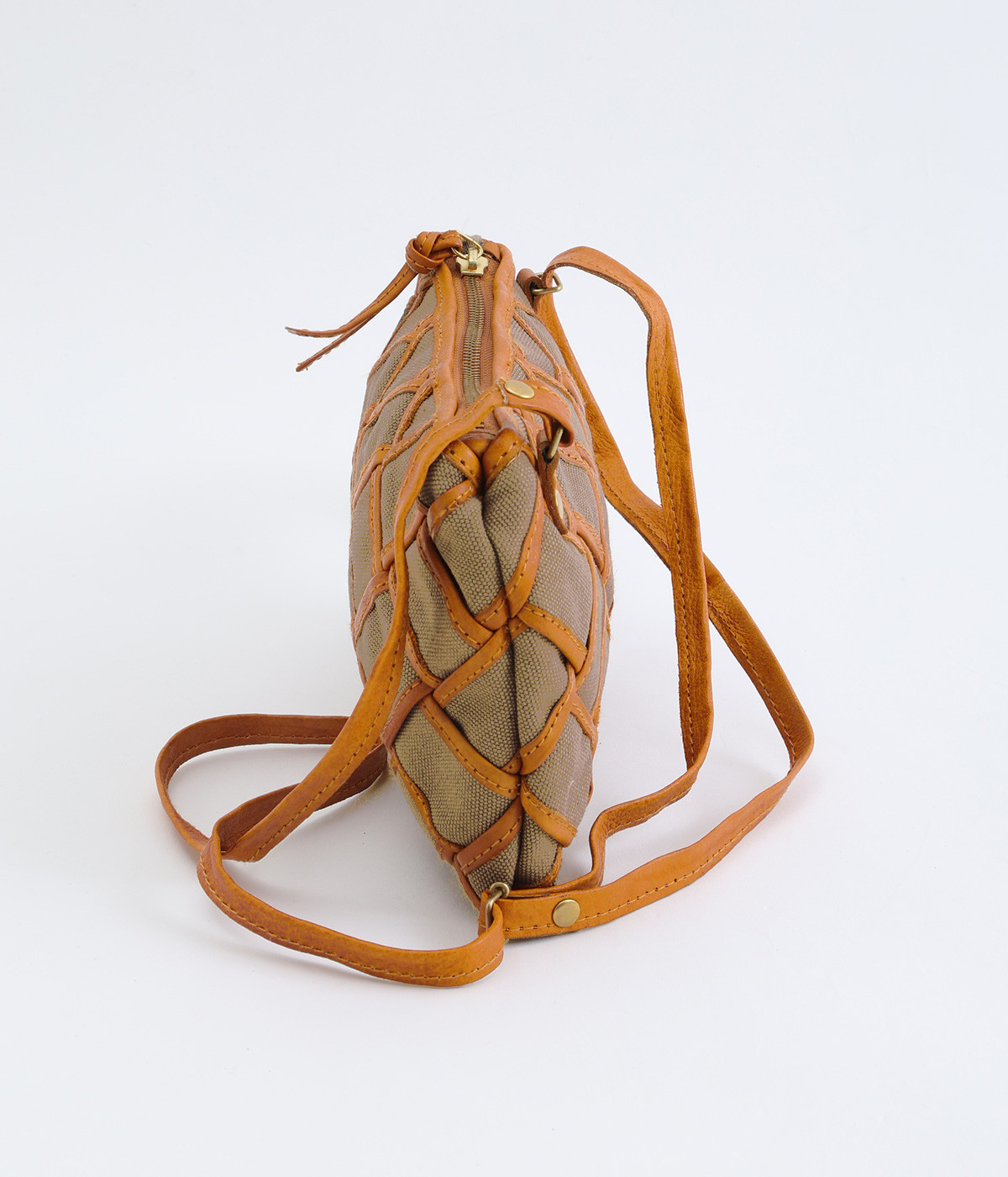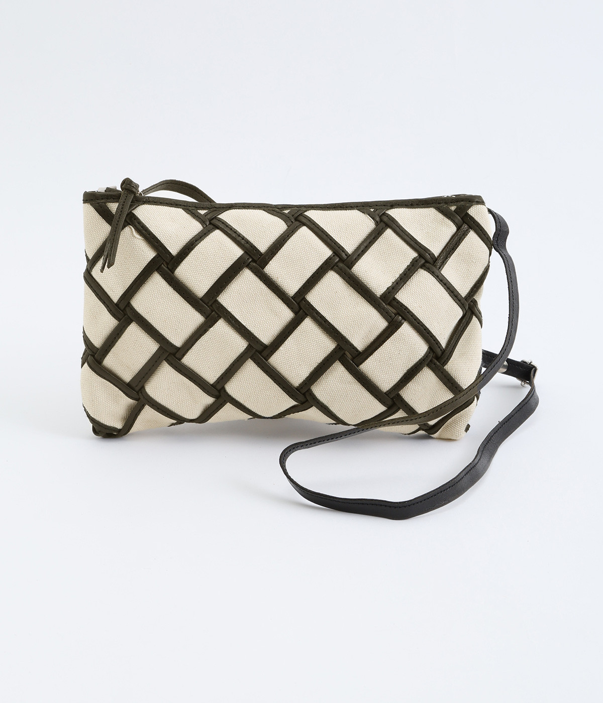 しっかりとしたコットンキャンバスを牛革でトリミングし、メッシュ状に編み立て。キャンバスのナチュラルさと、レザーの落ち着いた印象をあわせ持っています。ほのかにツヤのあるレザーが品のいい仕上がりです。
