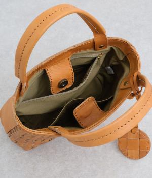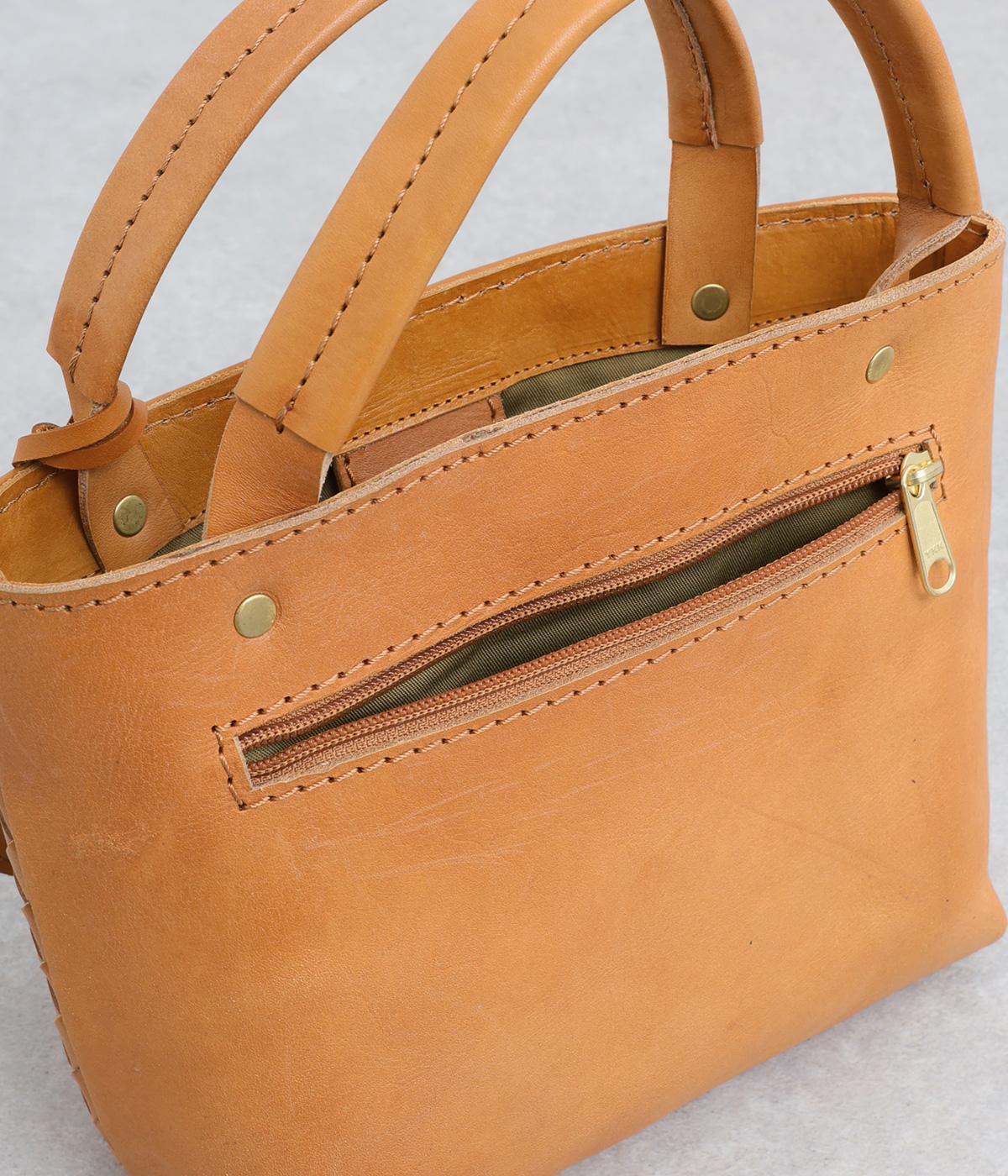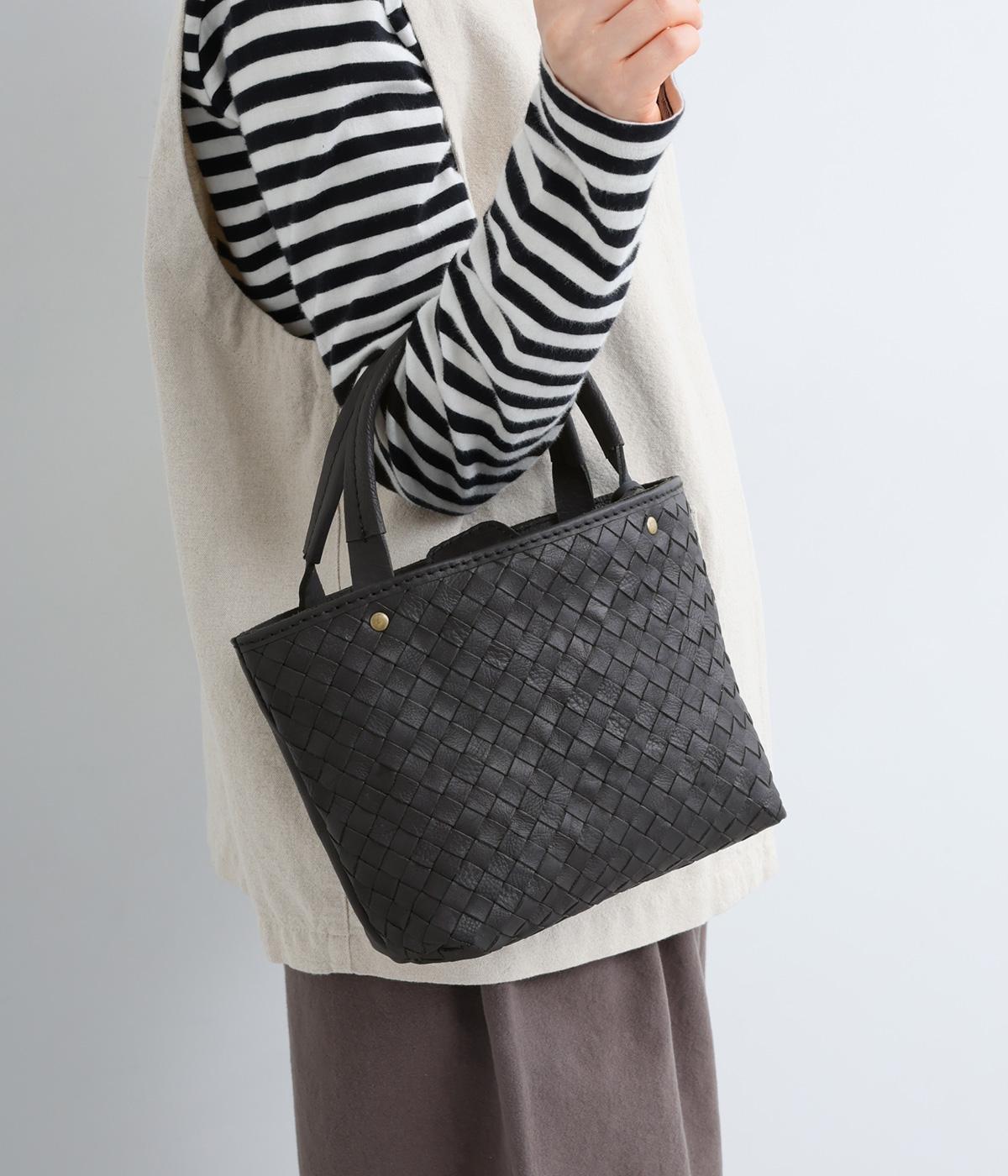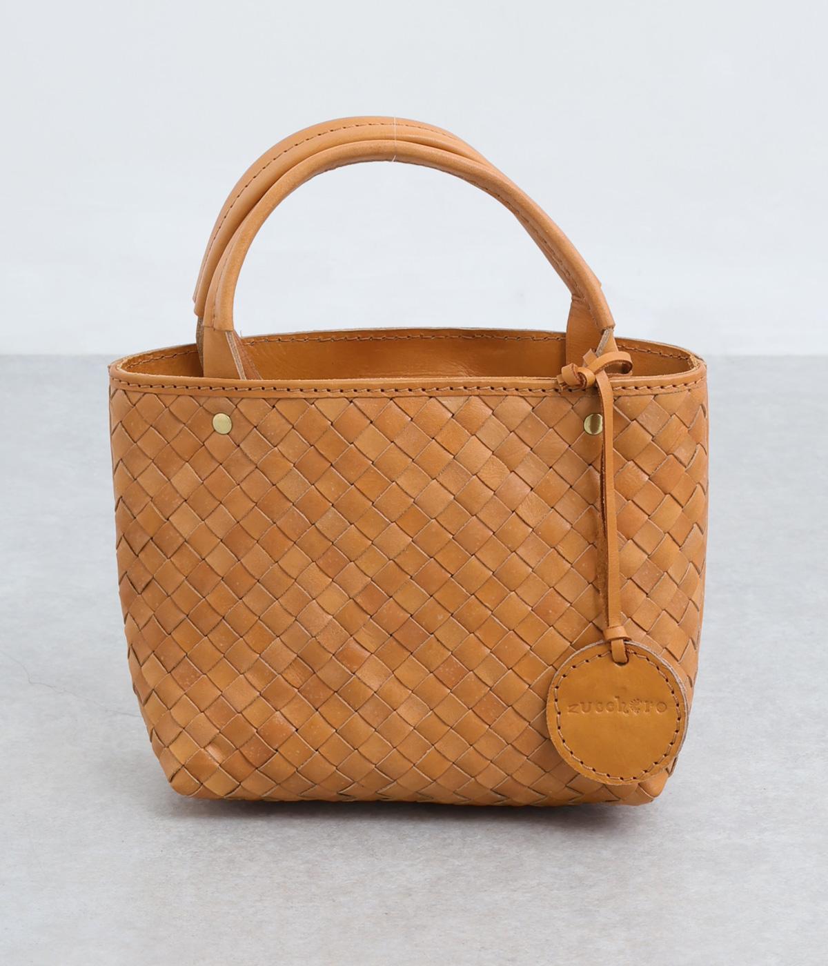 ほどよいサイズ感でオンにもオフにもマッチするハンドバッグ。格子が織りなす濃淡が奥行きのある表情をつくります。マグネットボタンの開閉で取り出しもスムーズ。zuccheroのロゴ入りタグが、さりげなくこなれ感を演出します。