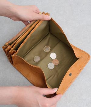 飽きの来ないベーシックなデザインで、長く愛用できる長財布を仕立てました。ぱかっと広がって取り出しやすい小銭入れをはじめ、大容量で使い勝手よく、実用性も兼ね備えました。