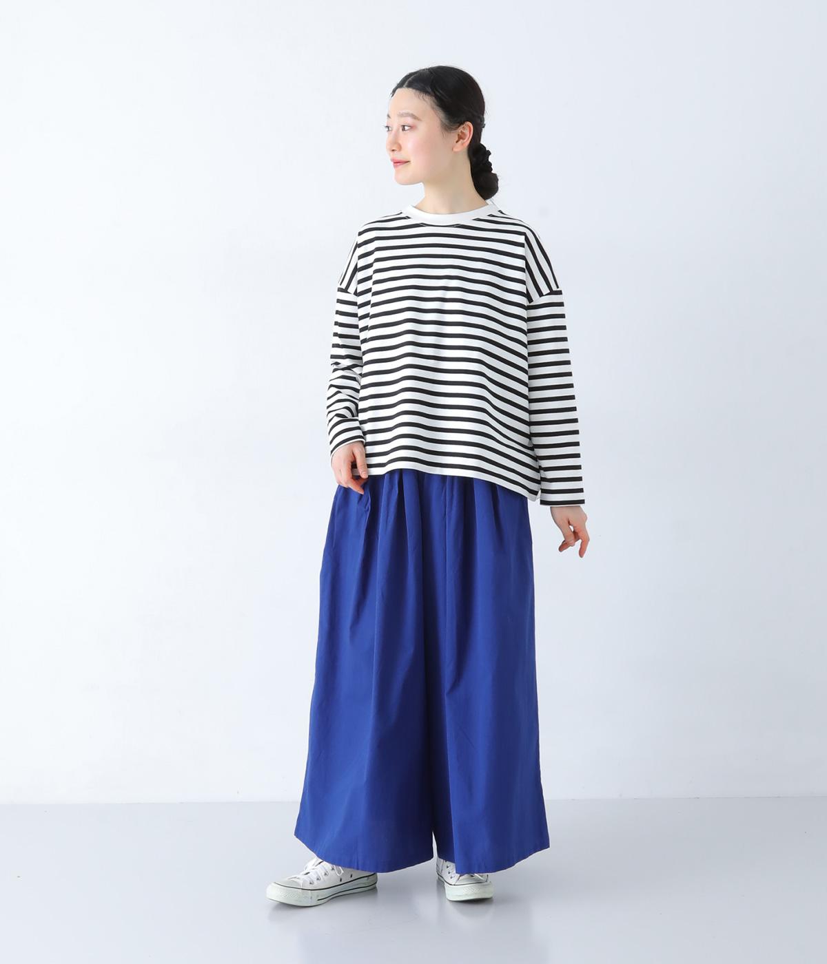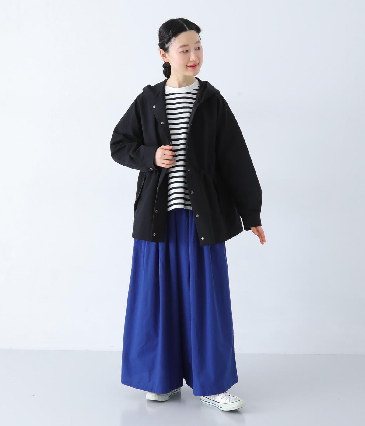 軽くてさらりとした肌ざわりのコットンポプリン生地です。ほどよいハリ感があり、シルエットをきれいにキープしてくれます。春夏は一枚で、肌寒い季節は中にタイツやレギンスなどを仕込んで着まわすのも◎。