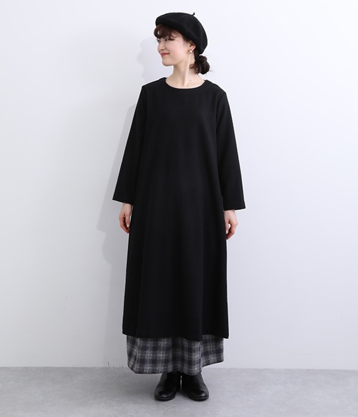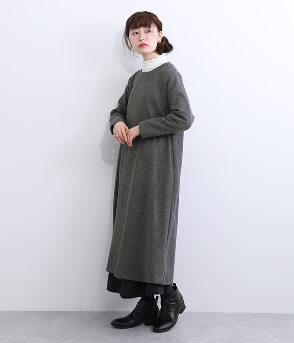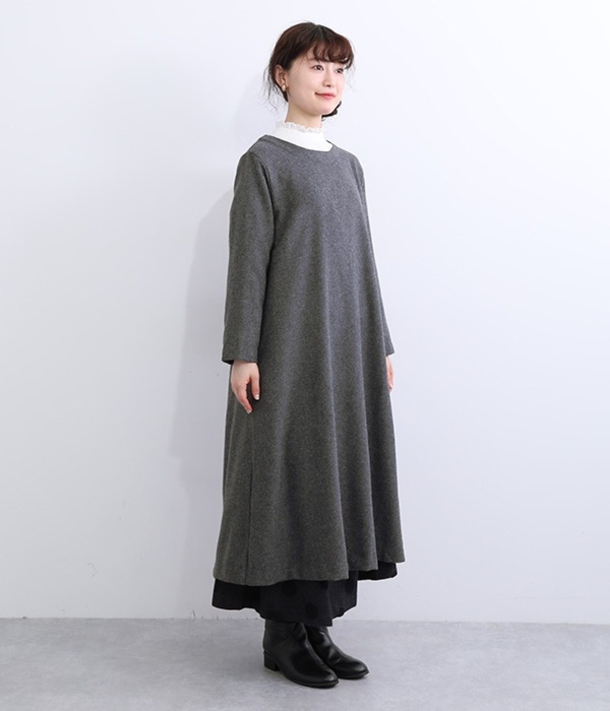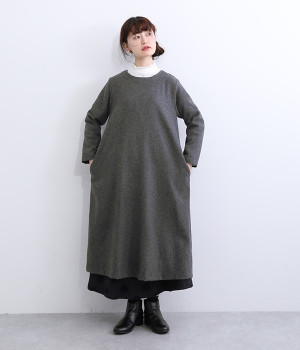 ほどよい厚みと落ち感で大人っぽく着こなせるウール混素材のワンピースです。すっきり上品な印象のAラインシルエットは、普段使いにもフォーマルシーンにも対応してくれます。ベストやアクセサリーを加えた着まわしも決まる、シンプルなクルーネックも◎。ボトムを合わせたカジュアルスタイルもおすすめです。