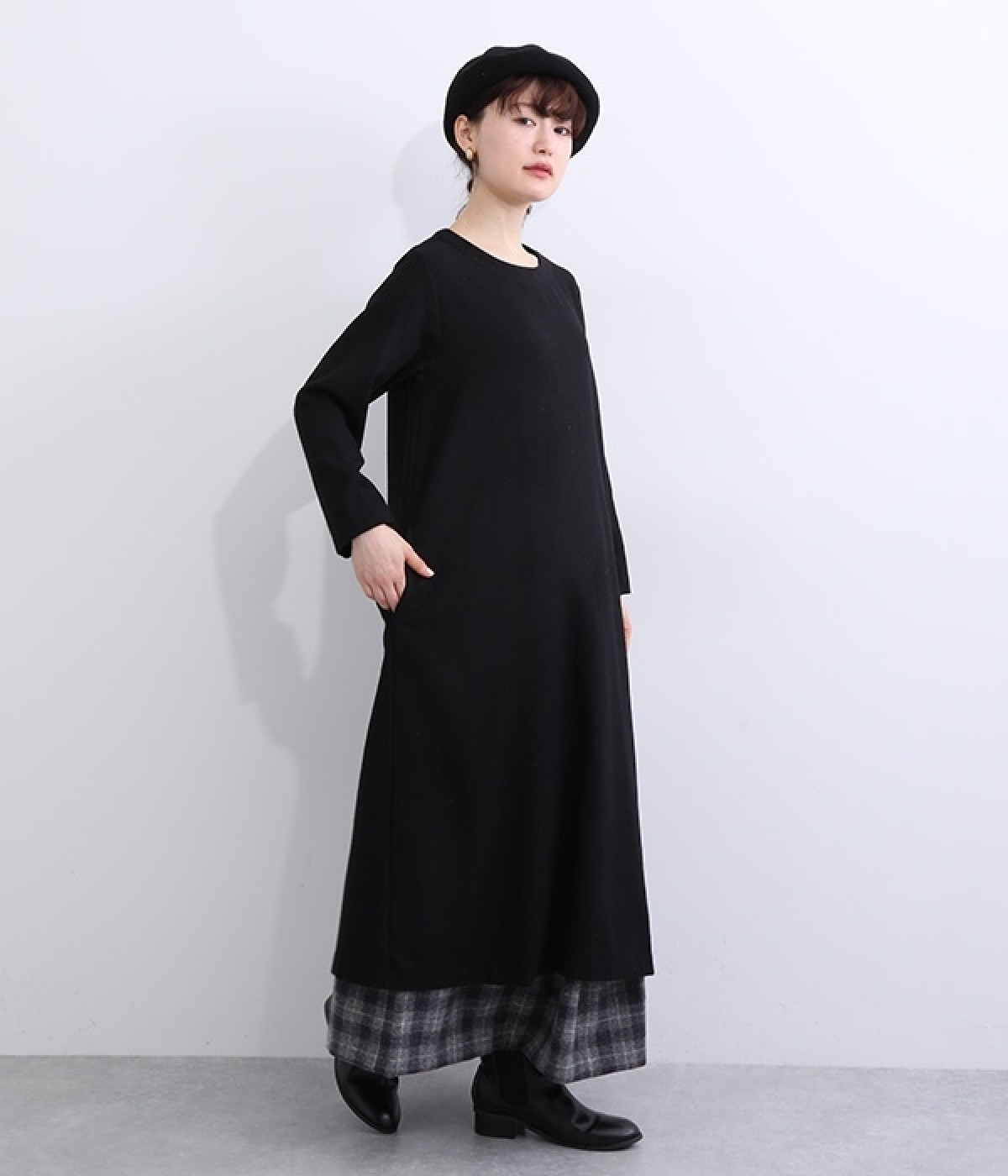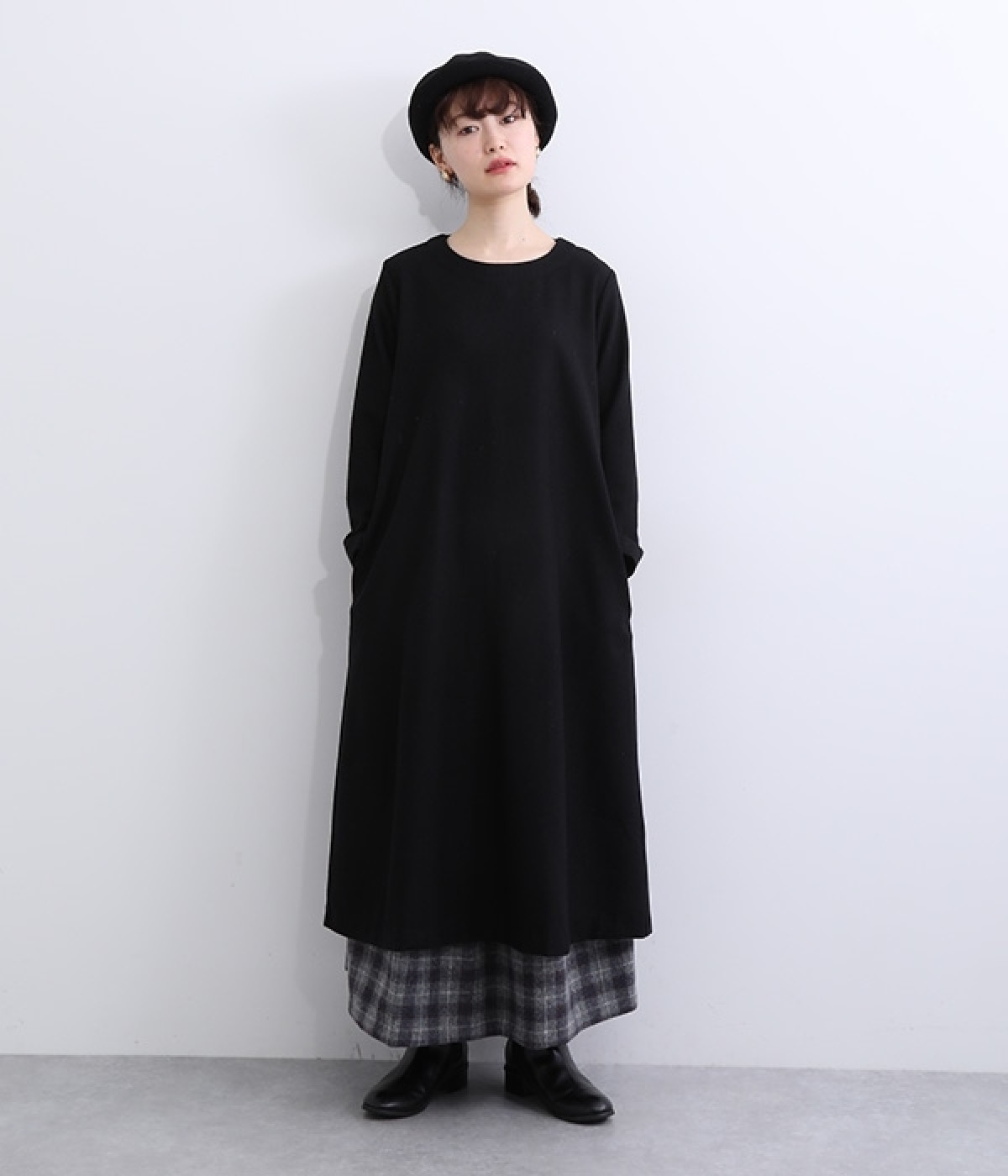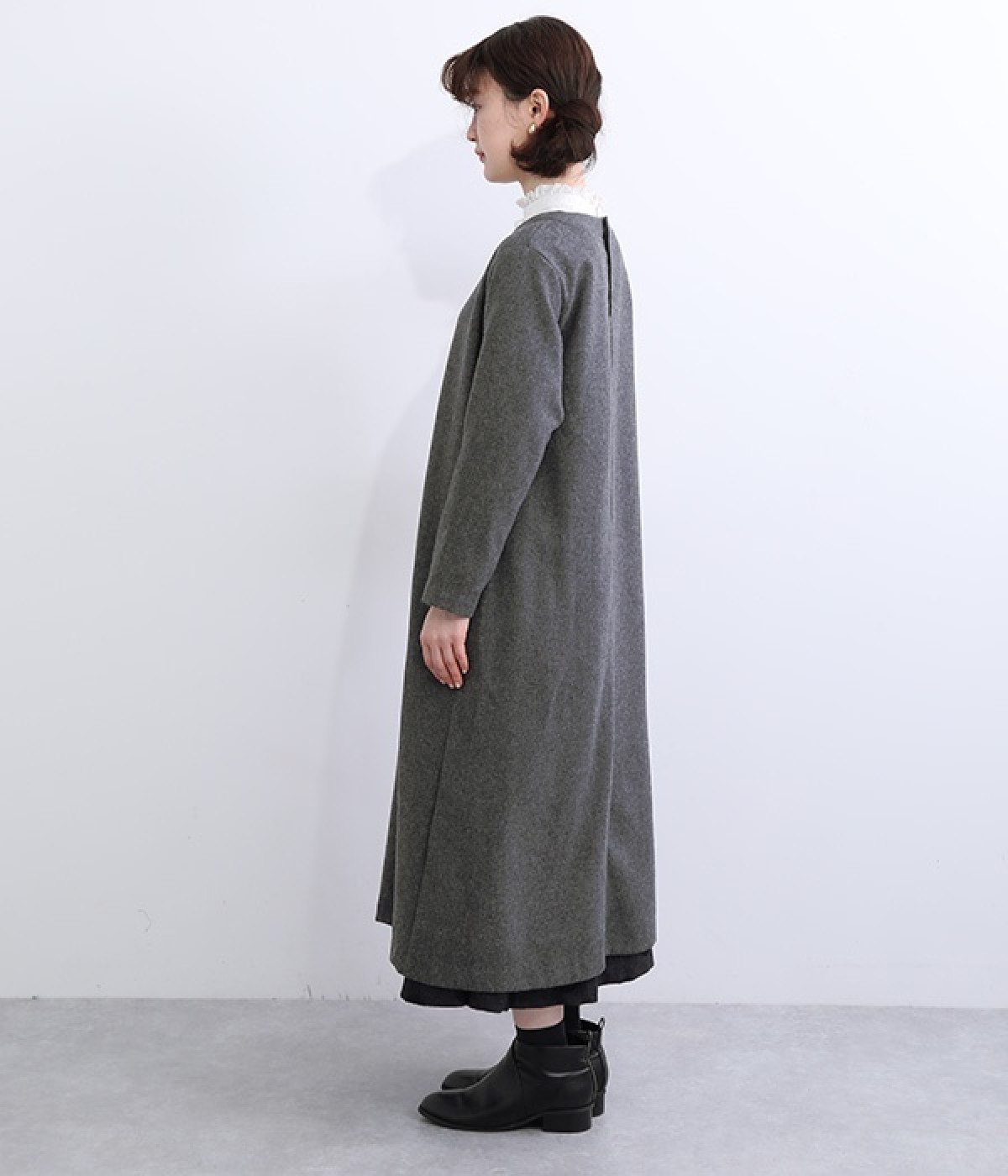 ほどよい厚みと落ち感で大人っぽく着こなせるウール混素材のワンピースです。すっきり上品な印象のAラインシルエットは、普段使いにもフォーマルシーンにも対応してくれます。ベストやアクセサリーを加えた着まわしも決まる、シンプルなクルーネックも◎。ボトムを合わせたカジュアルスタイルもおすすめです。