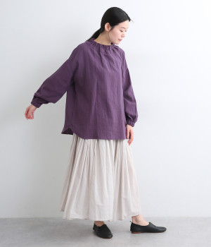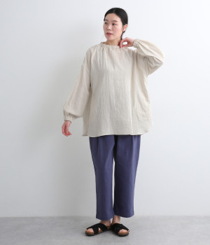 ヴィンテージ感が漂うコットンスラブのダブルガーゼ生地で、やさしい印象もプラスされています。通気性も良く着心地も◎。