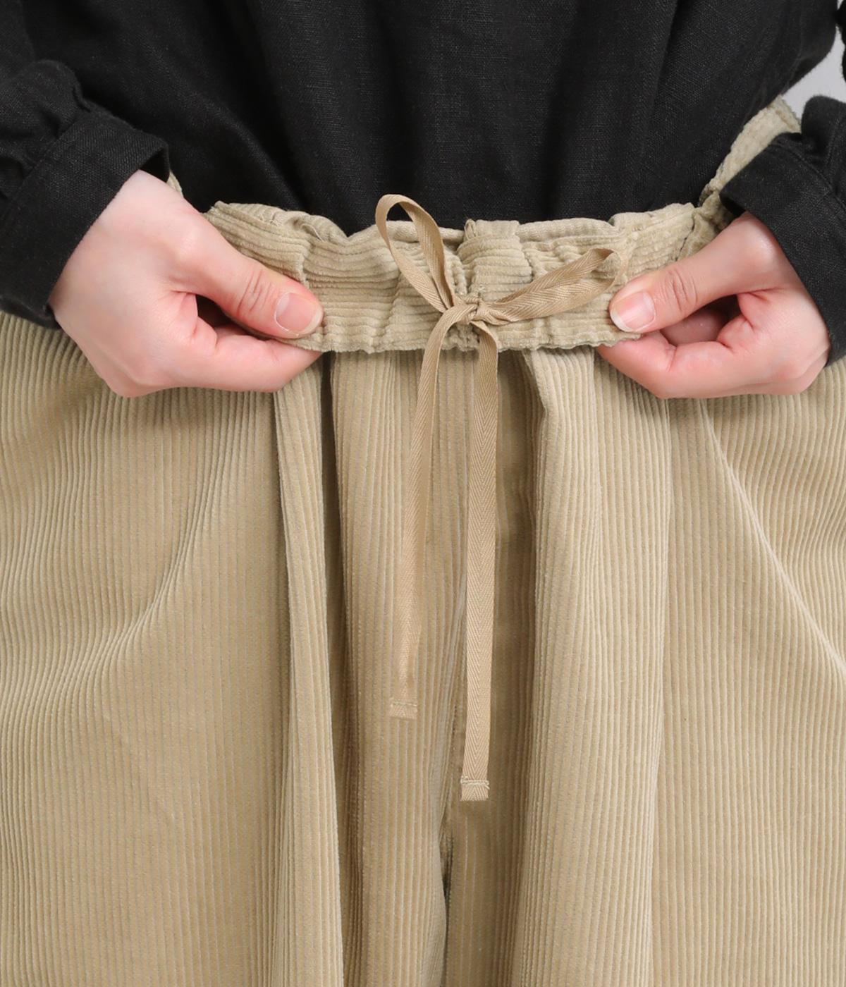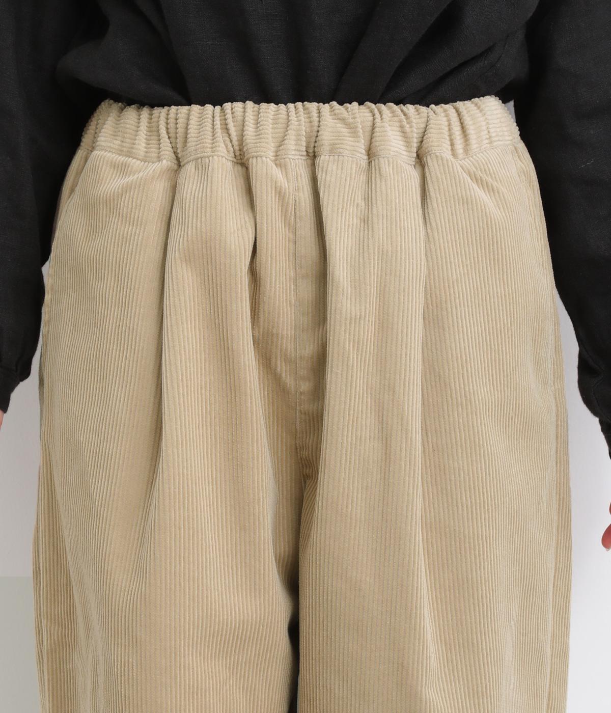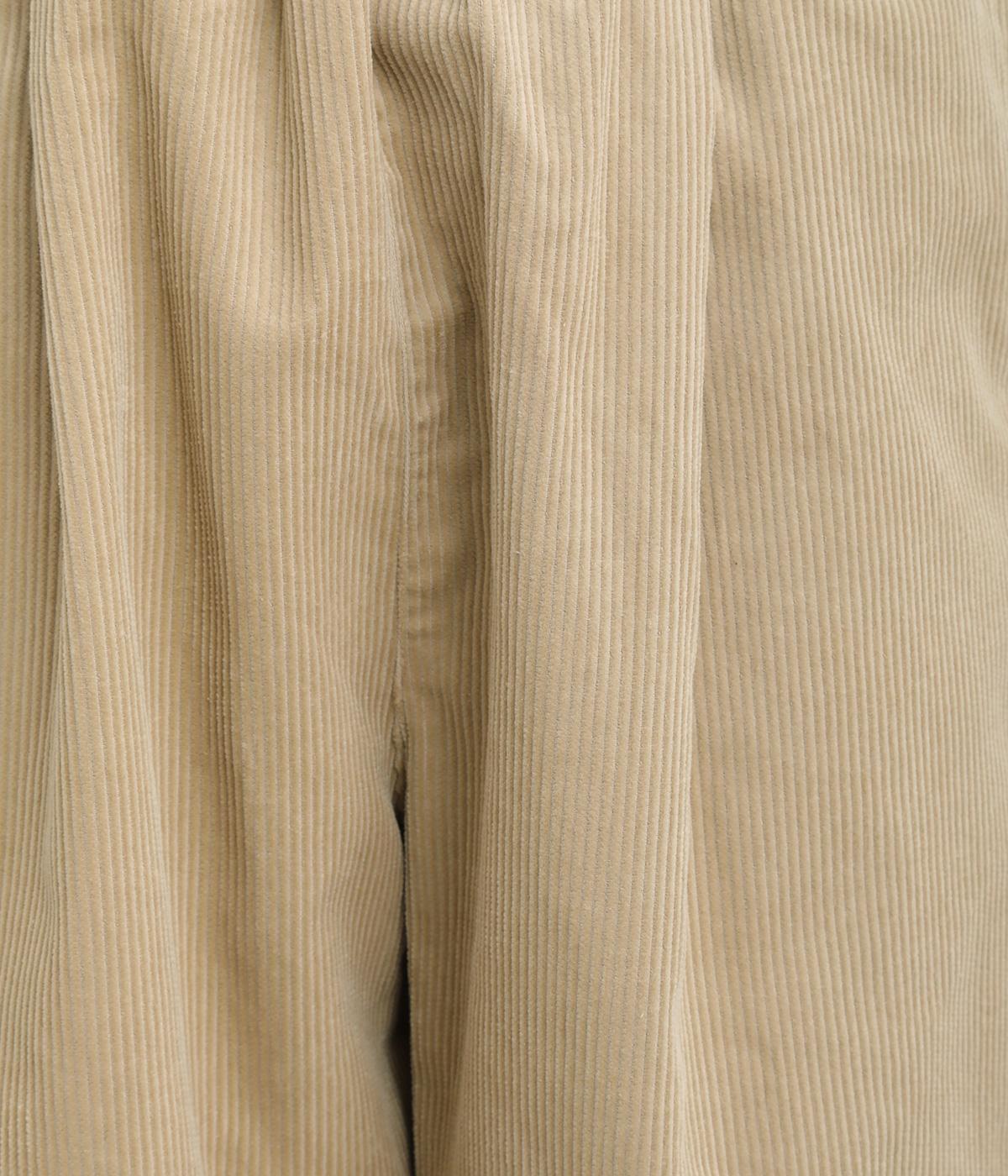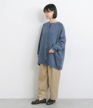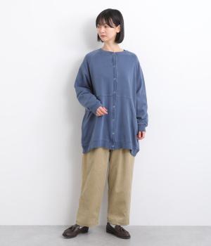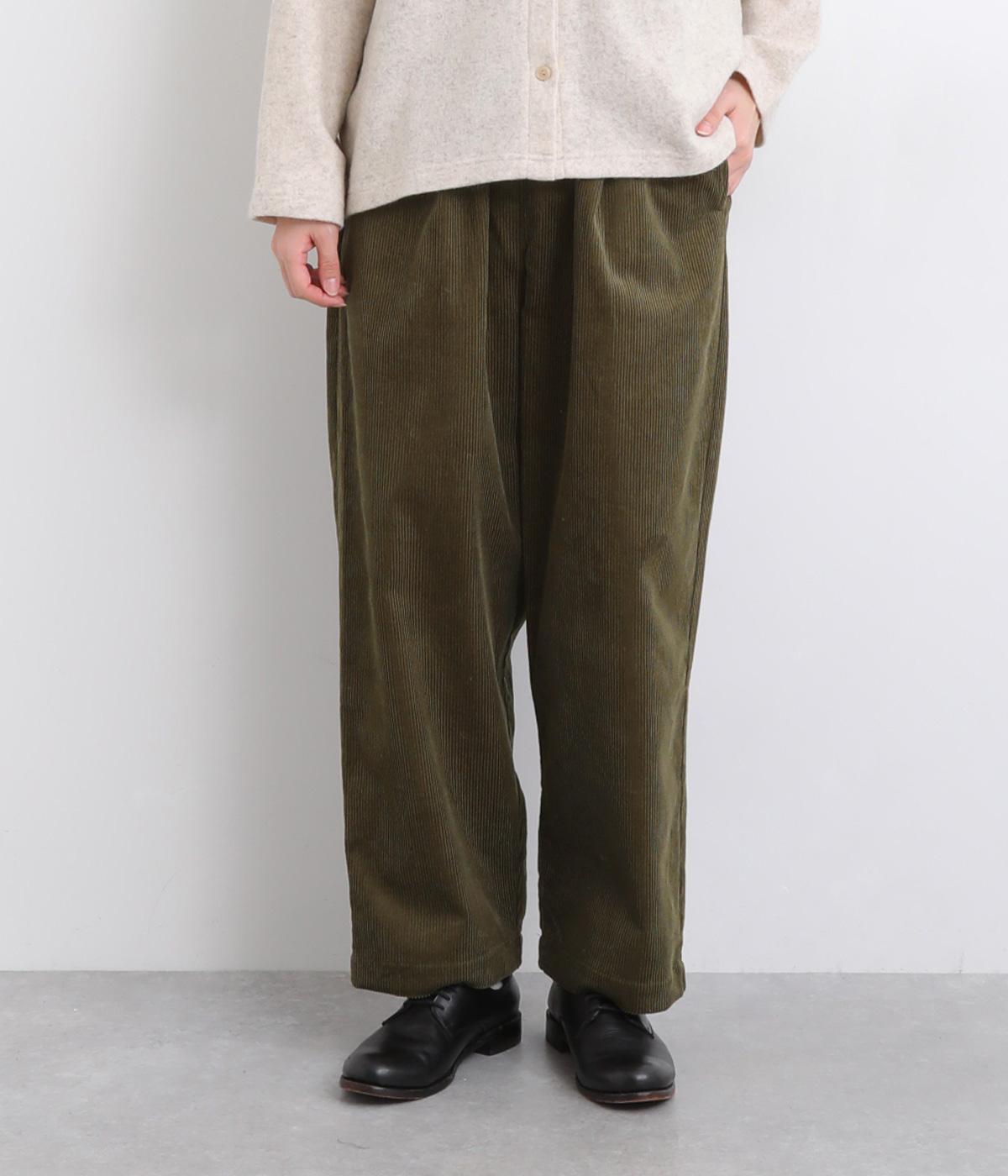 中畝のコットンコーデュロイが、あたたかみのある質感を引き立てます。やわらかさのなかにほどよい厚みがあり、肌あたりもやさしく快適です。凹凸のある表情が、季節感のある落ち着いた雰囲気に。