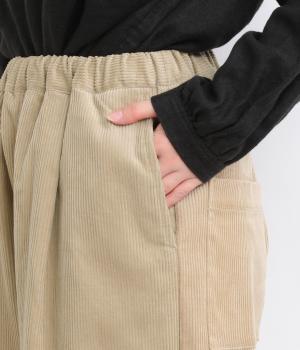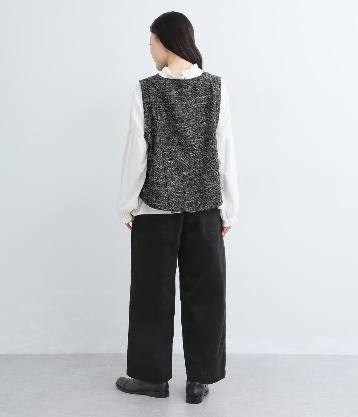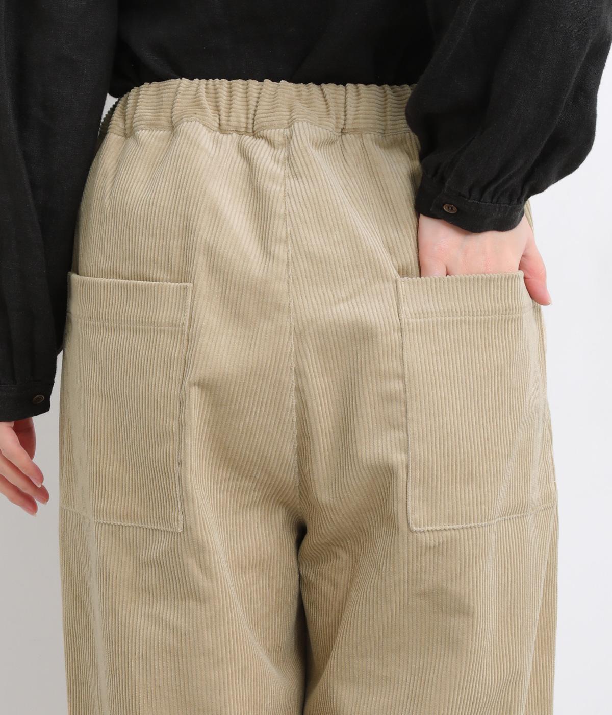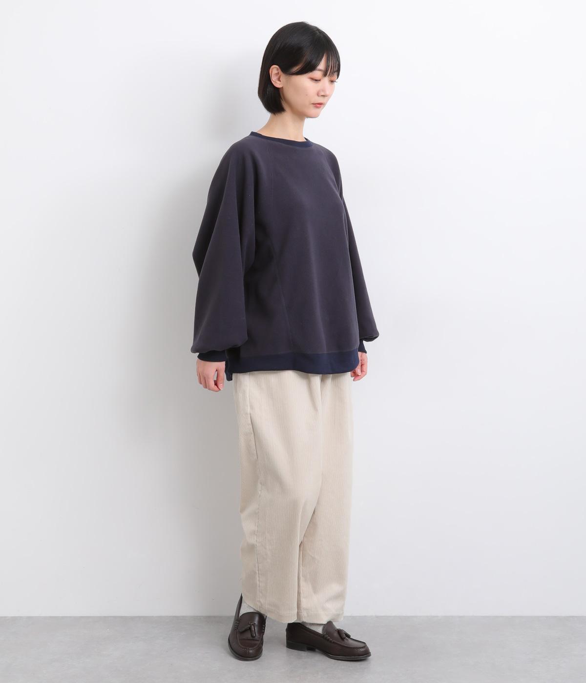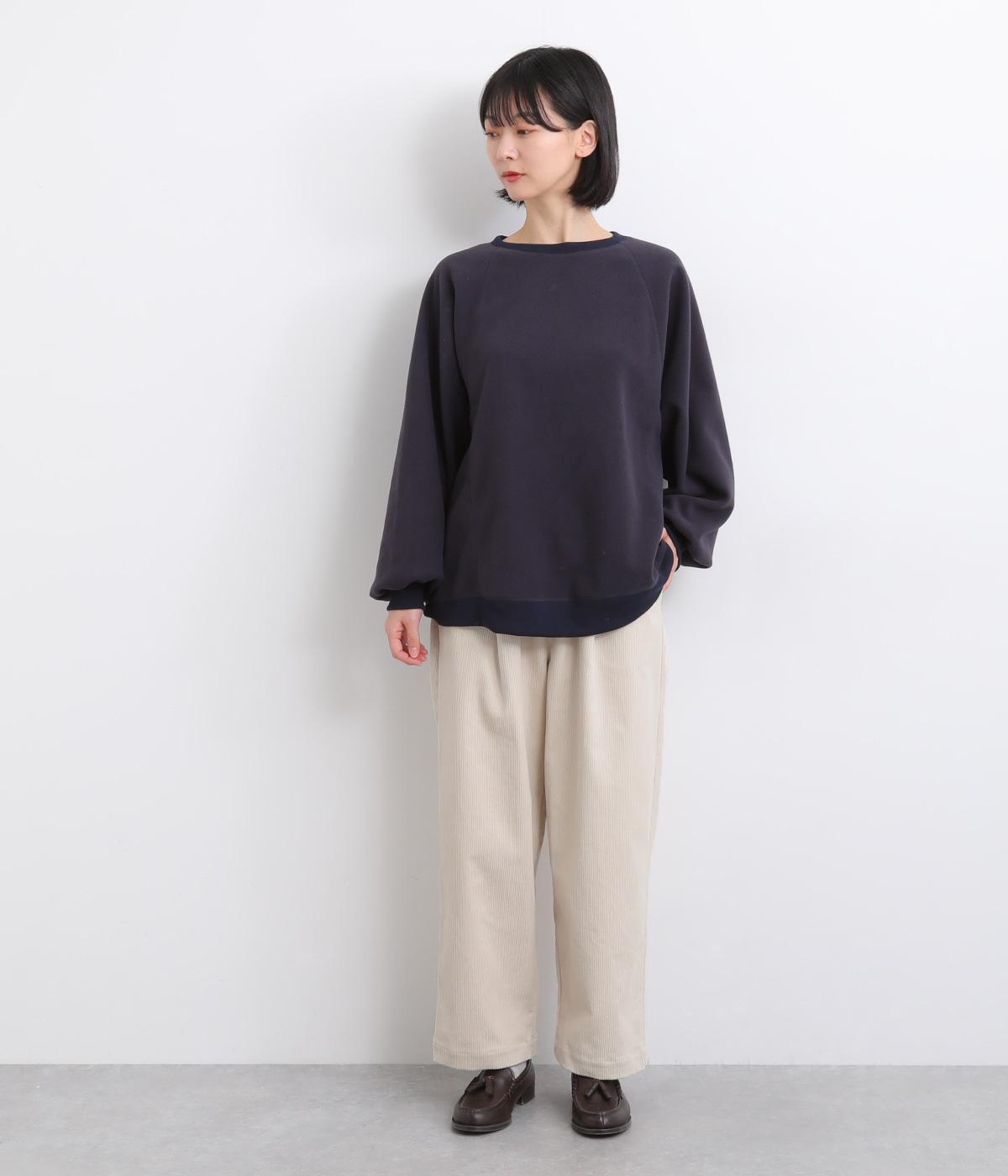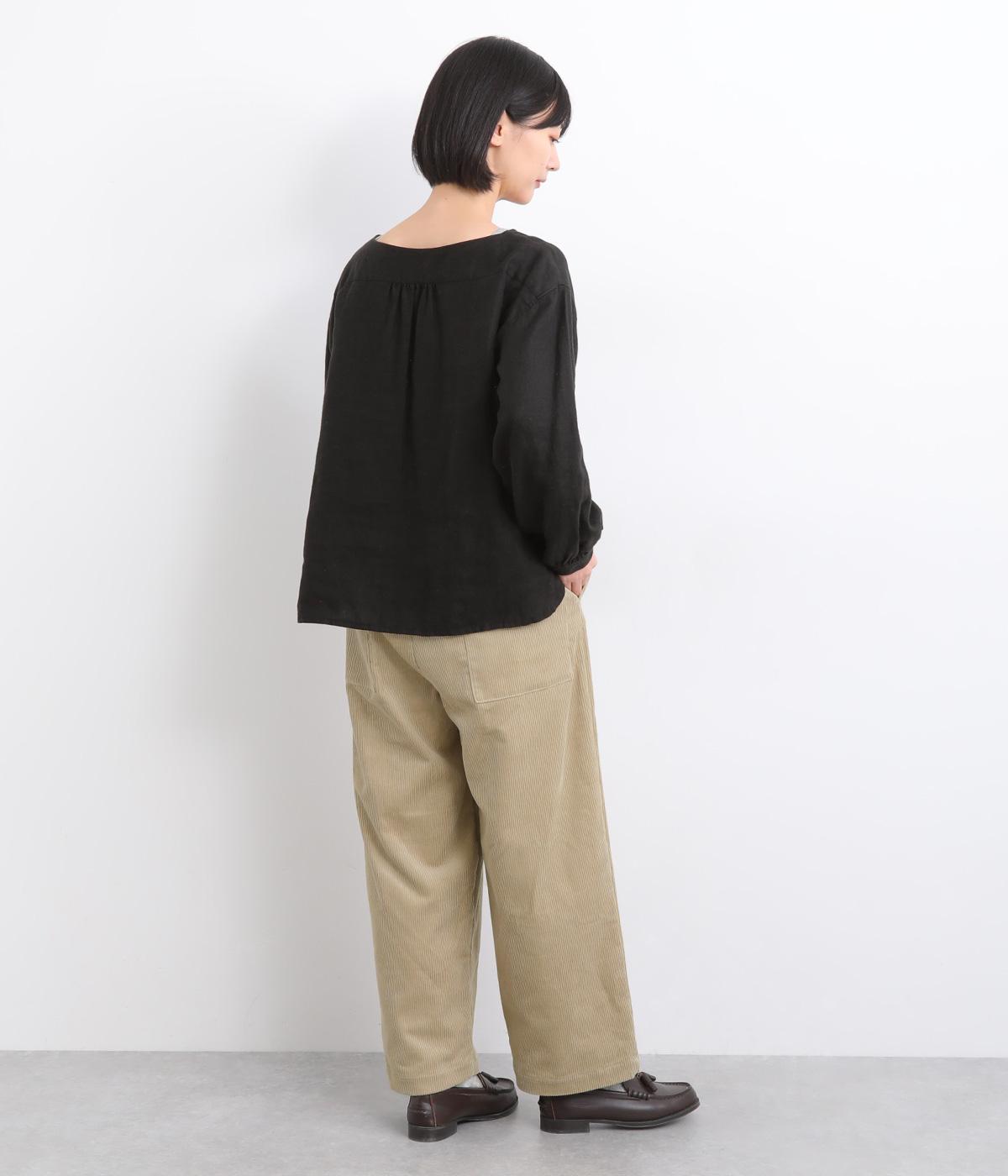 中畝のコットンコーデュロイが、あたたかみのある質感を引き立てます。やわらかさのなかにほどよい厚みがあり、肌あたりもやさしく快適です。凹凸のある表情が、季節感のある落ち着いた雰囲気に。