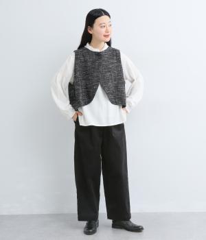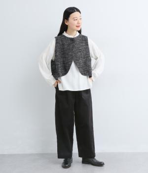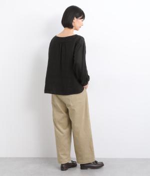 ゆったりとしたシルエットながら、ワンタックを入れることで丸みを整え、すっきりとはきやすいバランスに仕上げたパンツです。後ろには大きめのヒップポケットをあしらい、さりげないアクセントに。さまざまなトップスと合わせやすいプレーンなかたちで、幅広いコーディネートに活躍します。