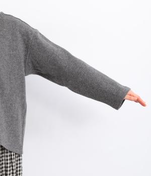 ウール混ならではのあたたかな素材に、ふわふわとした起毛感が加わった、軽くてやさしい着心地の生地です。ぎゅっと目のつまった圧縮ニットは風を通しにくく、体にそっと寄り添うやわらかなフィット感も魅力。