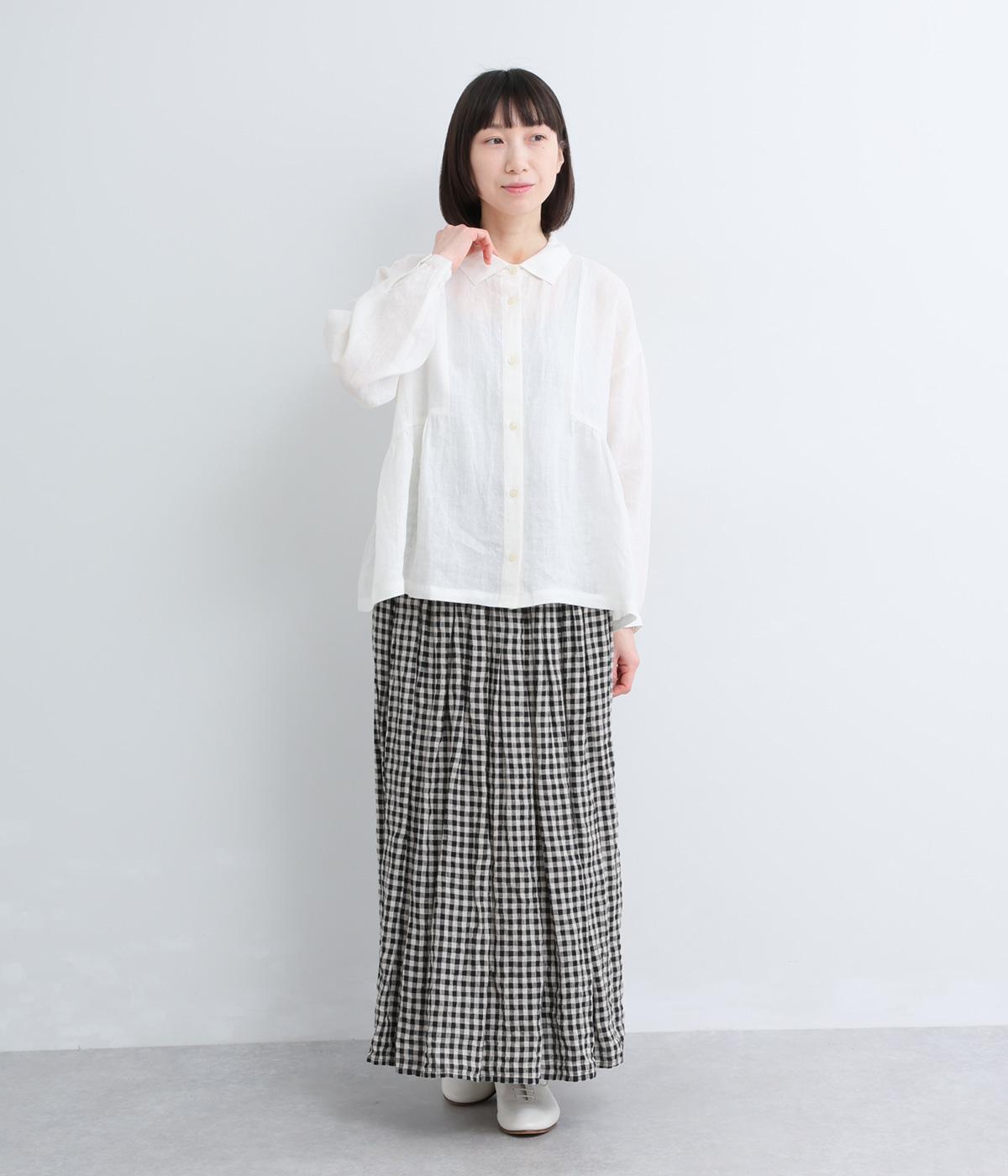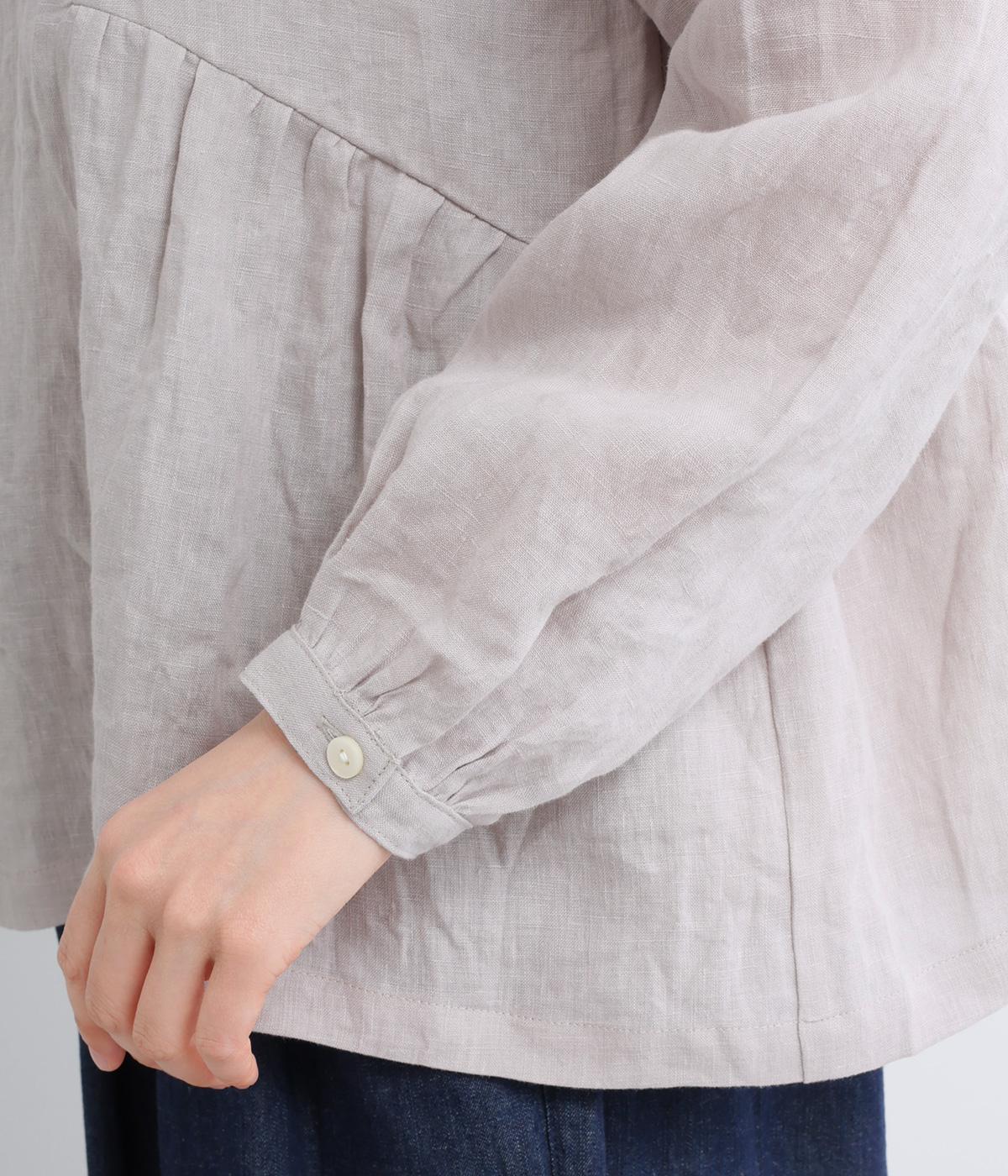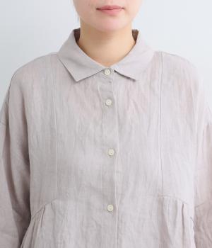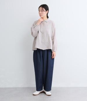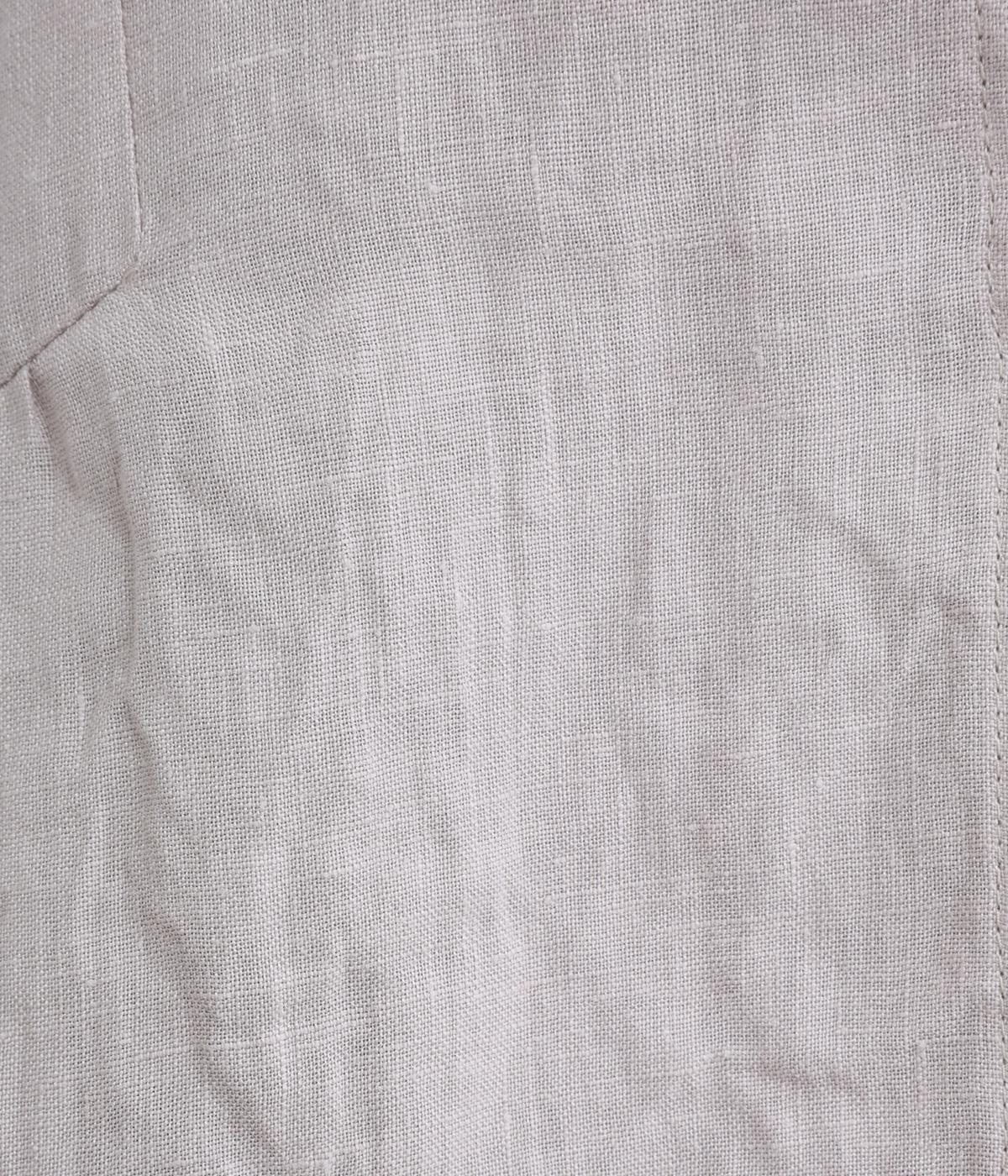 薄手ながらもほどよくコシのあるリネン生地を使用。ドライタッチで通気性が良く、さわやかな着心地を運びます。着るほどになじんでいくリネンの経年変化も魅力のひとつ。