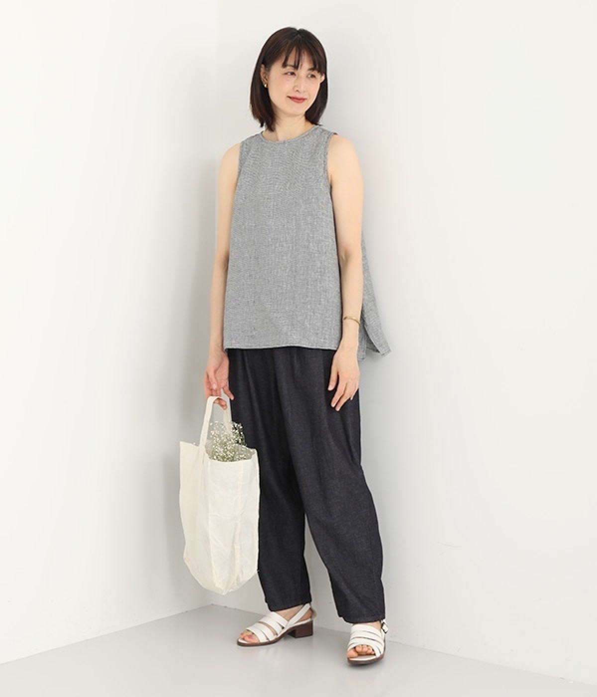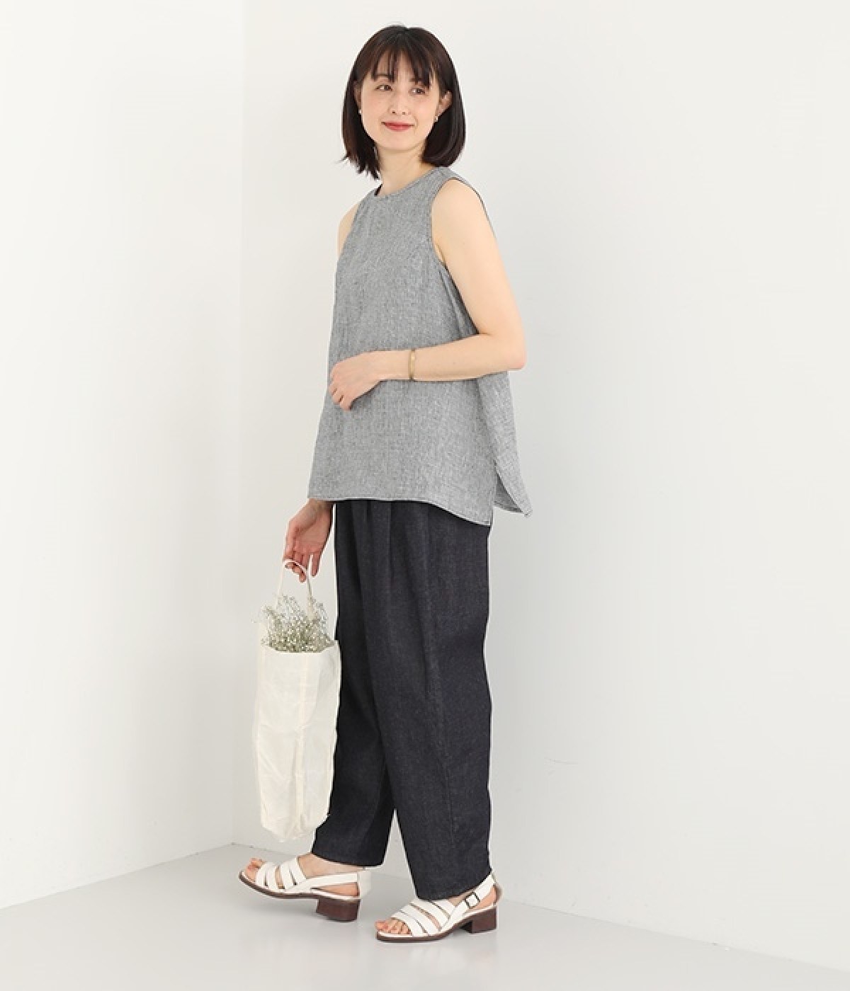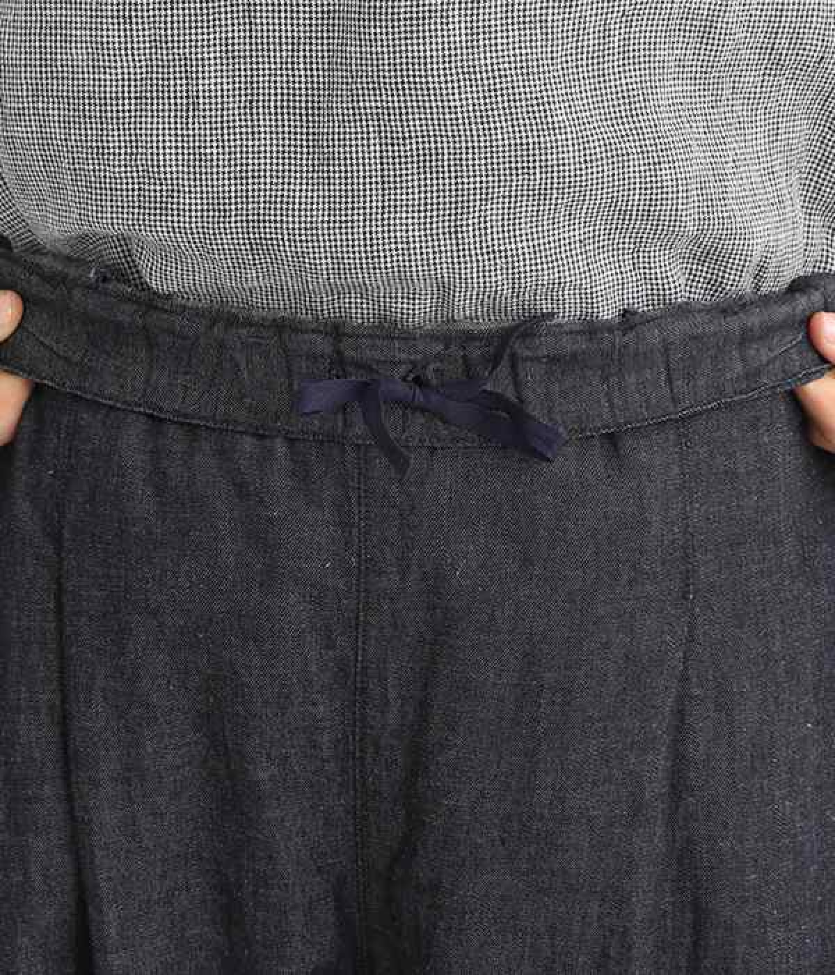 ナチュラルなやわらかさが魅力のコットンリネンデニムで仕立てたパンツです。ウエストにタックを寄せてゆったりとさせ、裾に向かってすっきりと見せたテーパードシルエットが特徴。ボリュームがあるので、裾をラフにロールアップしたりとお好みで分量のアレンジも楽しめます。ウエストはぐるりとゴム、調節可能な内ひも入りのイージー仕様です。