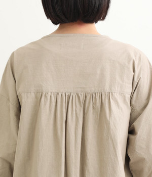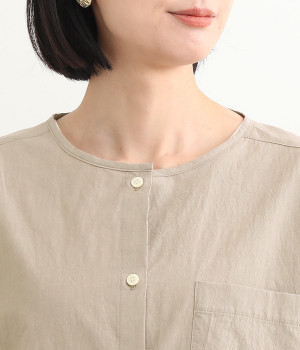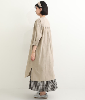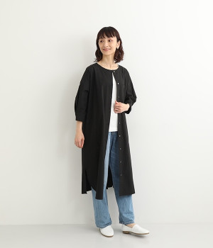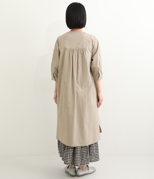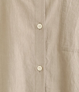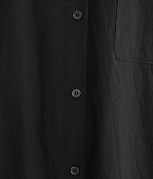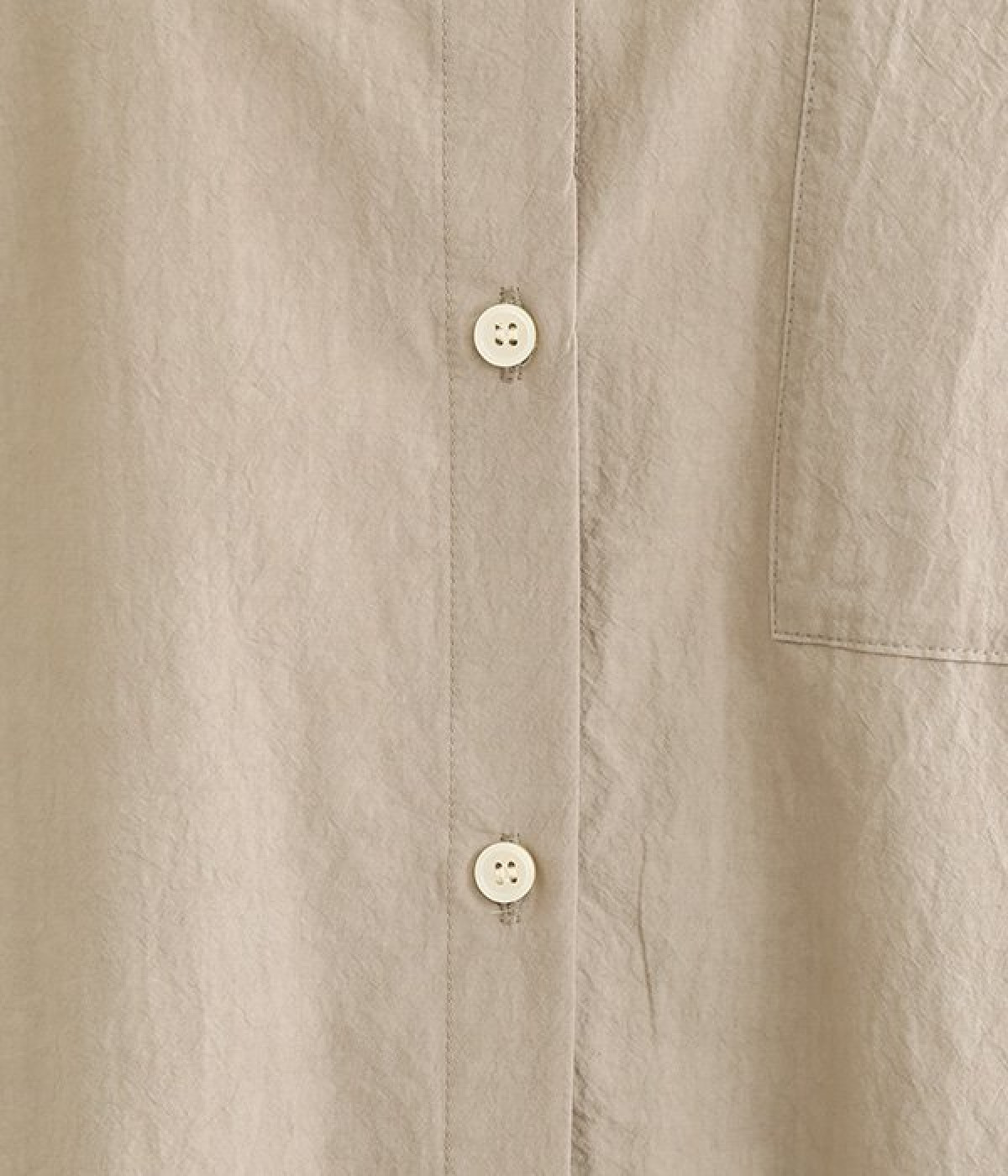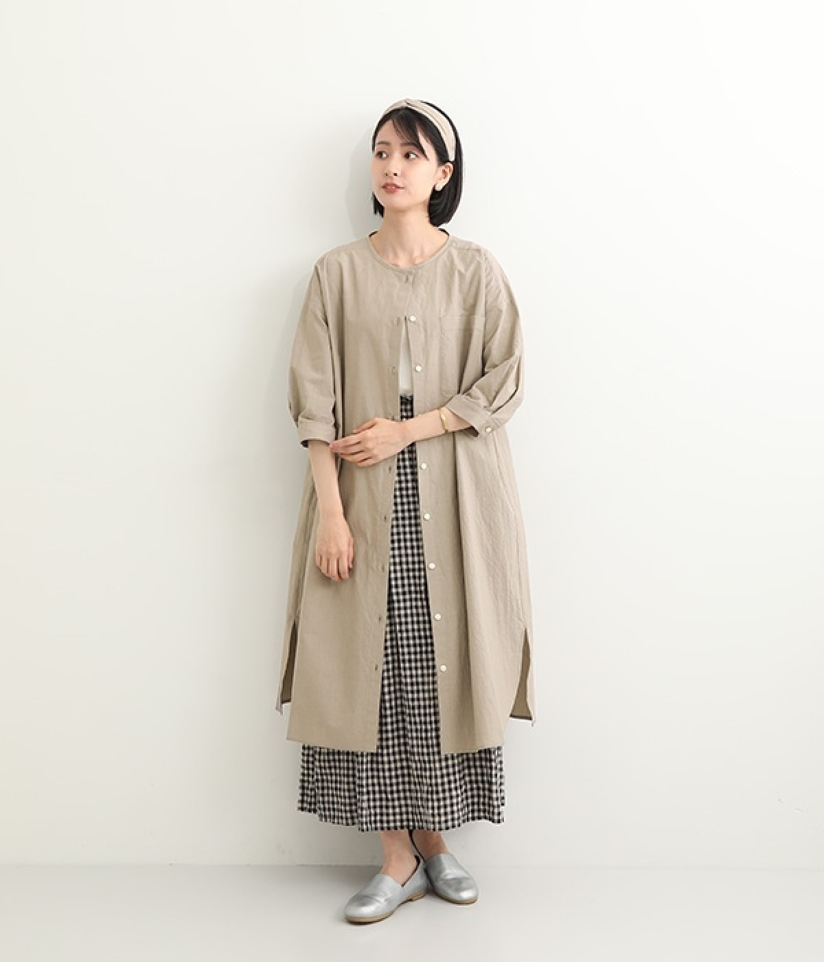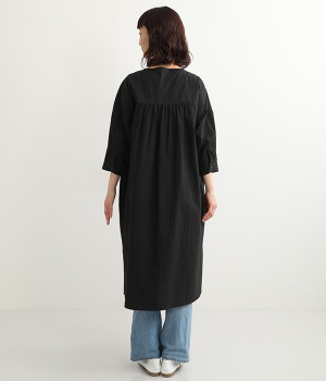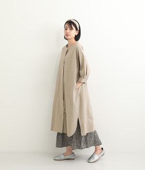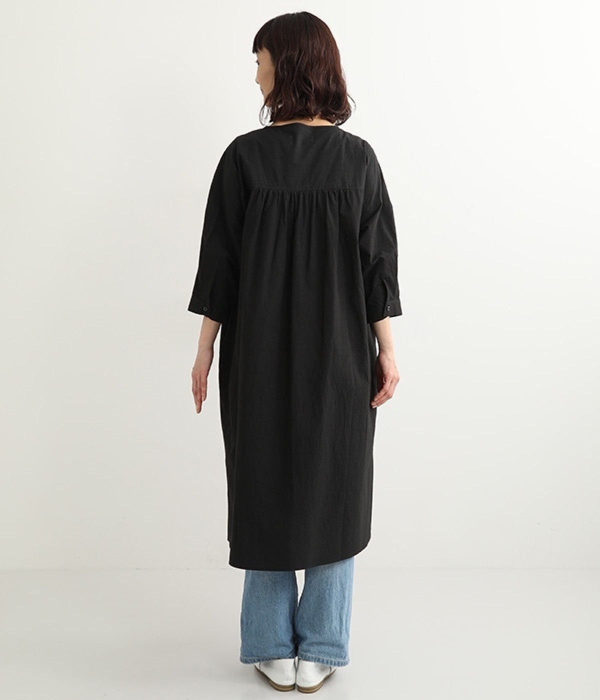 コットンタイプライター生地のハリを抑えたナチュラルな風合いが魅力のワンピースです。シンプルなシャツシルエットに、左胸の大きなポケットがアクセント。ゆとりのあるワイドシルエットで丈も長めなので、一枚でコーディネートが完成します。裾を大きくラウンドさせてスリットを入れた、さまざまなボトムとのレイヤードが楽しめるデザインです。
