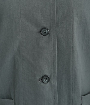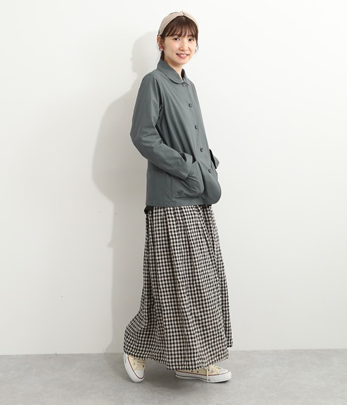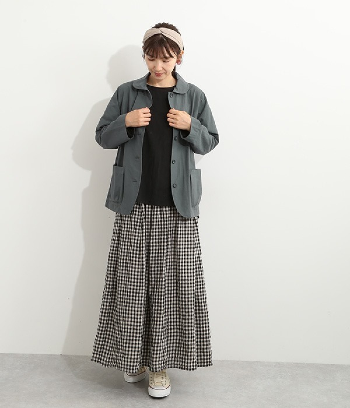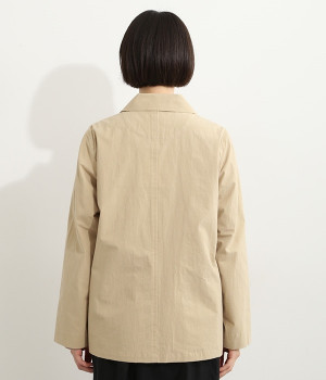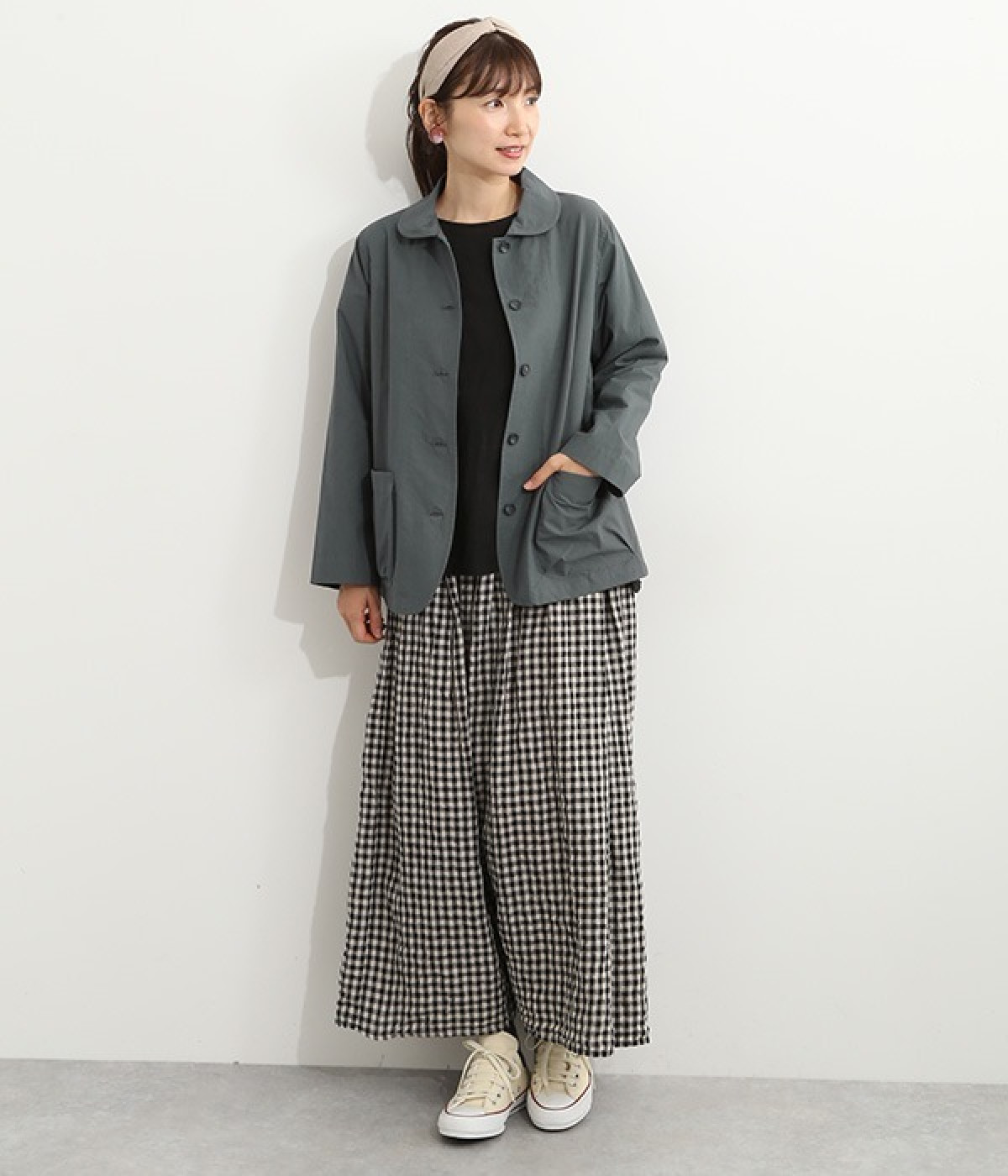 かわいらしくソフトな印象に見せてくれる丸襟を添えたジャケット。カーブした前合わせの裾ラインや角のないパッチポケットにも、やわらかさを意識したディテールが光ります。ボディや袖のシルエットはゆるくなりすぎないレギュラーシルエットを採用。シンプルで着まわしやすく、インナーに主張が強めのアイテムをしのばせてフロントからのぞかせるのもおすすめです。