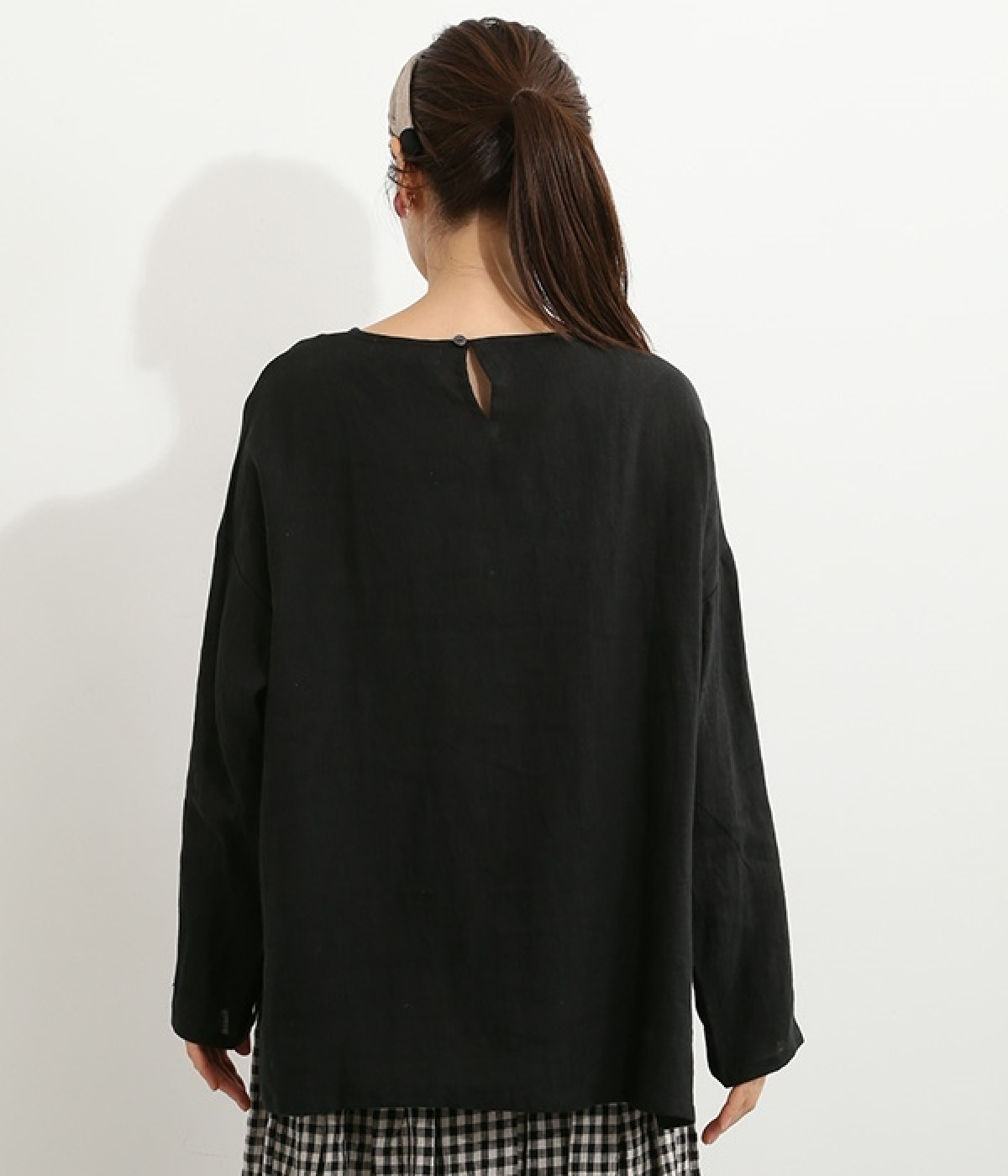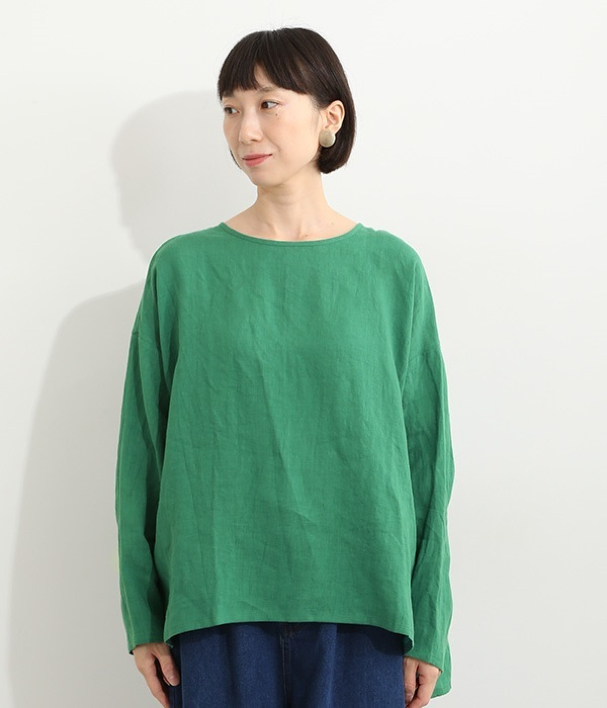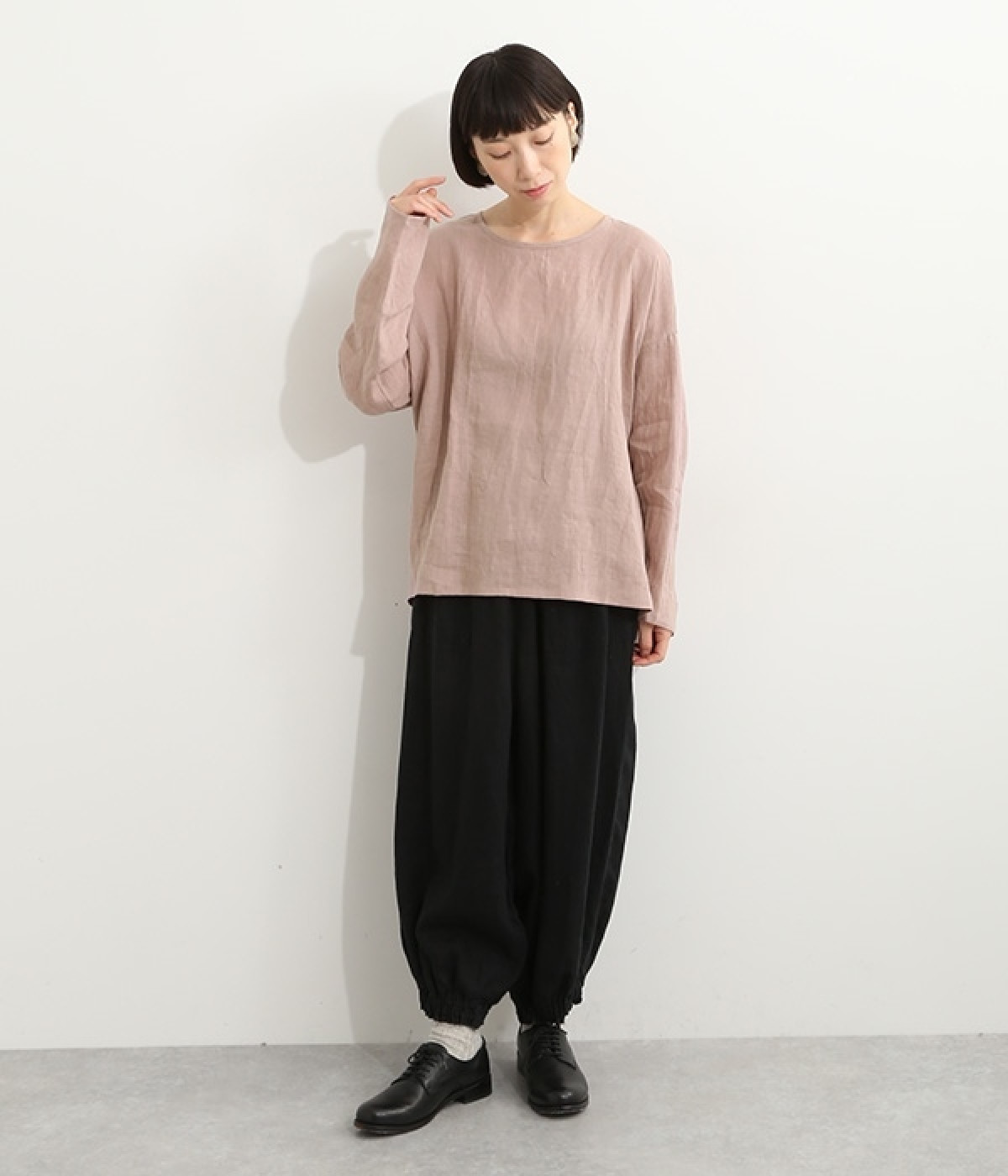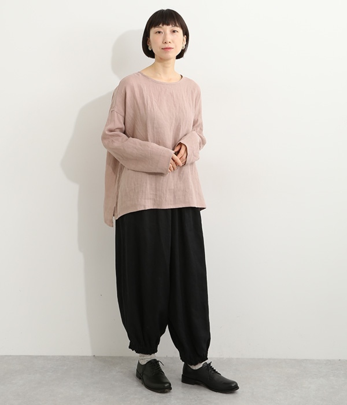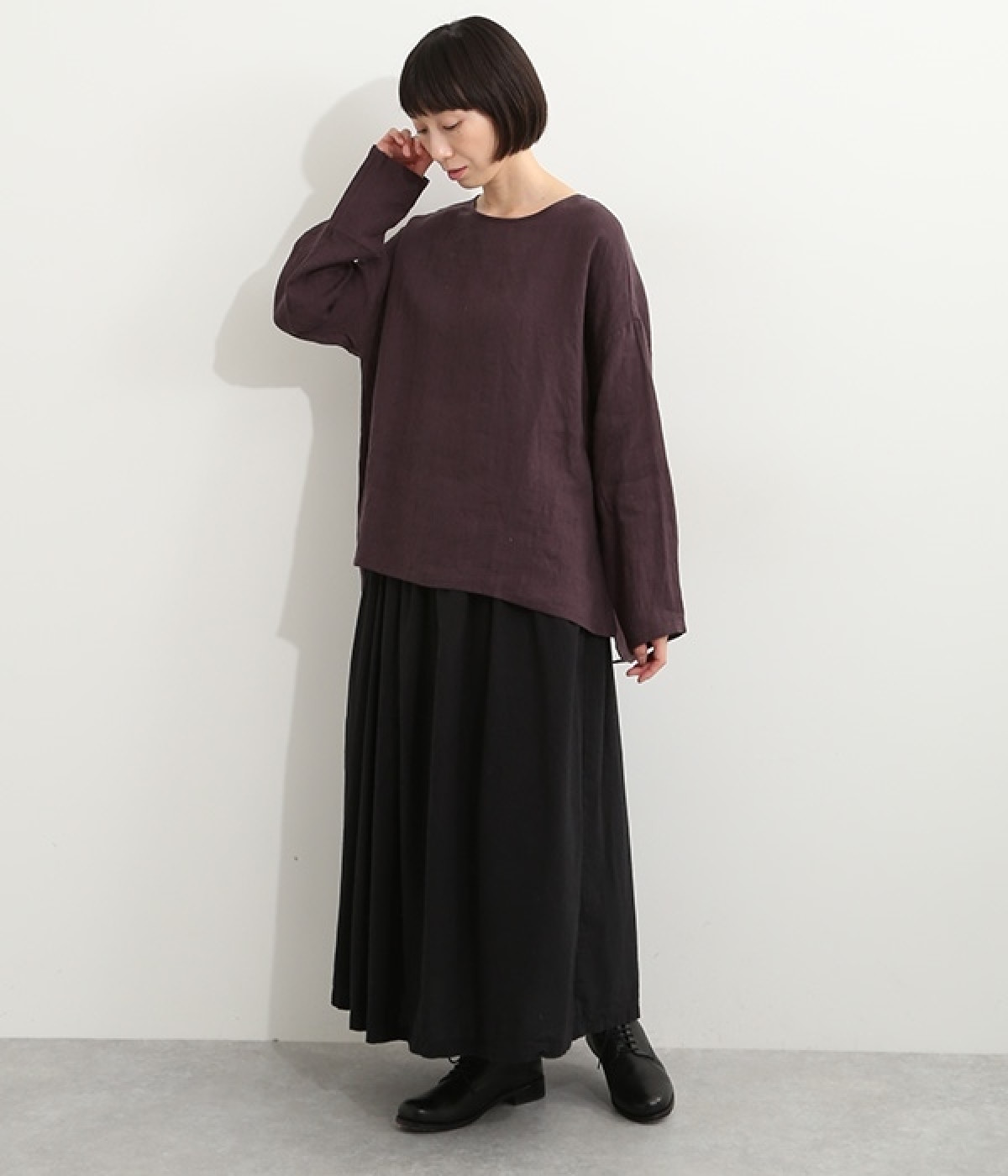 着るほどに風合いに味わいが増していくリネン素材のプルオーバー。サイドにスリットが入って両サイドが少し垂れるサマがかわいらしく、ゆったりとリラクシングな着心地です。お尻がやや隠れる着丈で長すぎず、パンツでもスカートでも着合わせを選ばないのが自慢。後ろネックは涙開きになっているため、インナーや肌がちらりとのぞくさりげない抜け感出しの工夫も加えました。