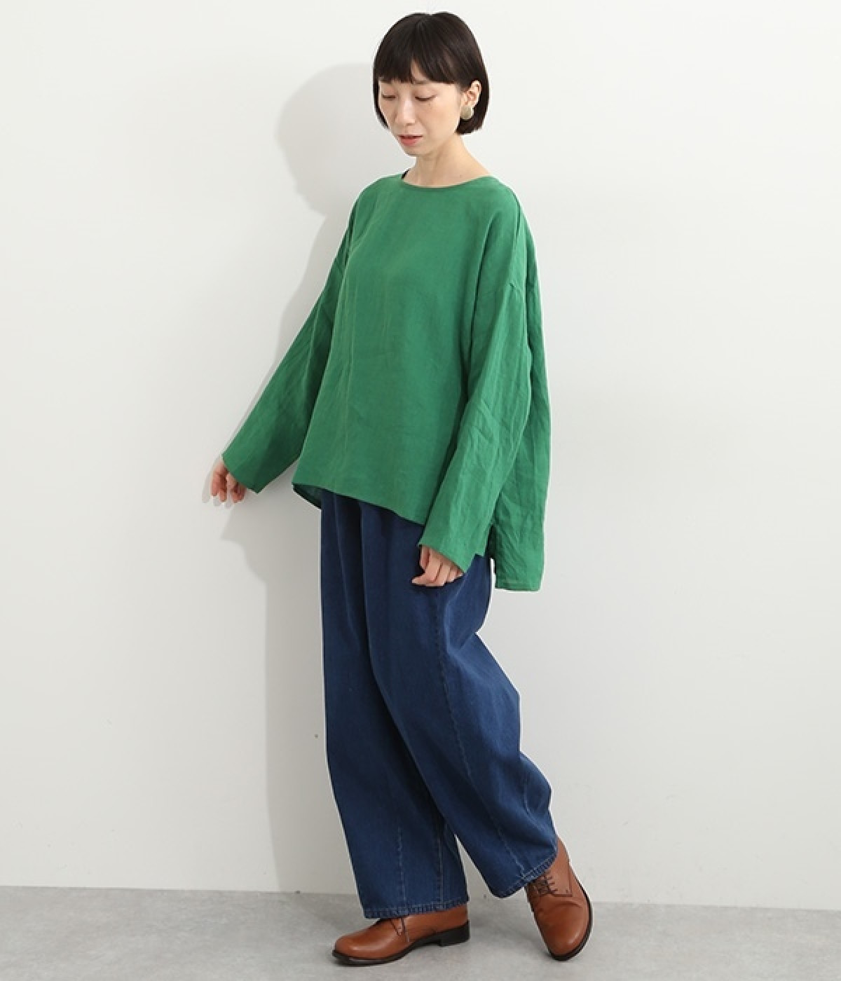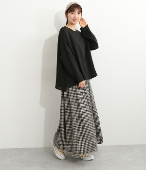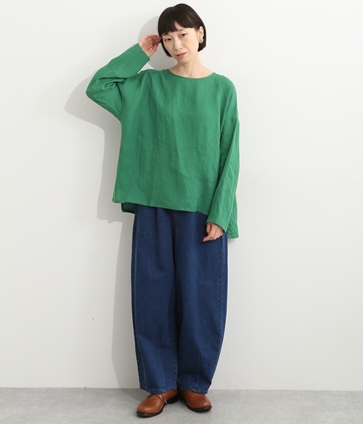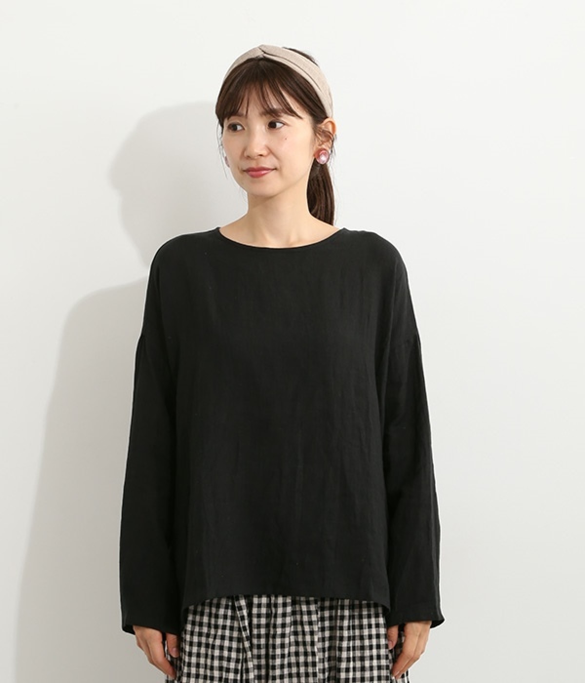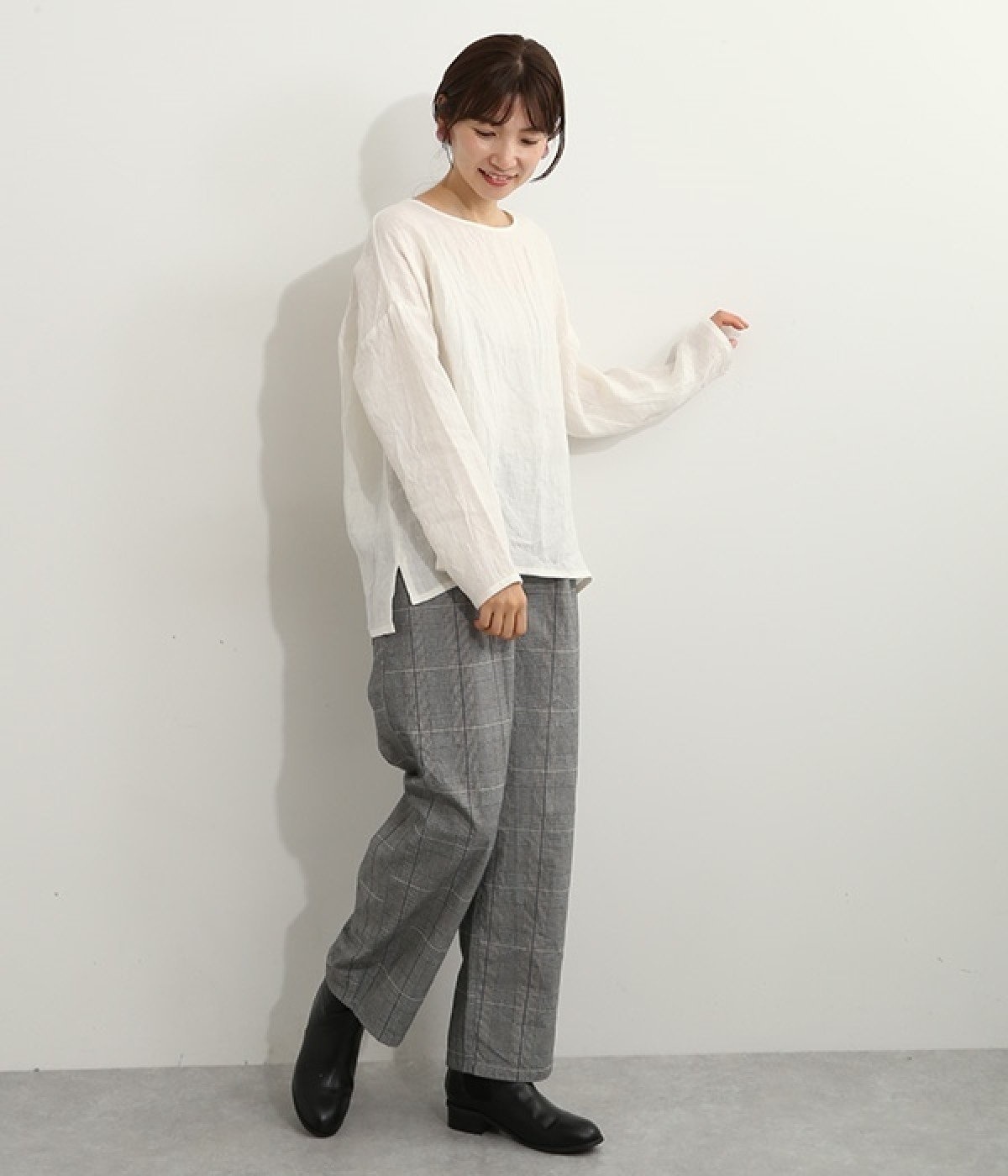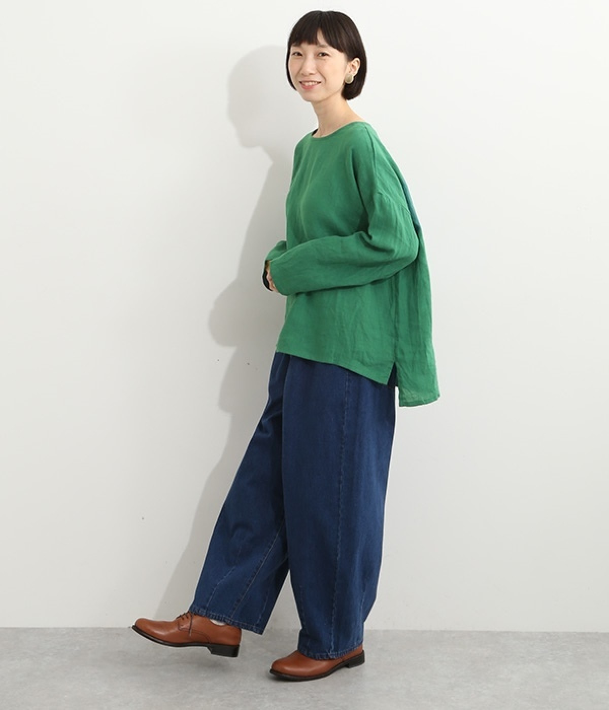 着るほどに風合いに味わいが増していくリネン素材のプルオーバー。サイドにスリットが入って両サイドが少し垂れるサマがかわいらしく、ゆったりとリラクシングな着心地です。お尻がやや隠れる着丈で長すぎず、パンツでもスカートでも着合わせを選ばないのが自慢。後ろネックは涙開きになっているため、インナーや肌がちらりとのぞくさりげない抜け感出しの工夫も加えました。