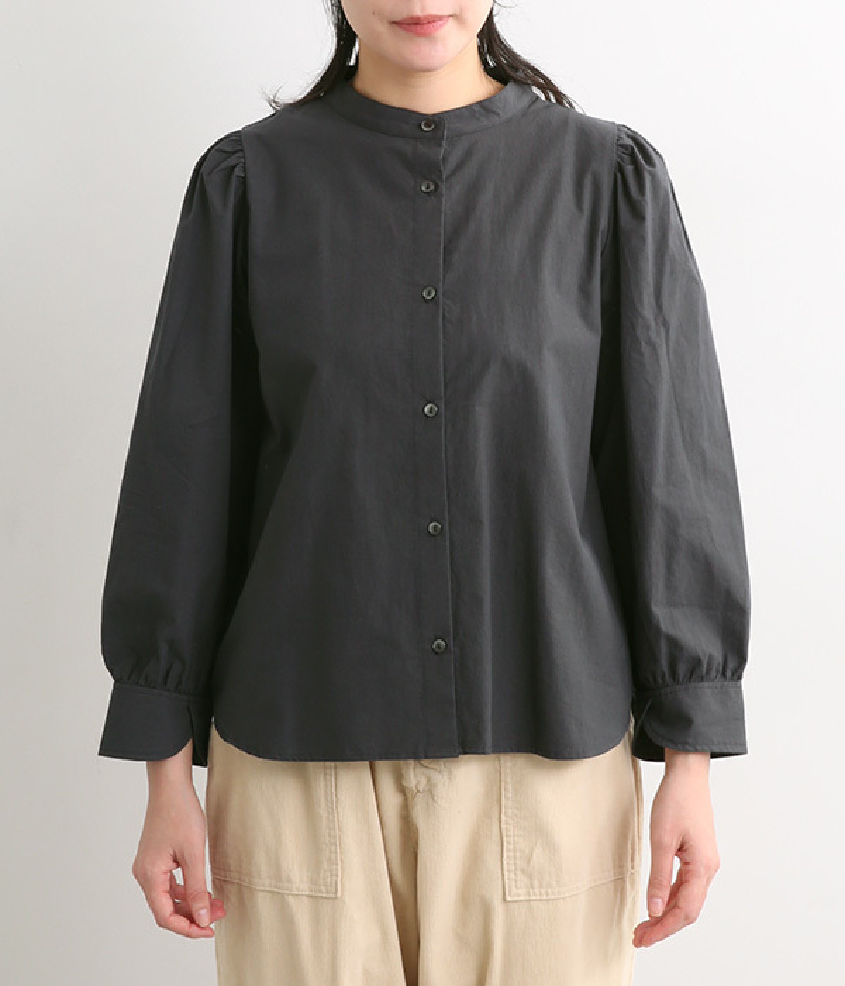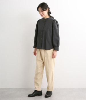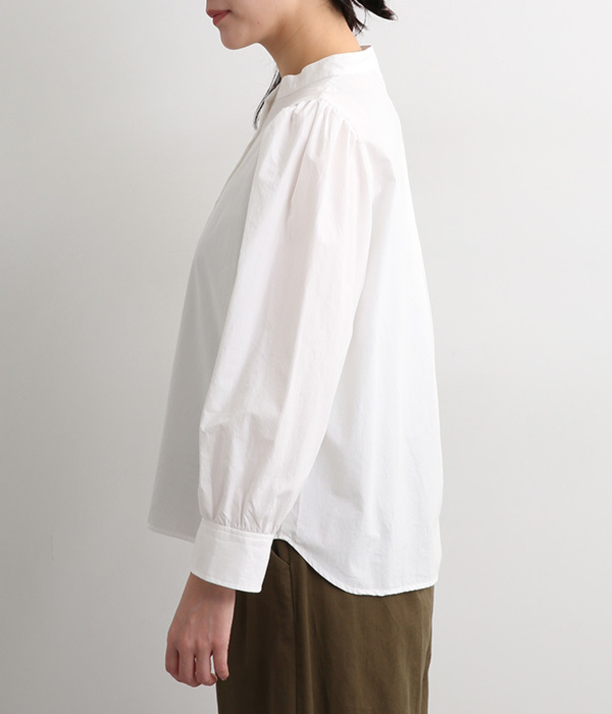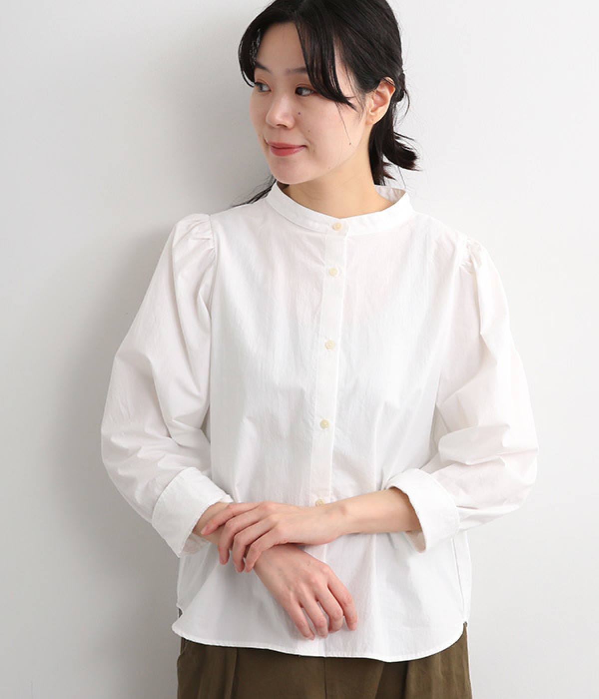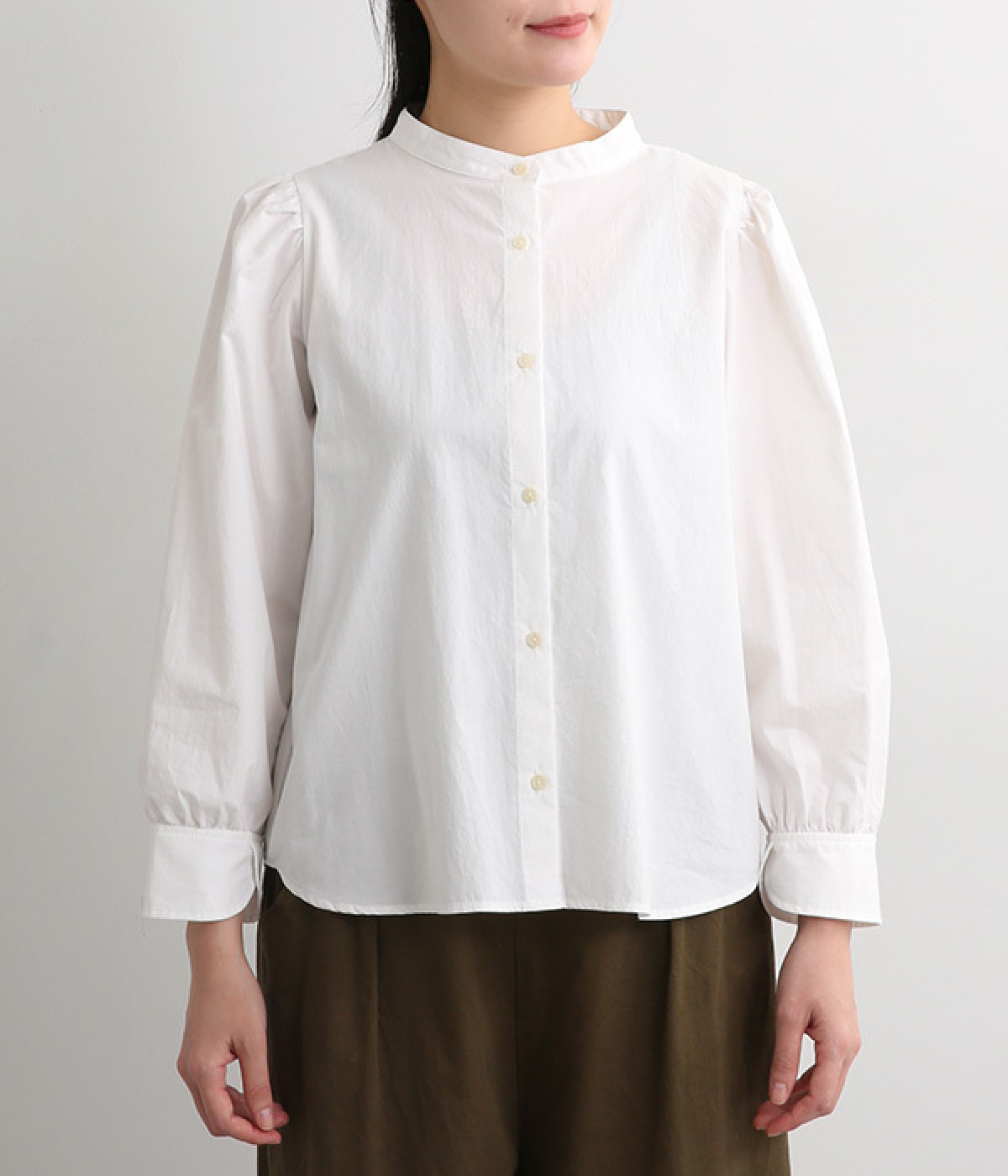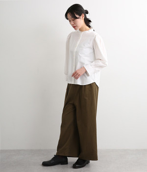 首元をすっきりと見せるバンドカラー
