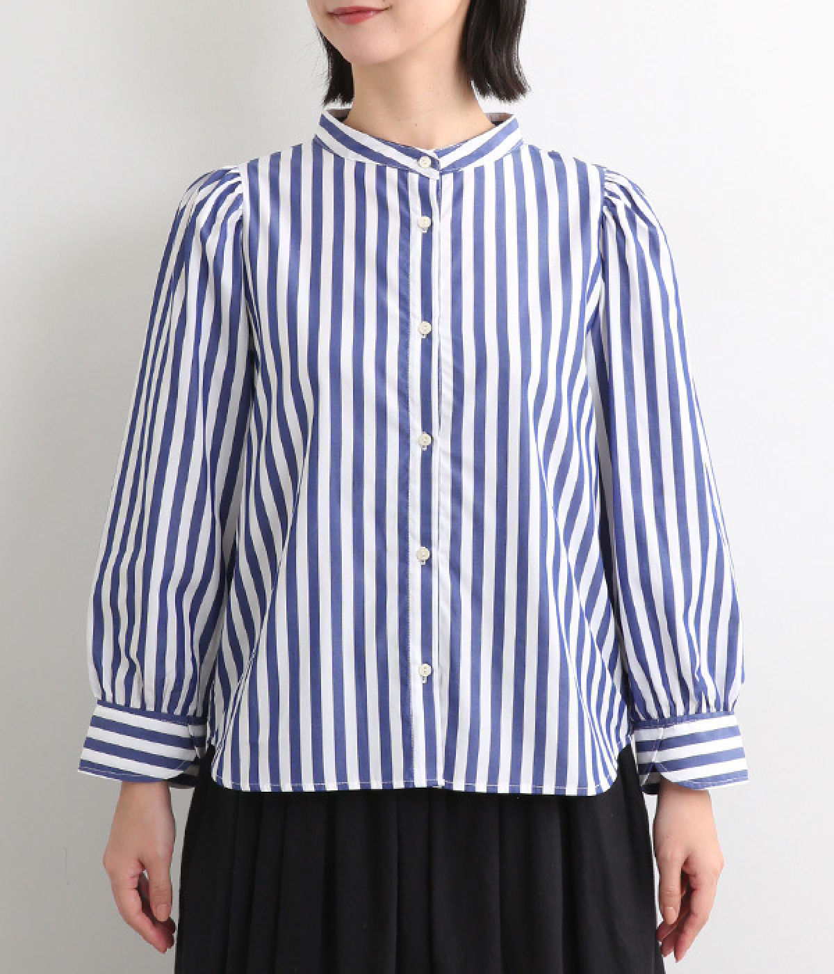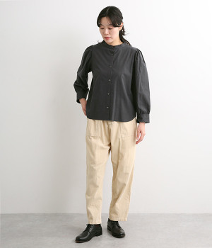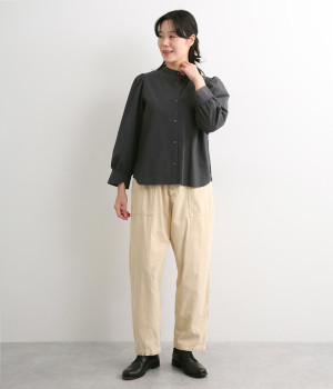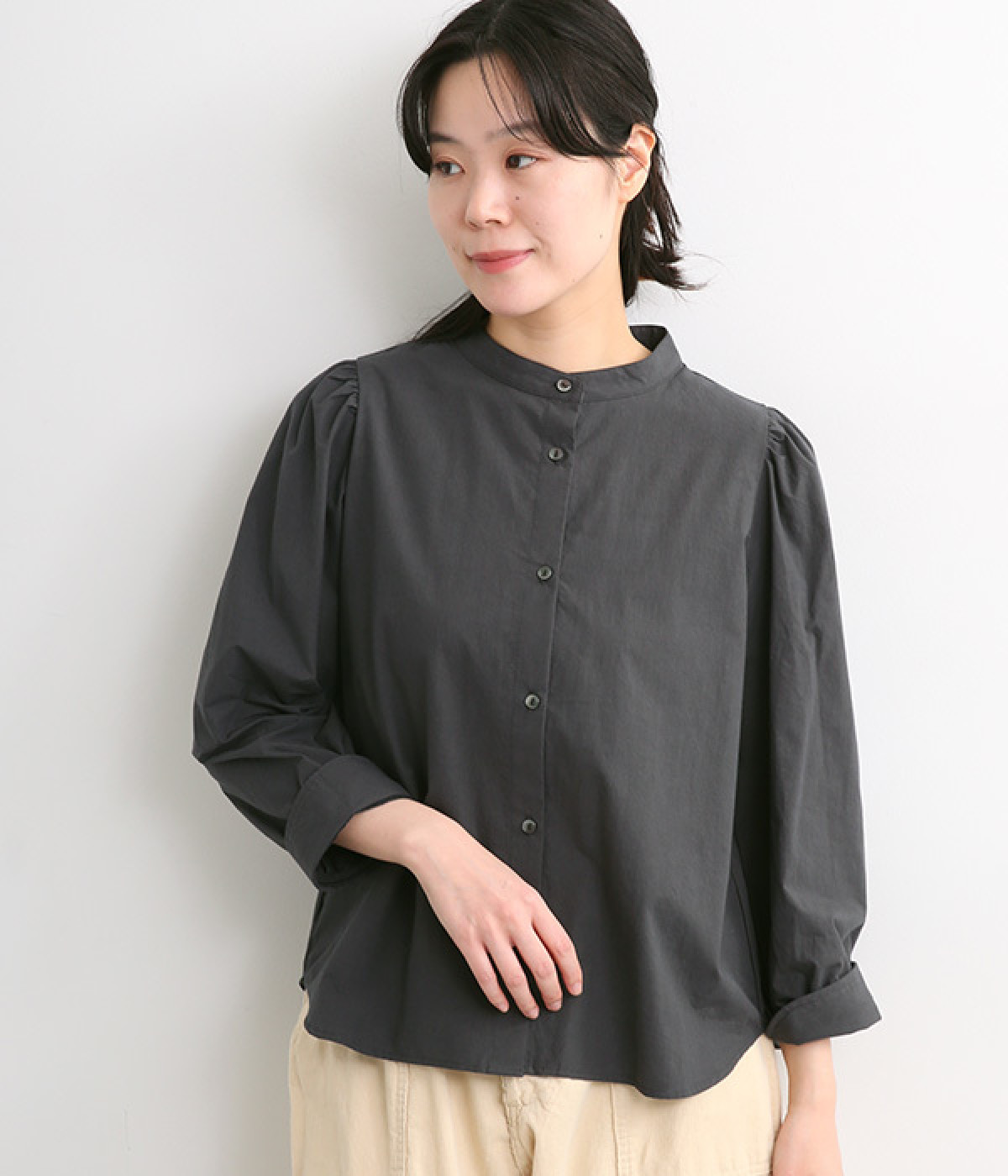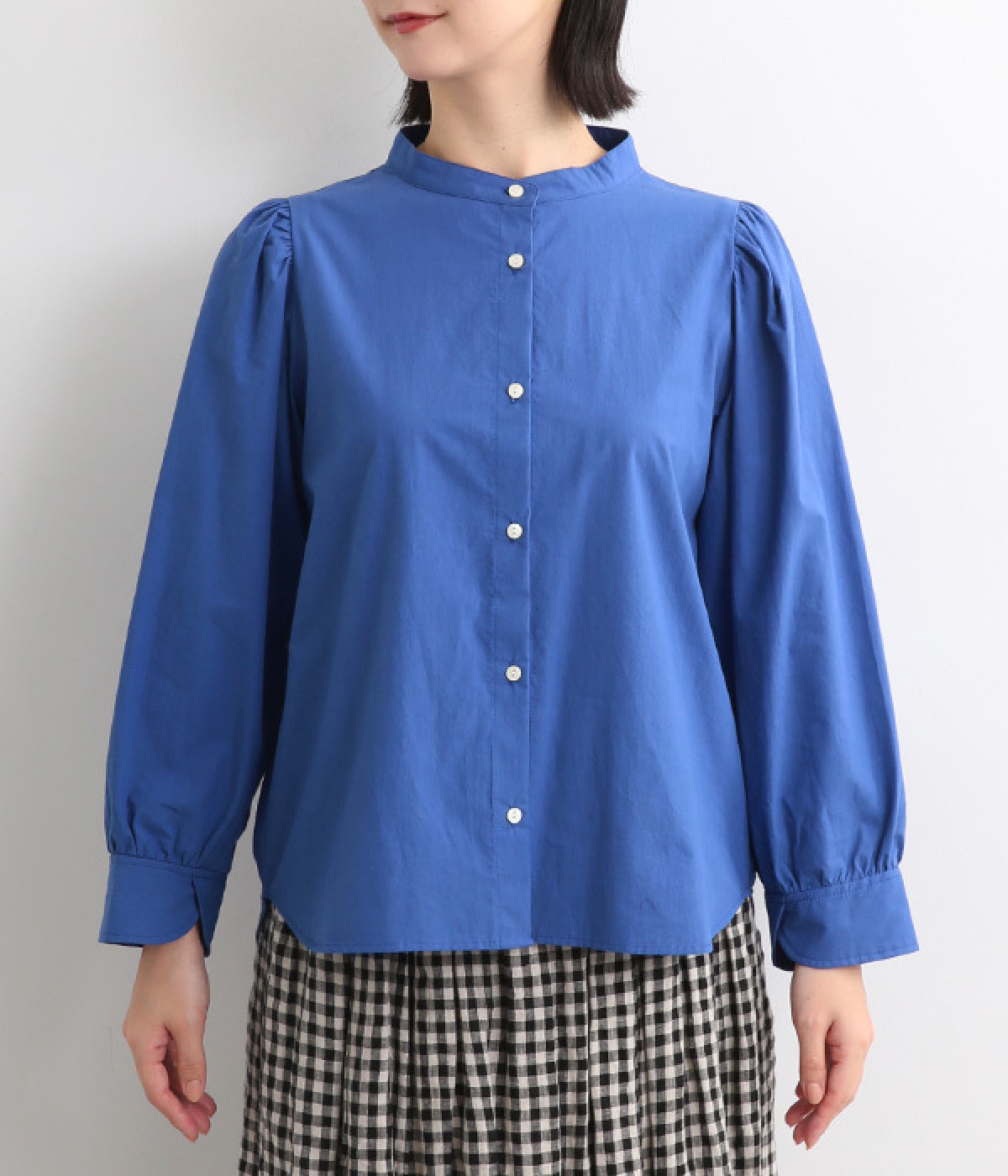 首元をすっきりと見せるバンドカラー