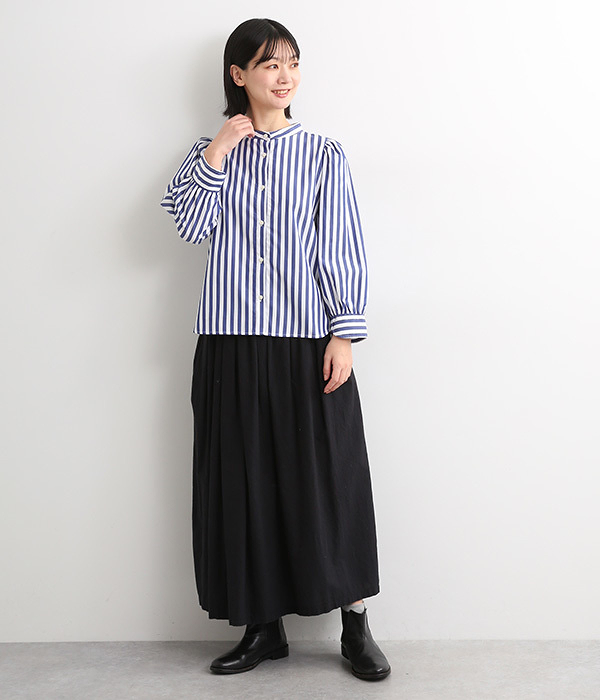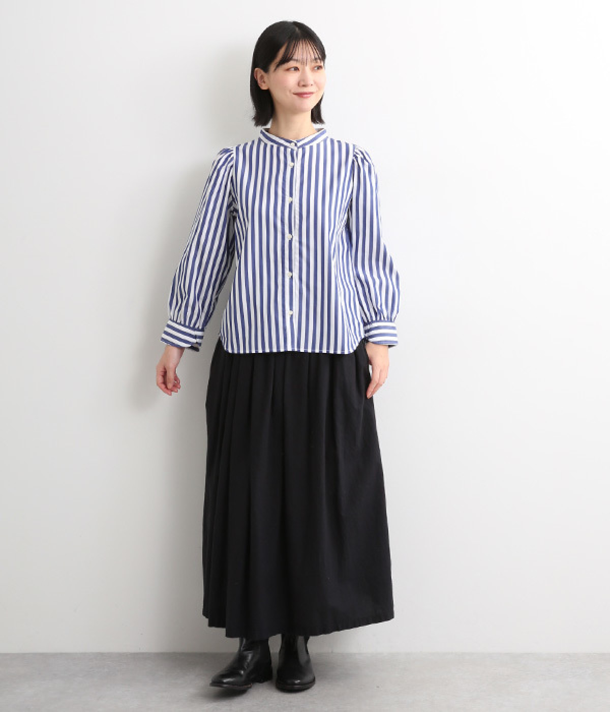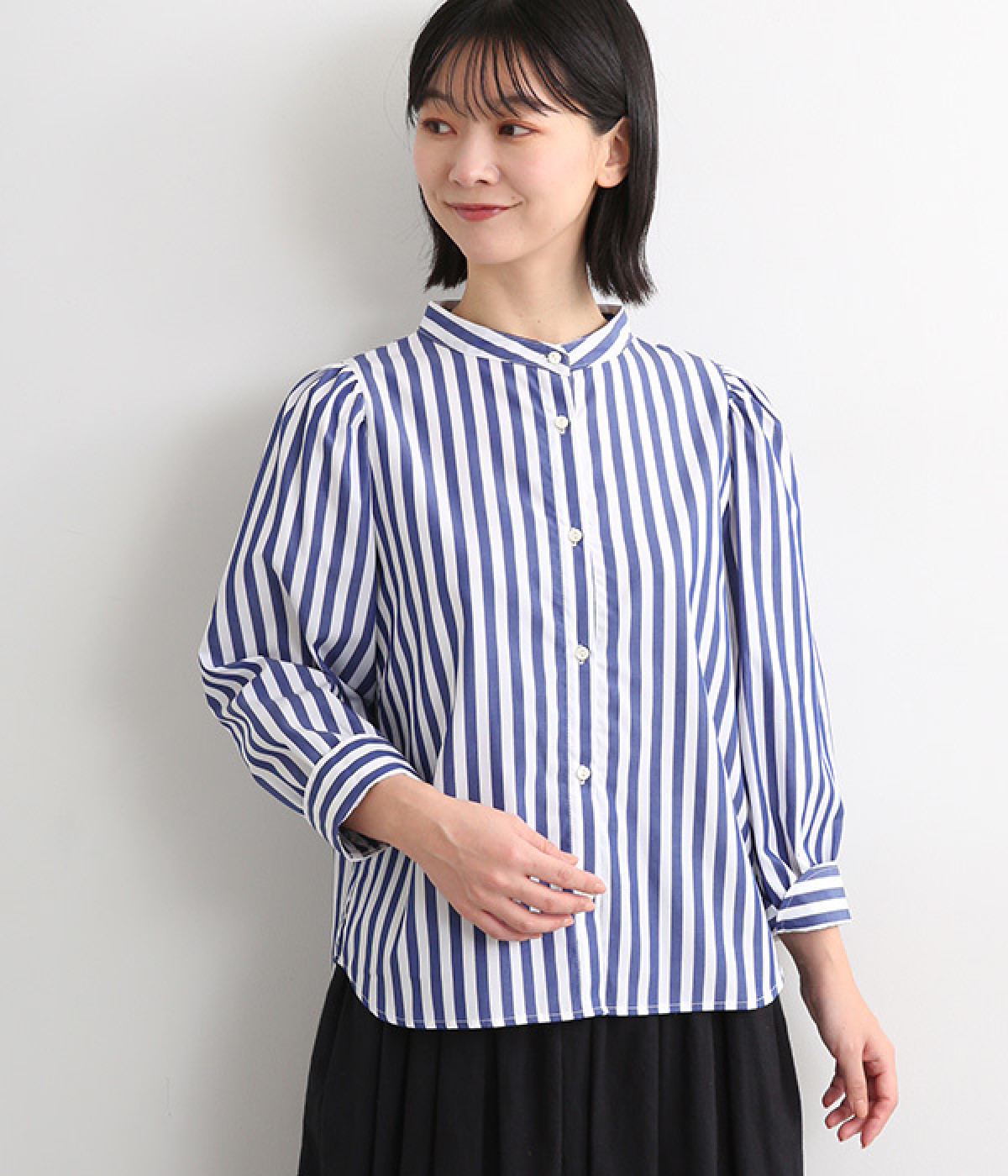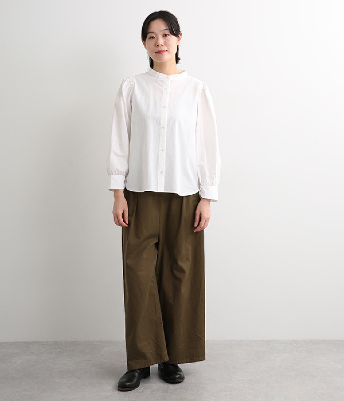 首元をすっきりと見せるバンドカラー