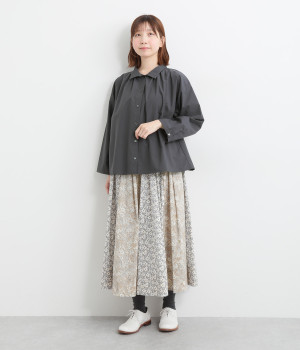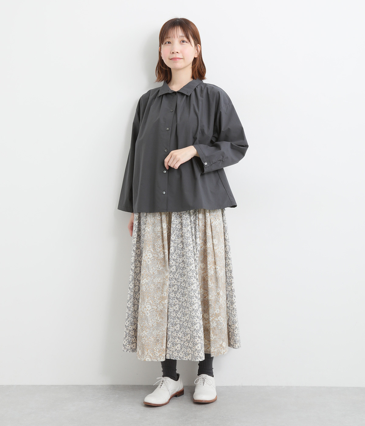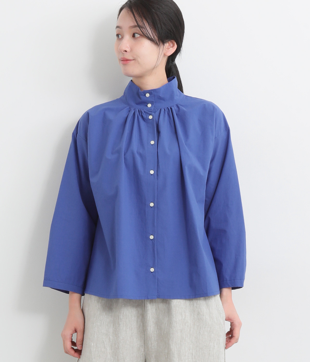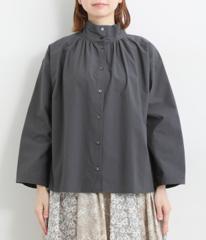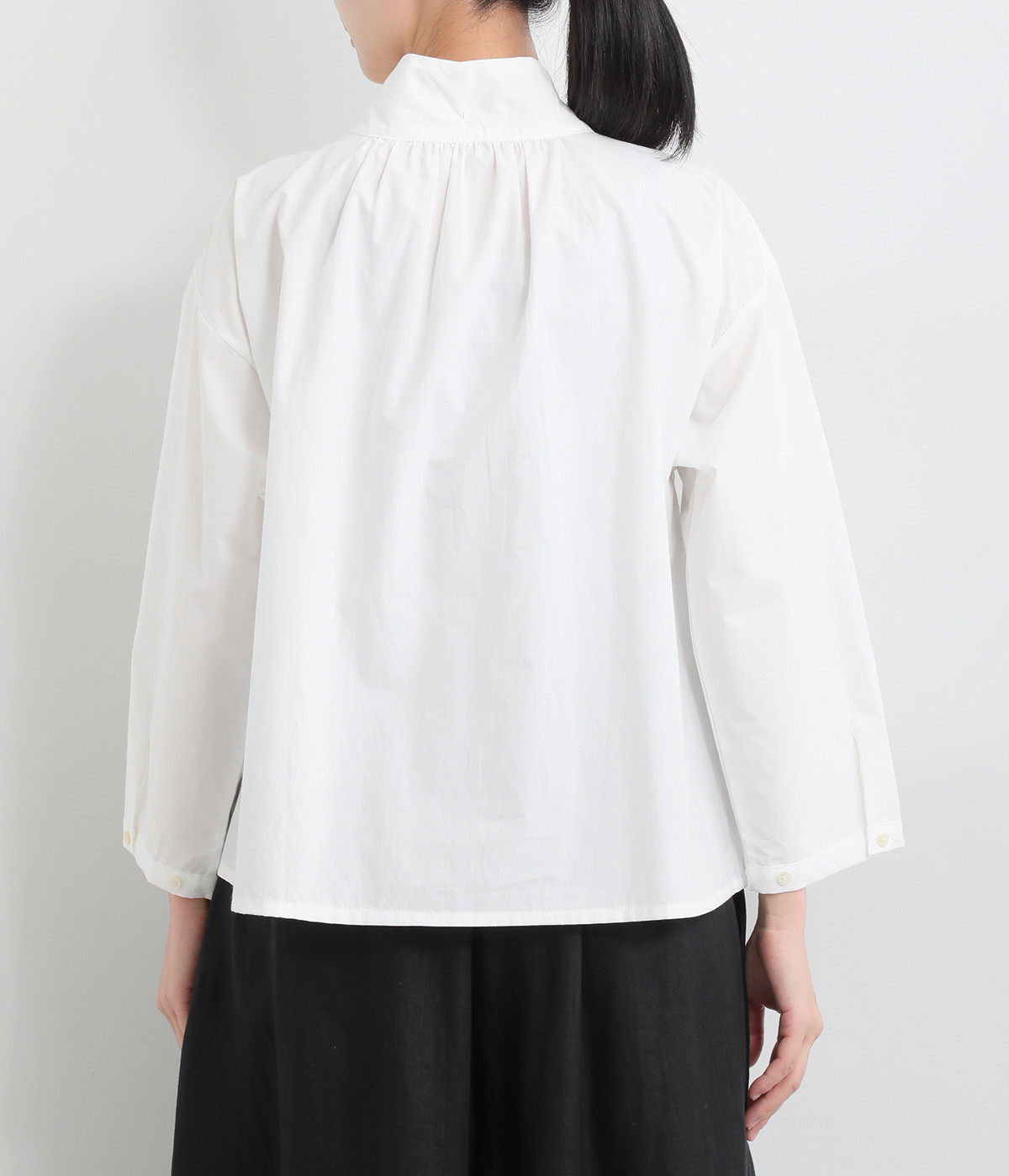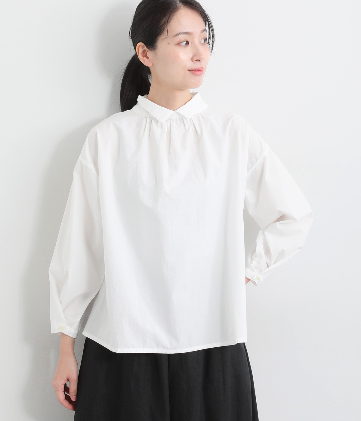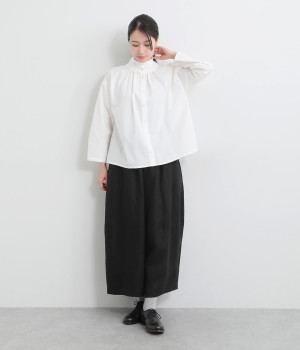 洗いざらしのシワ感やソフトなふくらみ、動きを持たせたワッシャー感が特徴的な、巧みな染色技法「近江晒」のコットンを使用。軽やかなのに独特の存在感があってメイン使いにもなる生地感です。