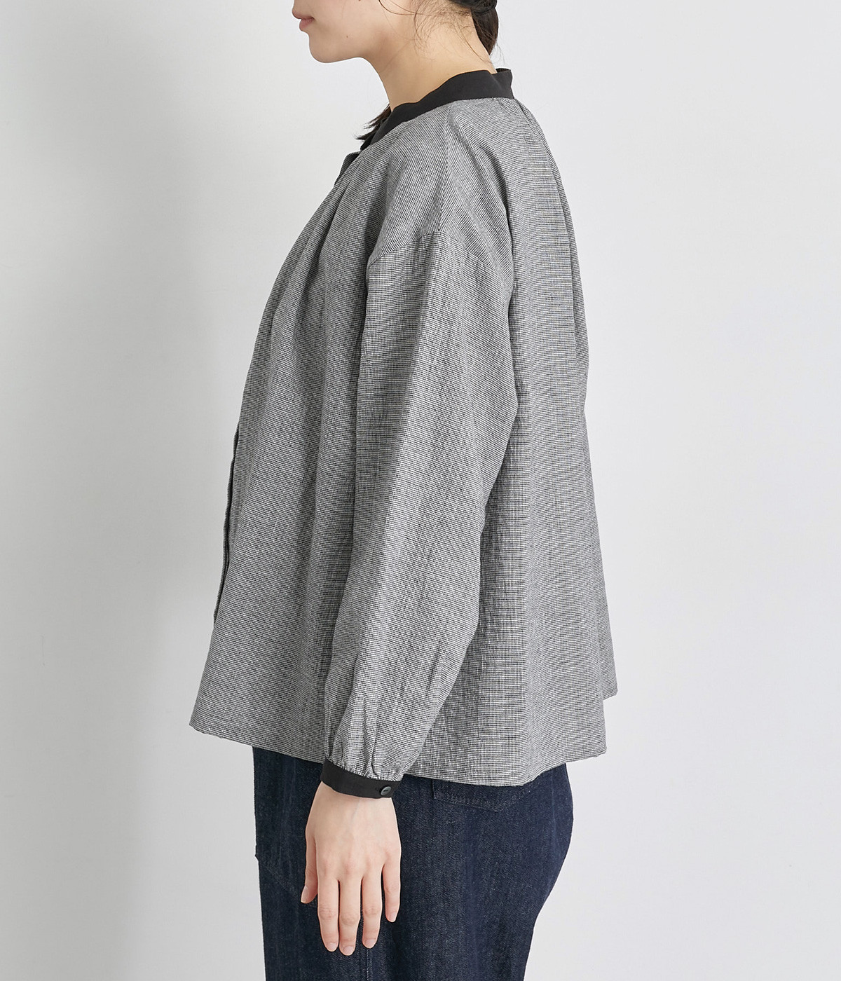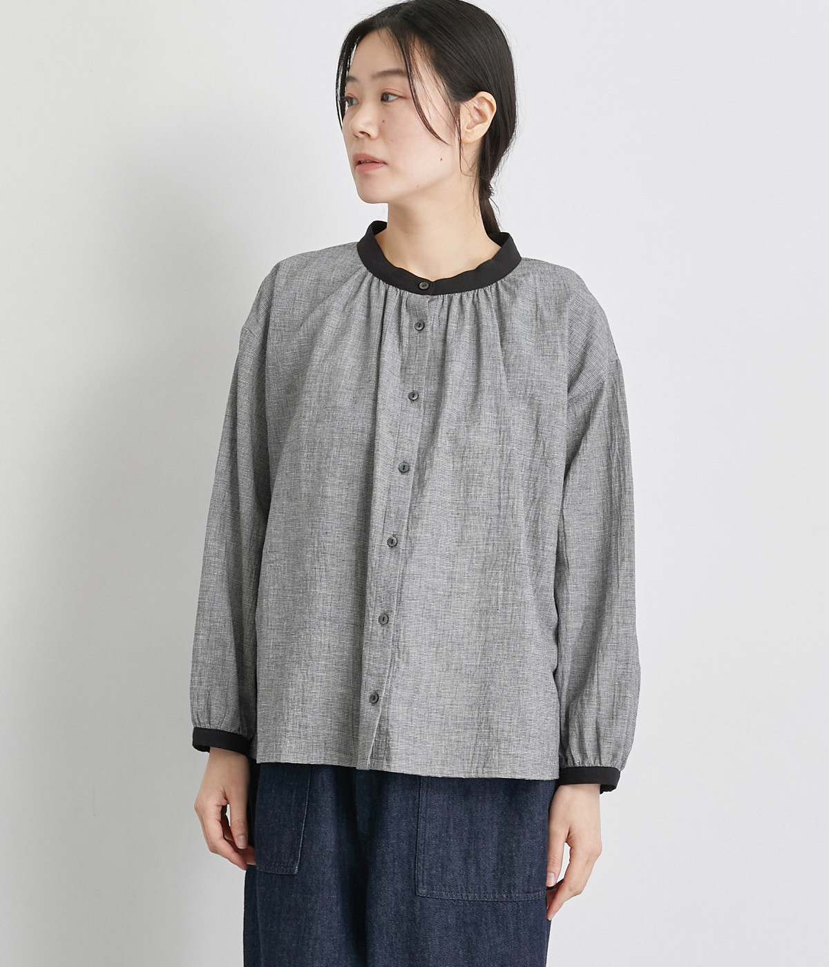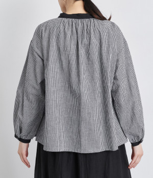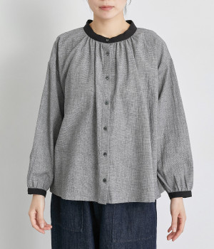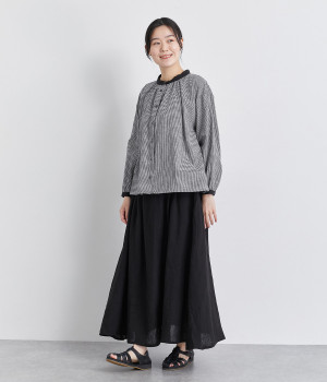 強撚糸のコットンリネン素材で仕立てた、ロングシーズン着まわせるブラウスです。ナチュラル素材ならではの風合いが豊かで、ほどよくふくらみもあり心地よい着用感も魅力のひとつ。