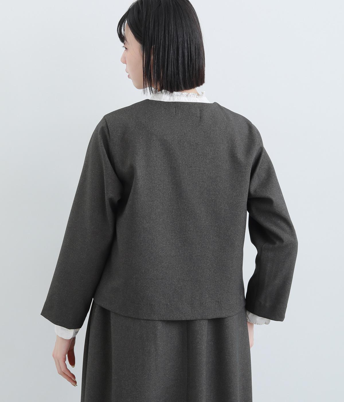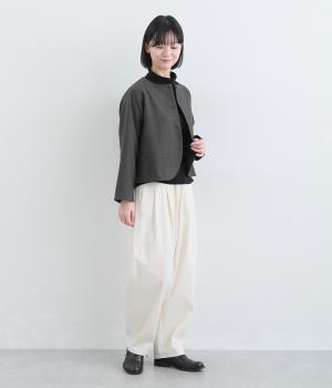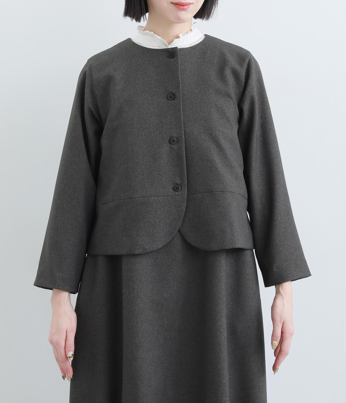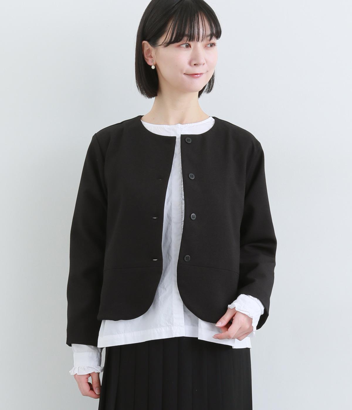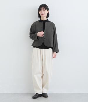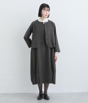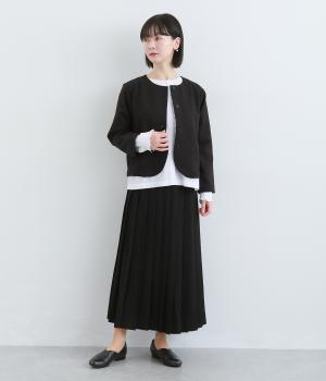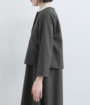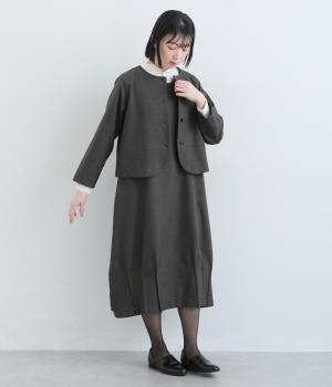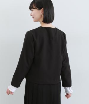 コンパクトな丈感で仕立てたフォーマルジャケットは、ワンピースにさっと羽織るのはもちろん、パンツやスカートにも好相性です。シンプルで上品な雰囲気は、フォーマルだけでなく日々のスタイリングにもなじみます。