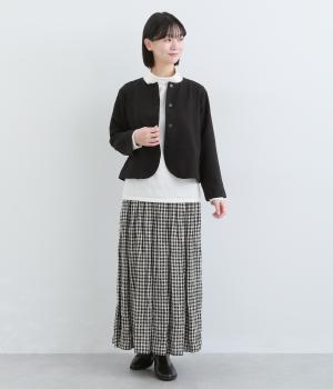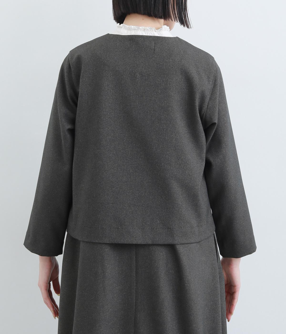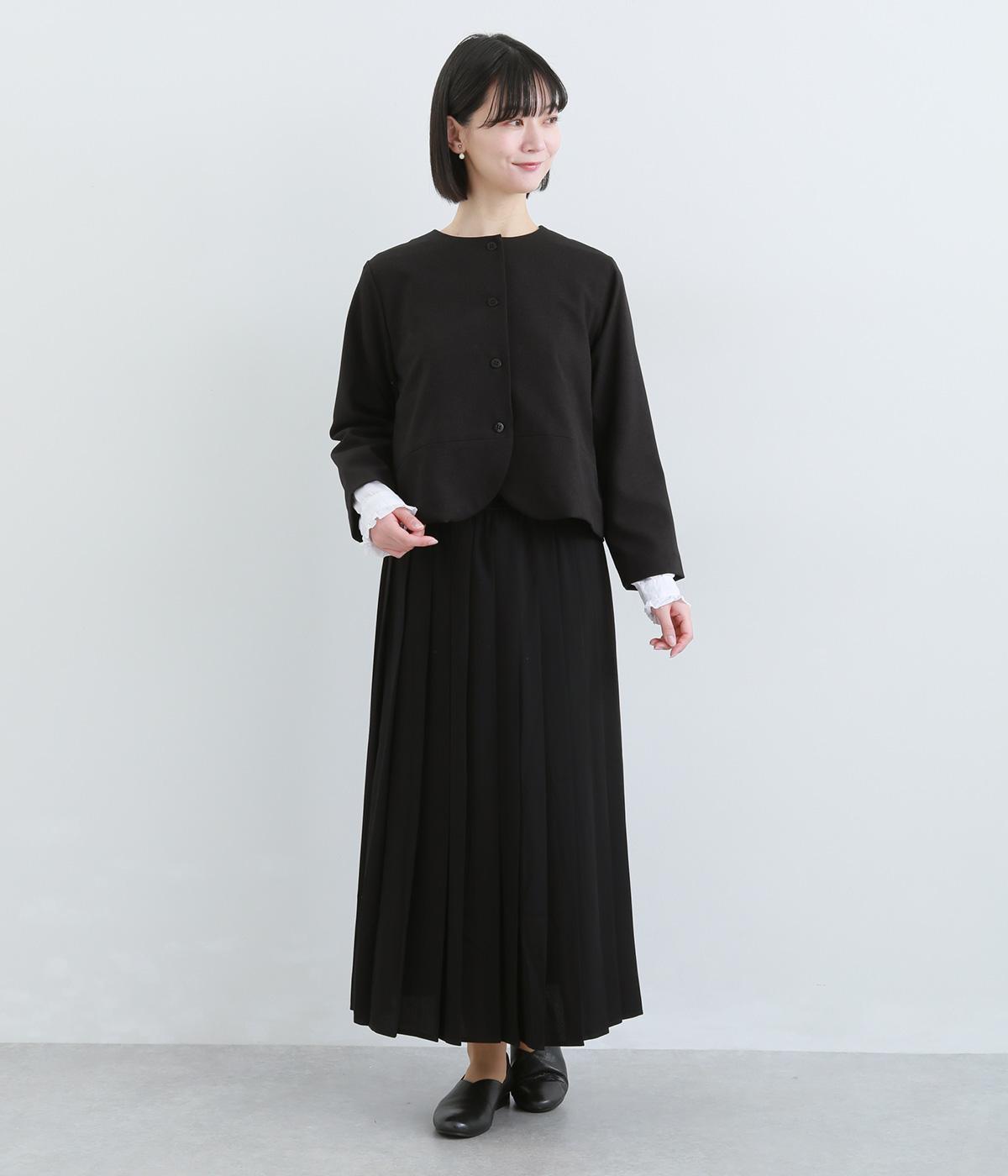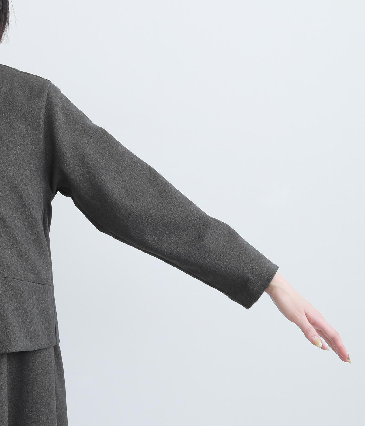 コンパクトな丈感で仕立てたフォーマルジャケットは、ワンピースにさっと羽織るのはもちろん、パンツやスカートにも好相性です。シンプルで上品な雰囲気は、フォーマルだけでなく日々のスタイリングにもなじみます。