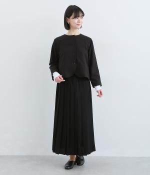 しなやかなハリがシルエットを美しくキープするポリエステル生地で仕立てました。さらりとした手ざわりでやさしい肌あたりです。きちんと感と着心地の良さを両立した素材感です。