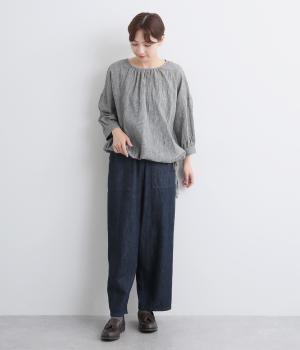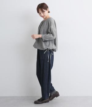 洗いざらしのようなドライタッチが心地よいコットンリネン生地を使用。自然なシワ感のある薄手生地で、肌へのまとわりも少なくロングシーズン快適に着まわせます。