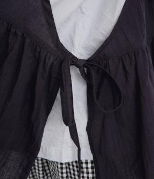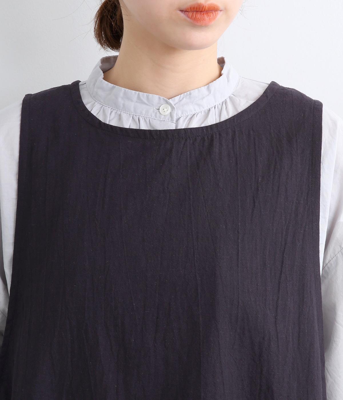 さらっとした軽やかな肌触りで心地よくレイヤードできる、薄め中厚手のコットンリネン生地を使用。自然なシワ感がナチュラルな風合いをより高めます。