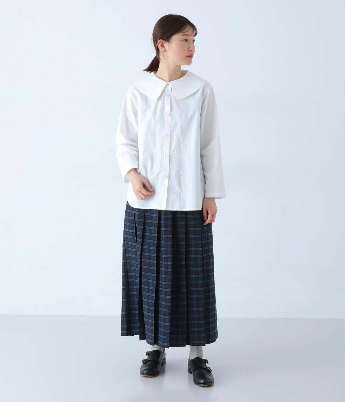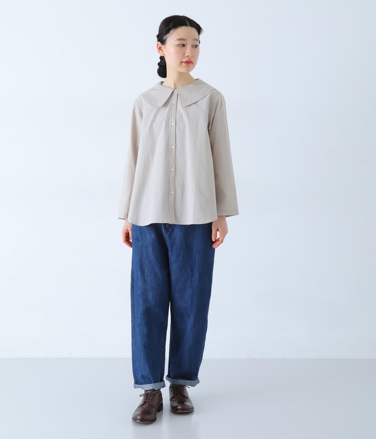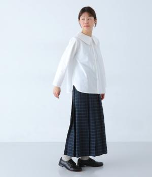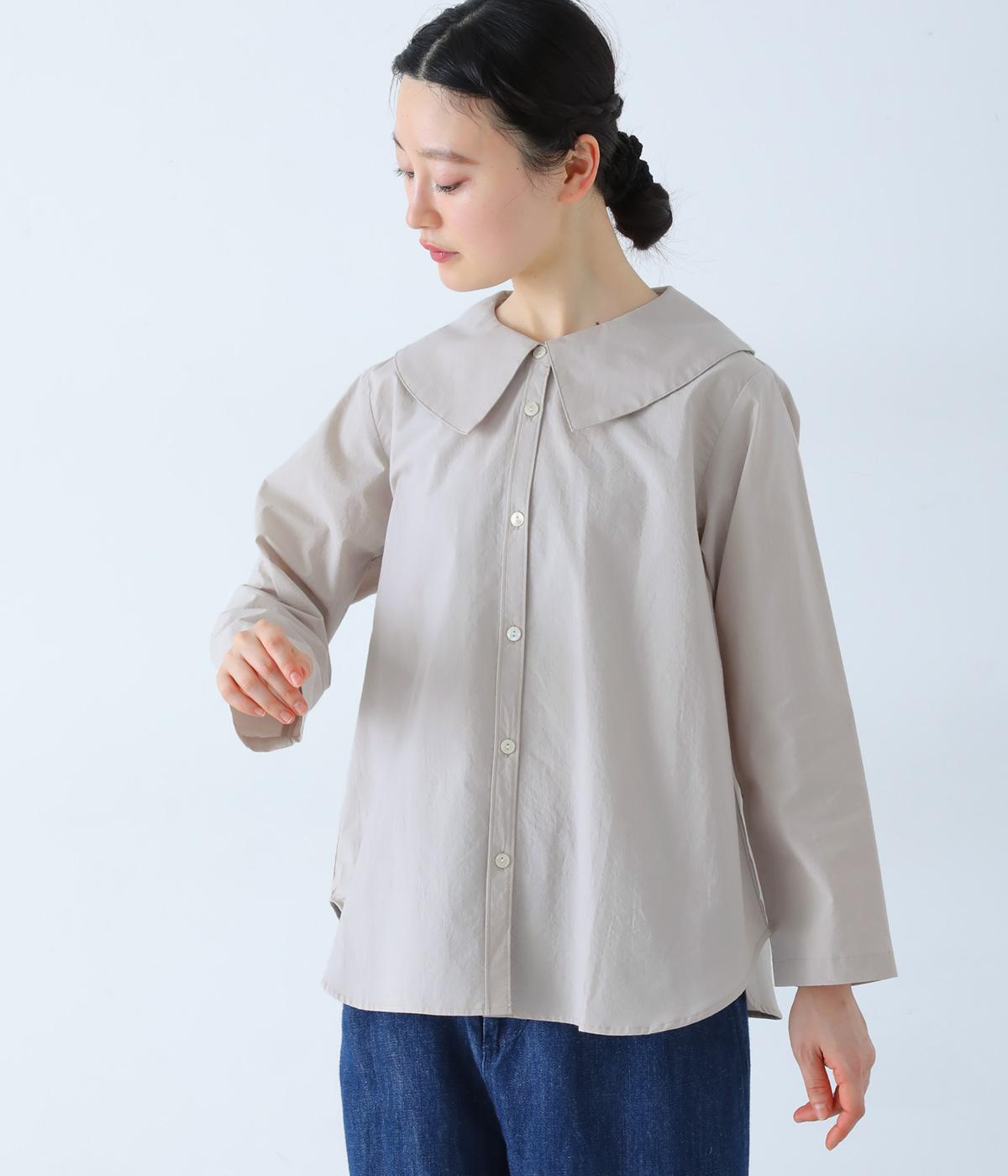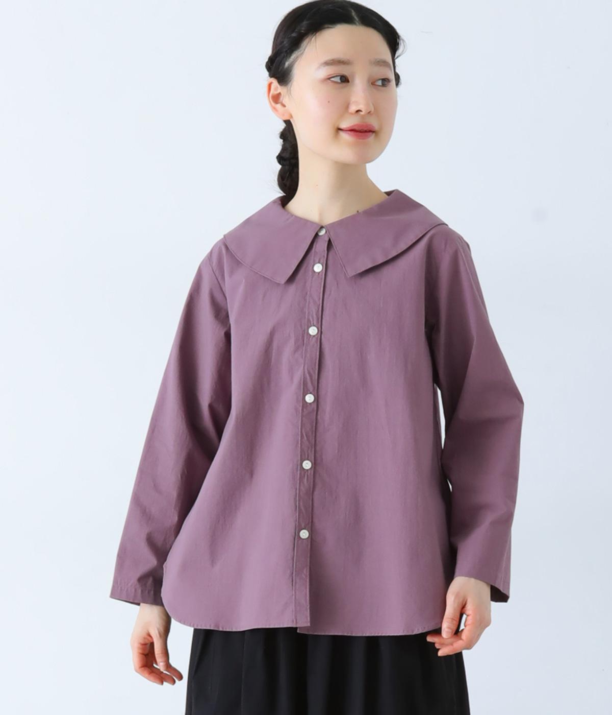 大きな襟が顔まわりを華やかに見せてくれるブラウスです。裾のサイドスリットと背面のギャザーがアクセントに。シンプルながらも、上品な印象を与えてくれる一枚です。