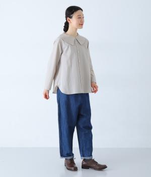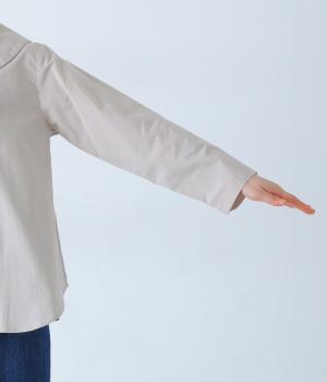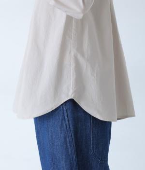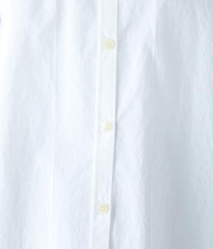 薄手でさらりとした肌ざわりのコットン生地です。表面にほんのりシワ加工があり、こなれ感を演出してくれます。