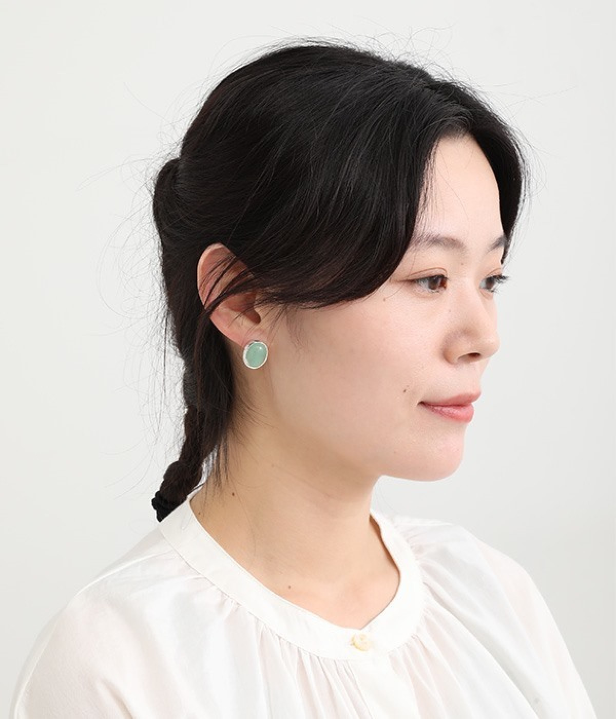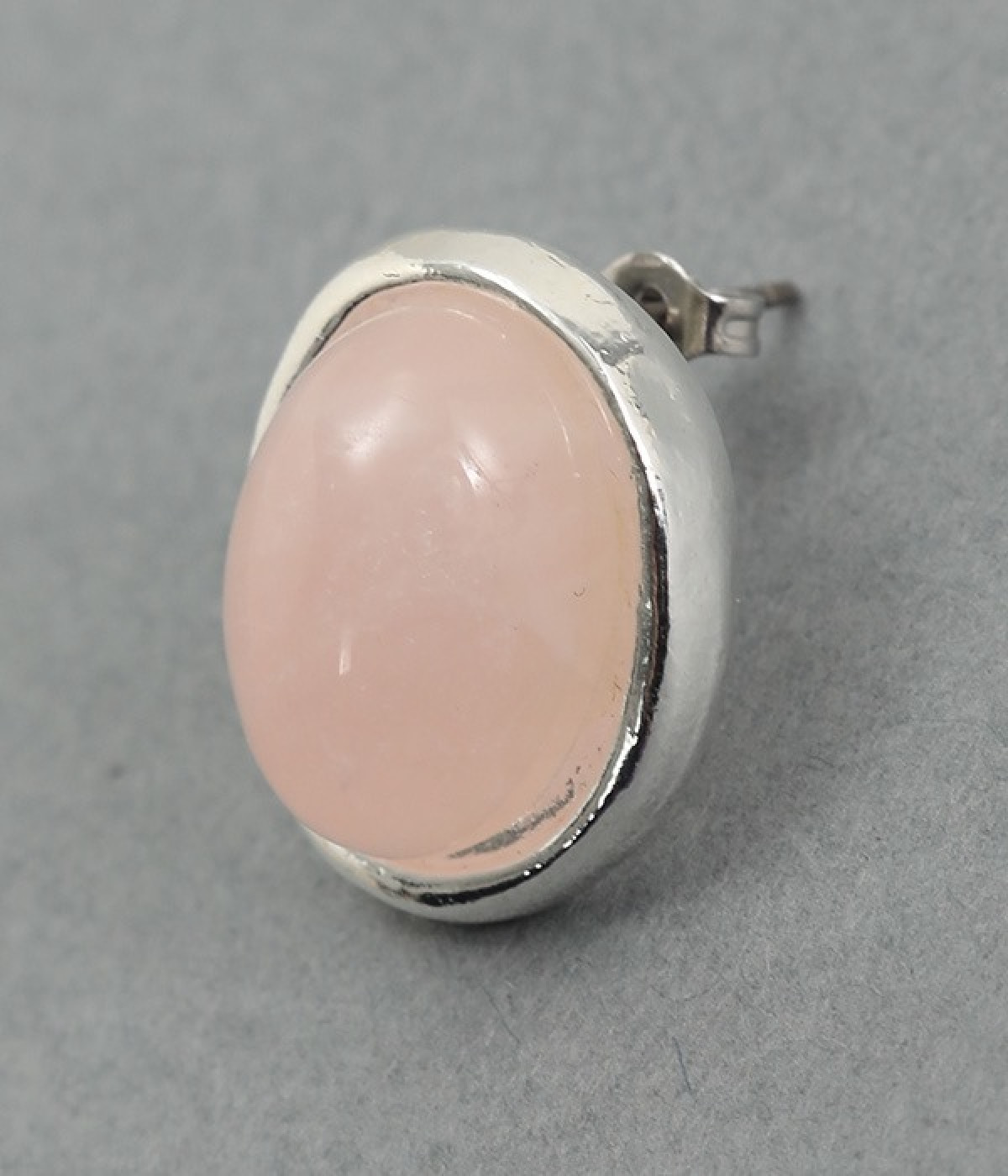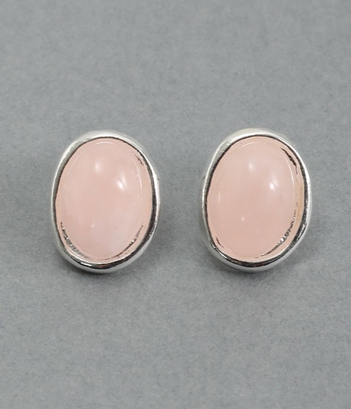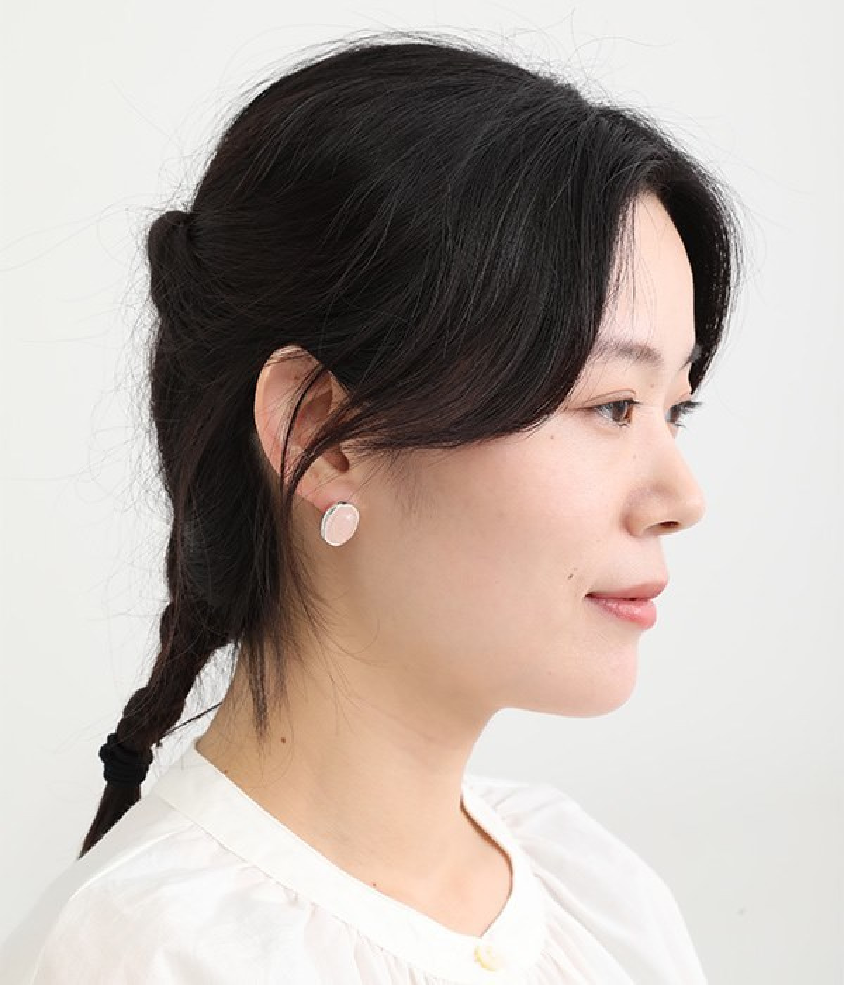 顔まわりにさりげない華やぎを添える天然石を使用したピアスです。やさしい輝きの天然石を囲むのは、凛とした輝きのメタルカラーフレーム。ぷっくりと立体感があるモチーフがかわいらしく、横顔も印象的に見せてくれます。耳たぶにしっかりと密着するスタッドタイプを採用。普段使いからちょっぴり特別なシーンまで、幅広く使えるアイテムです。