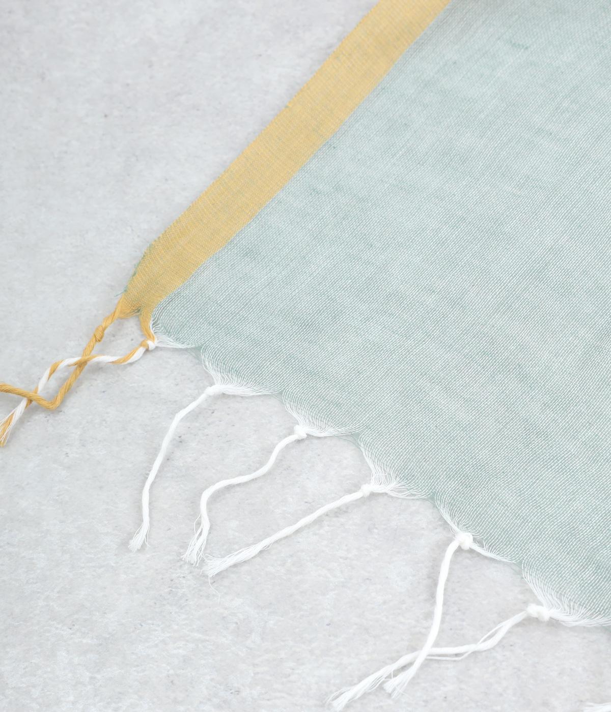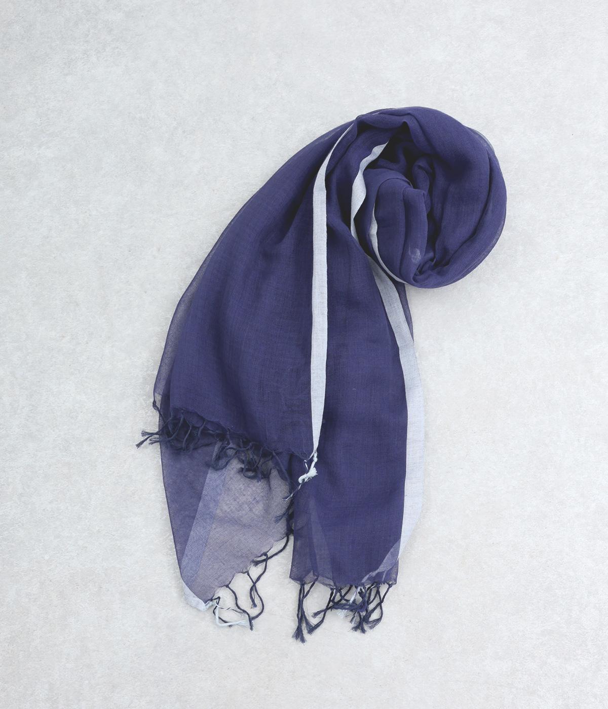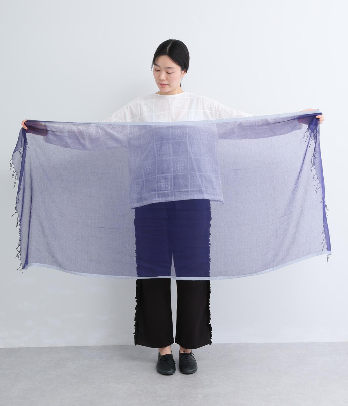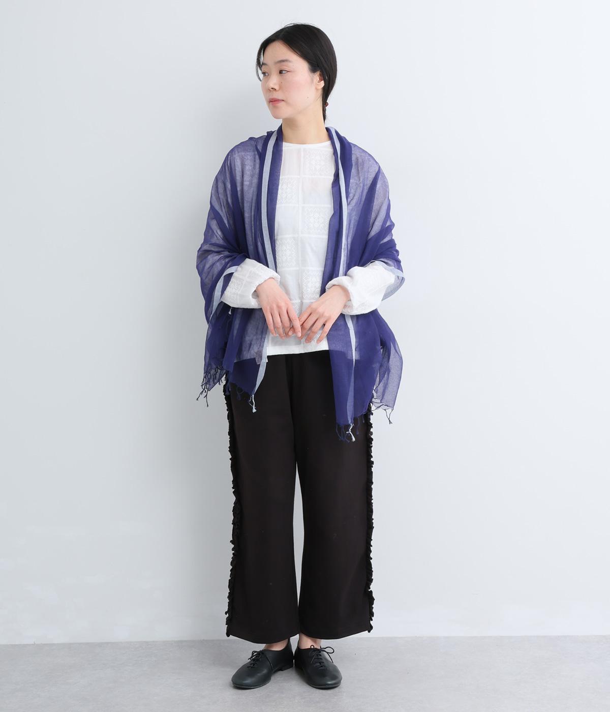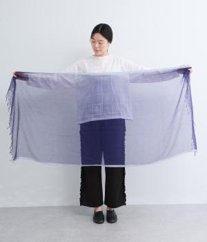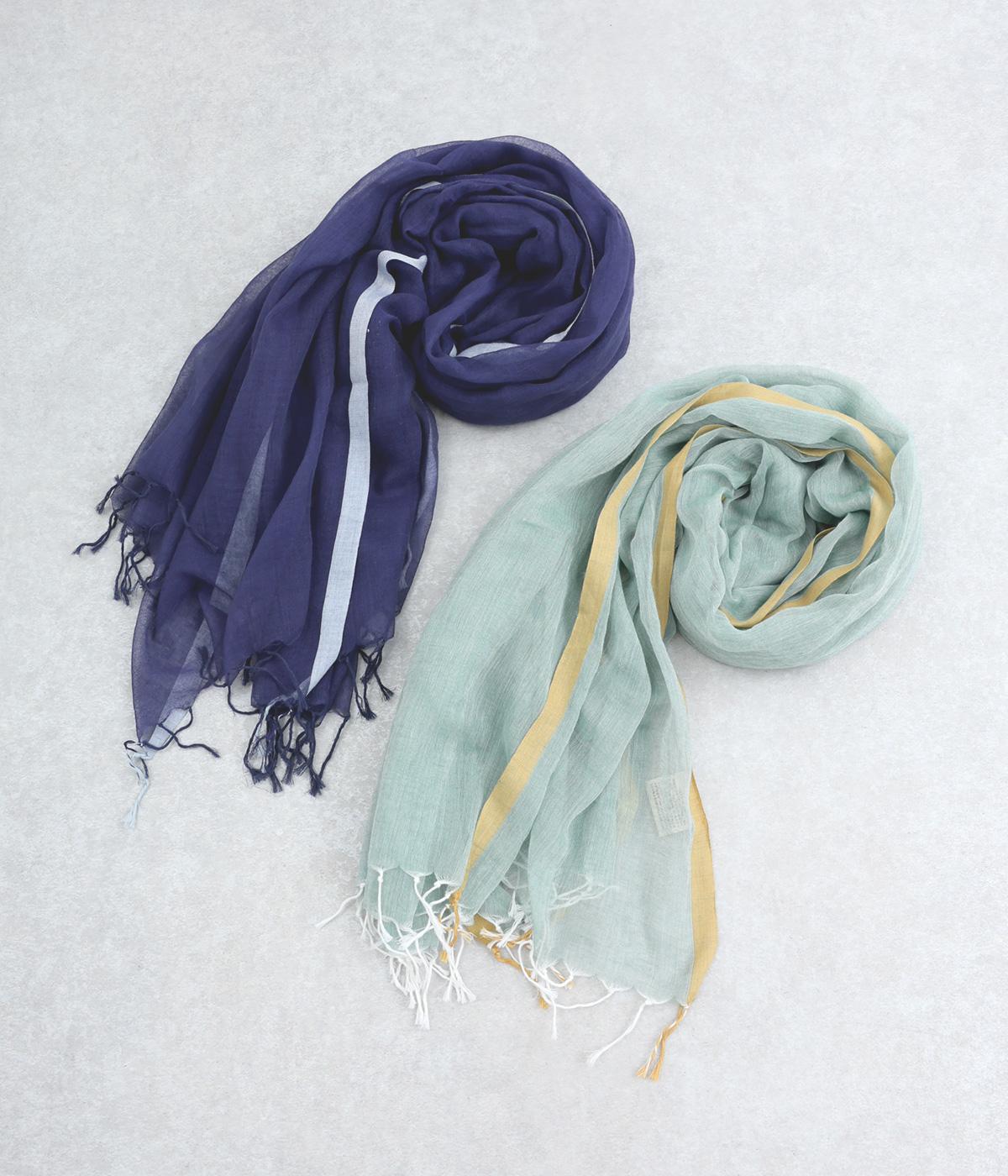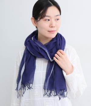 まるで空気を纏っているかのようなふわりとした質感が魅力の大判ストール。ほんのりと透け感があってスタイリングにも取り入れやすく、配色ラインがさり気なくきいています。とても軽くシワも気になりにくいので持ち歩き用としても重宝。