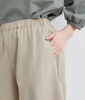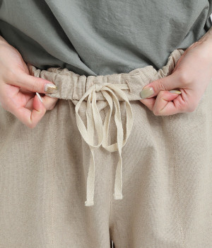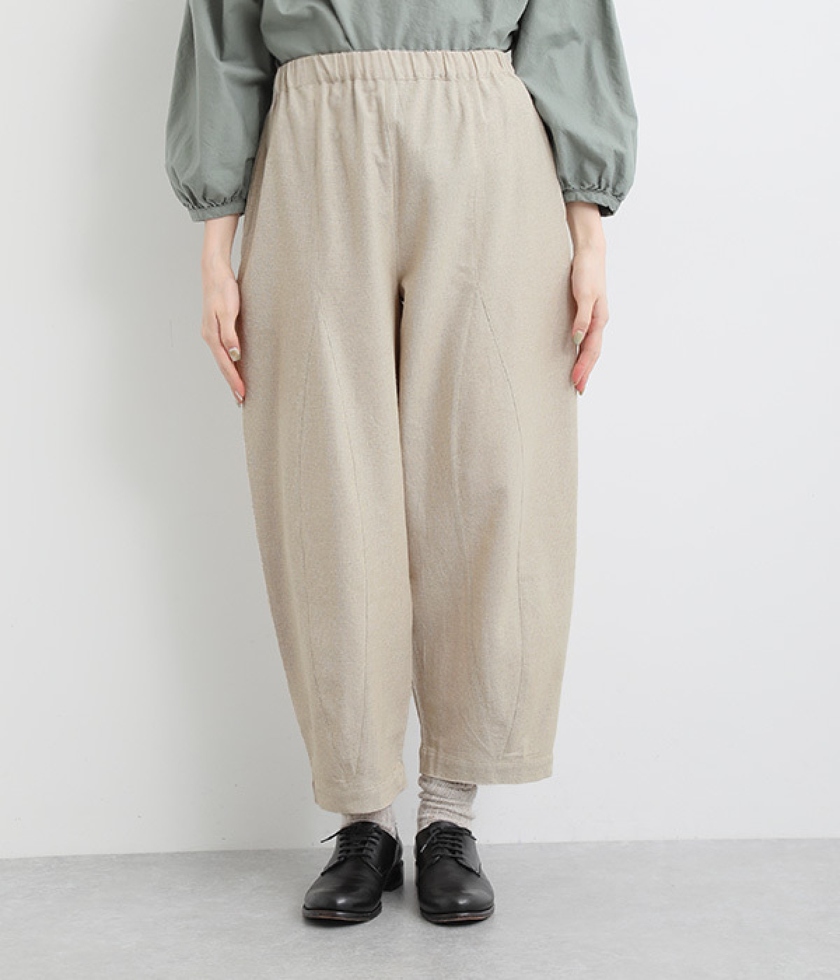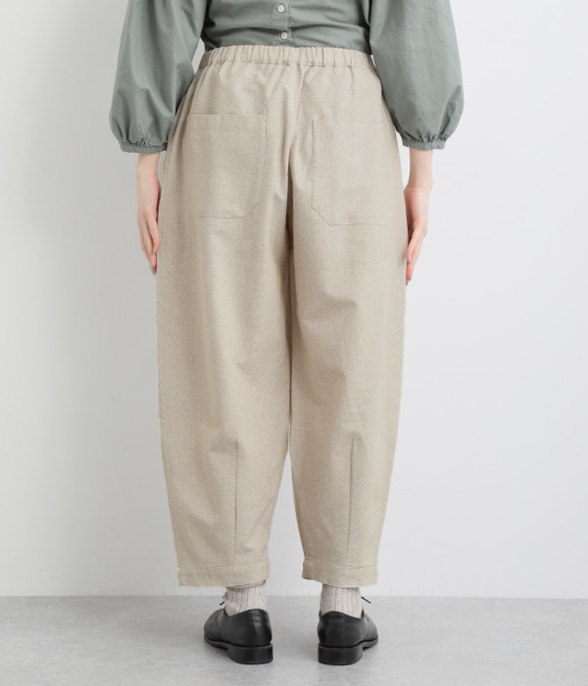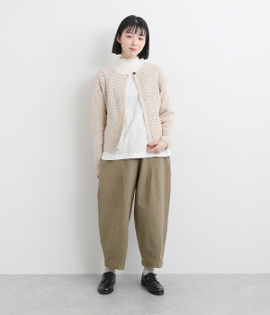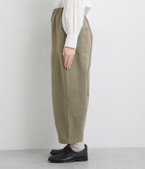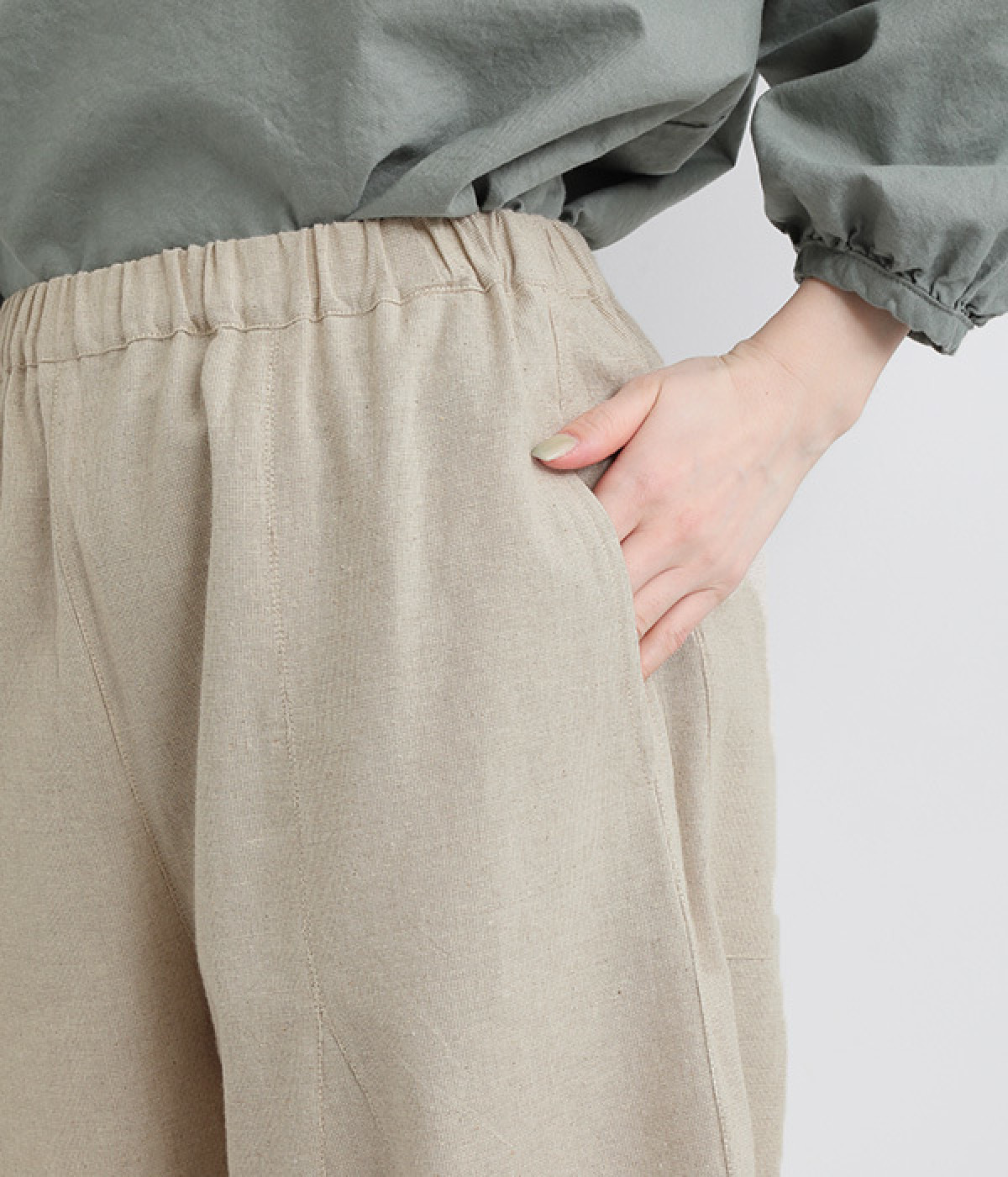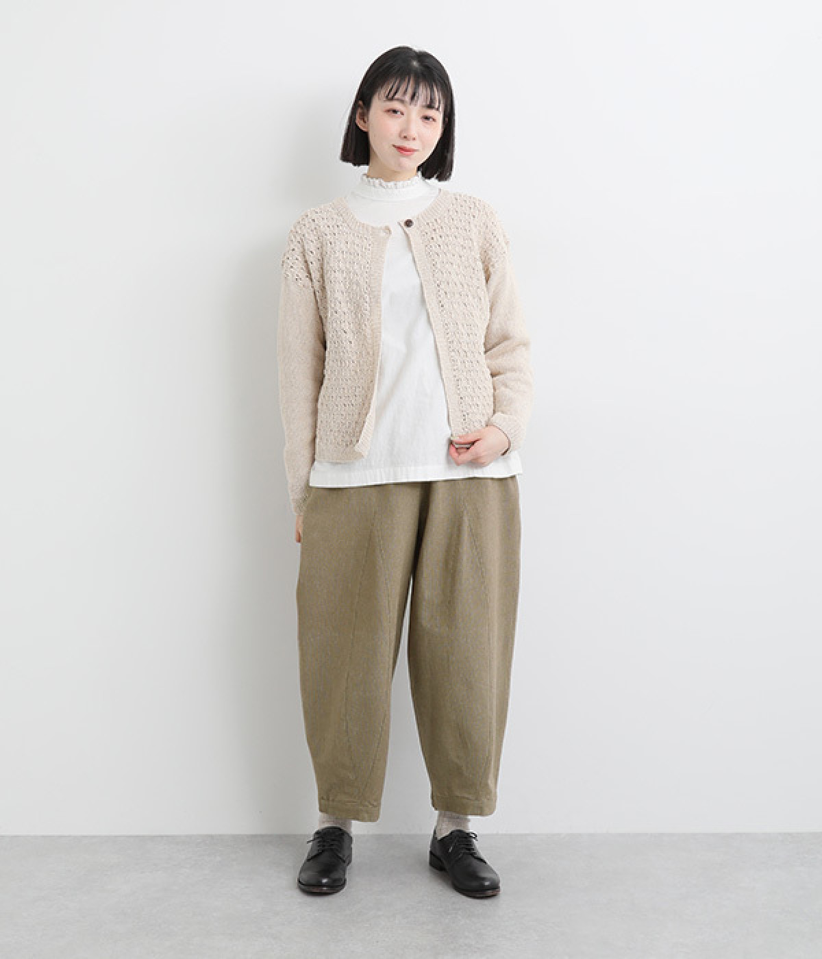ほどよくコシがあり、素朴な風合いと色あいを活かしたコットン生地。ネパール製のフェアトレードアイテムで、手仕事ならではのぬくもりが感じられます。一枚で穿ける心地よい生地感です。