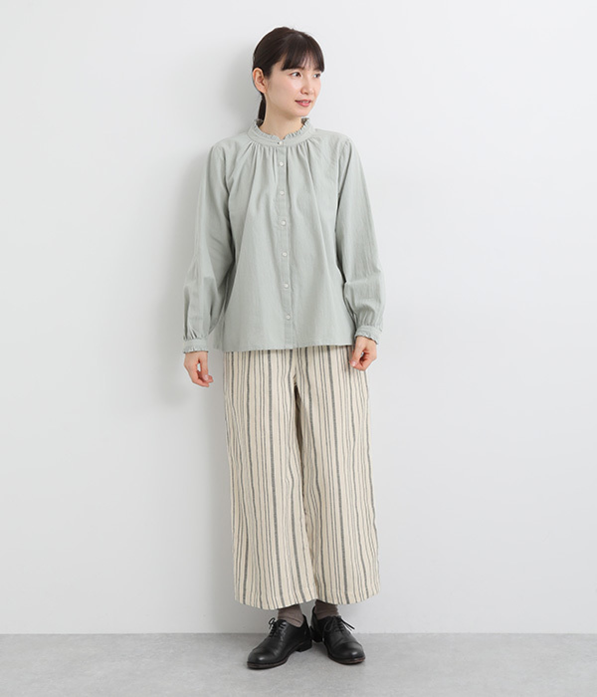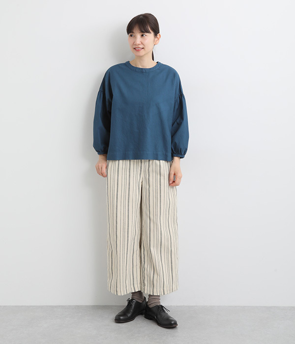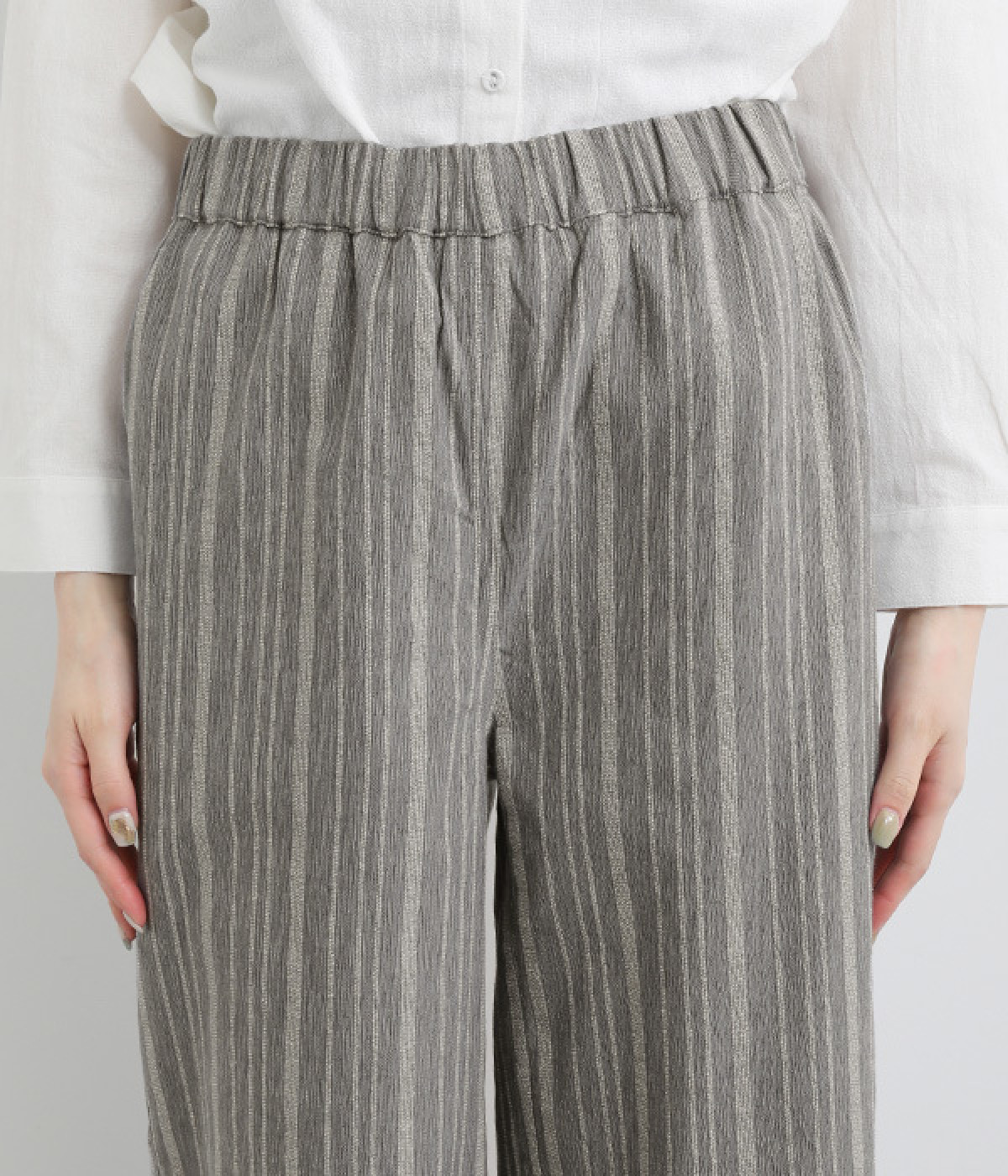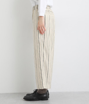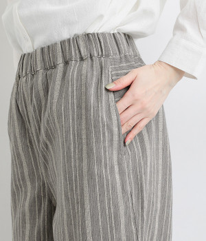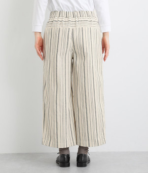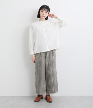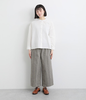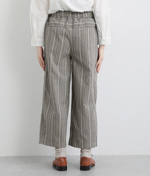 穿きやすくもしっかりとした綿生地で、手織りによるネップが風合い豊かなストライプ柄。ネパール製のフェアトレードアイテムで、手仕事ならではのぬくもりが感じられます。