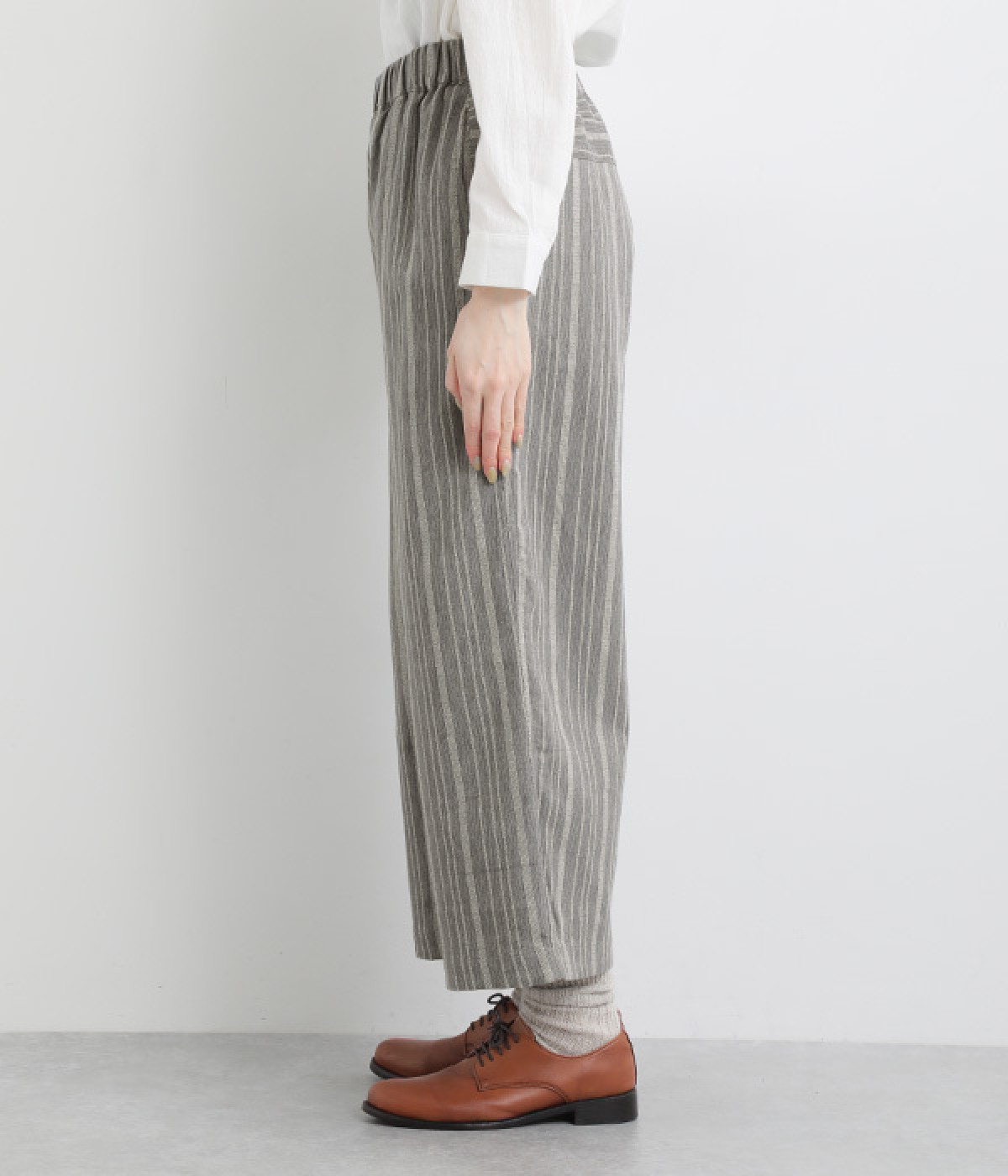 ゆるめのストレートシルエットに仕上げた、シンプルではきまわしやすいパンツ。こなれ感のあるリラックスムードが魅力的で、コーディネートの主役になります。ウエストは安定感のある総平ゴムに内紐入り。