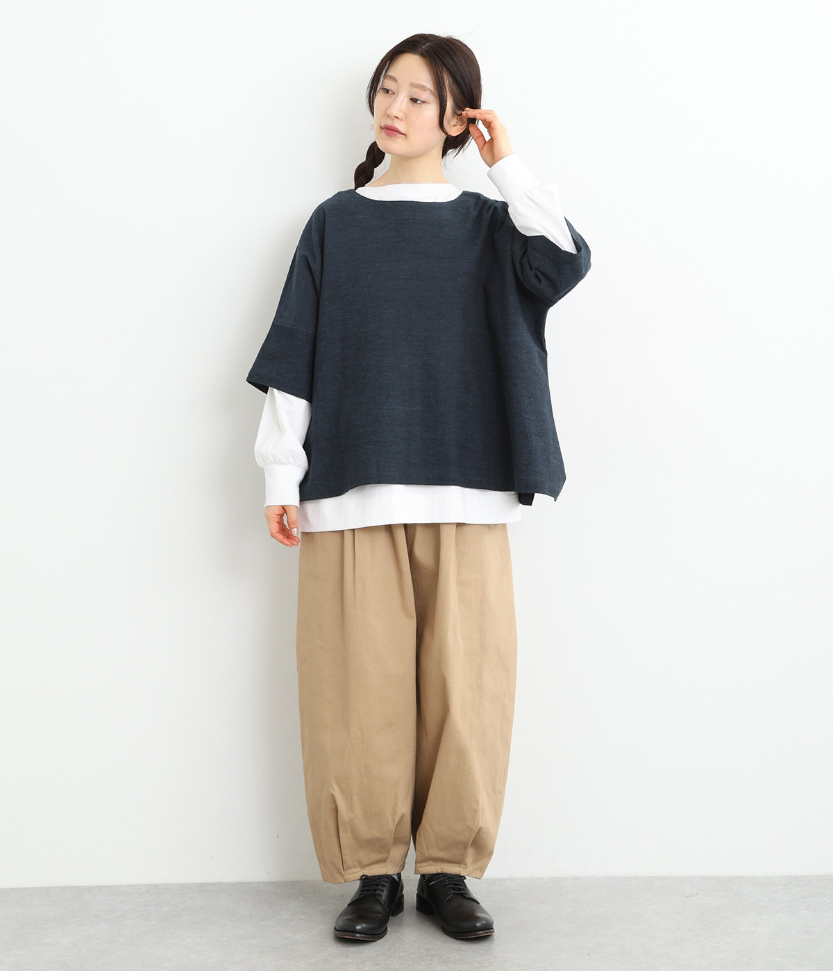 ゆったりしていて自然なドレープがこなれ感を演出