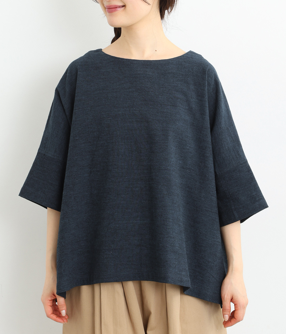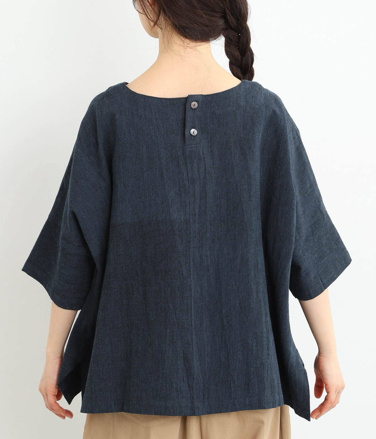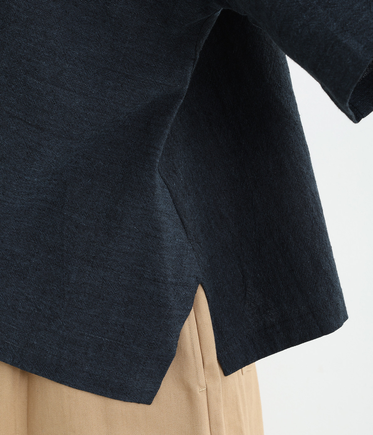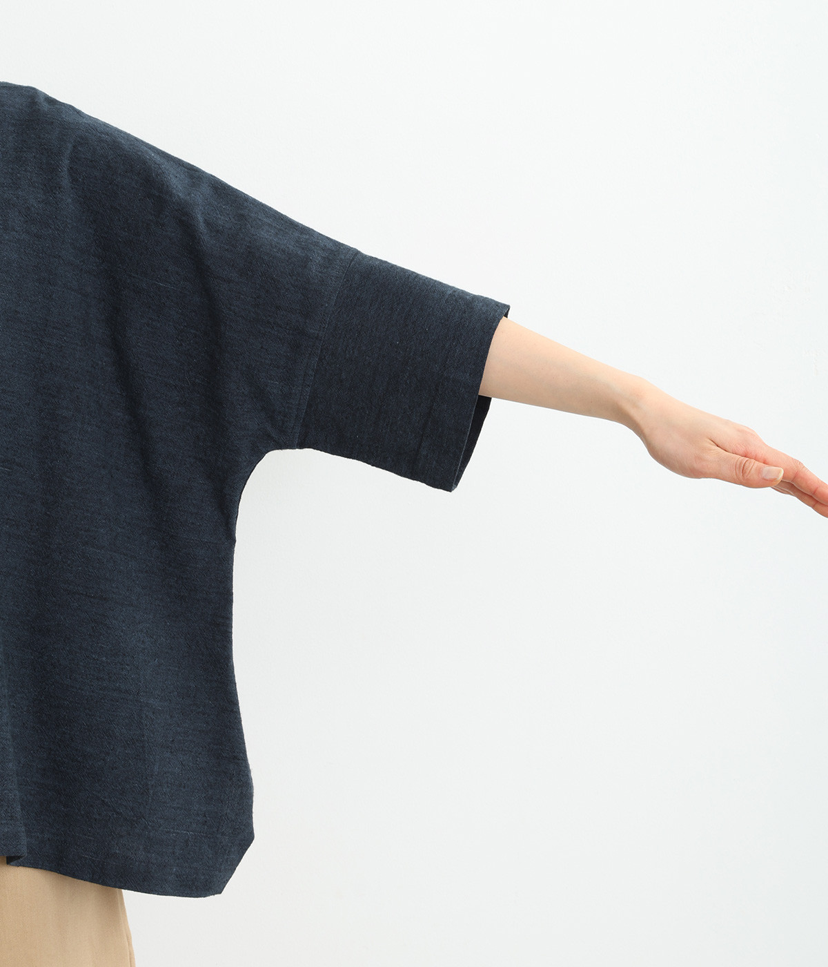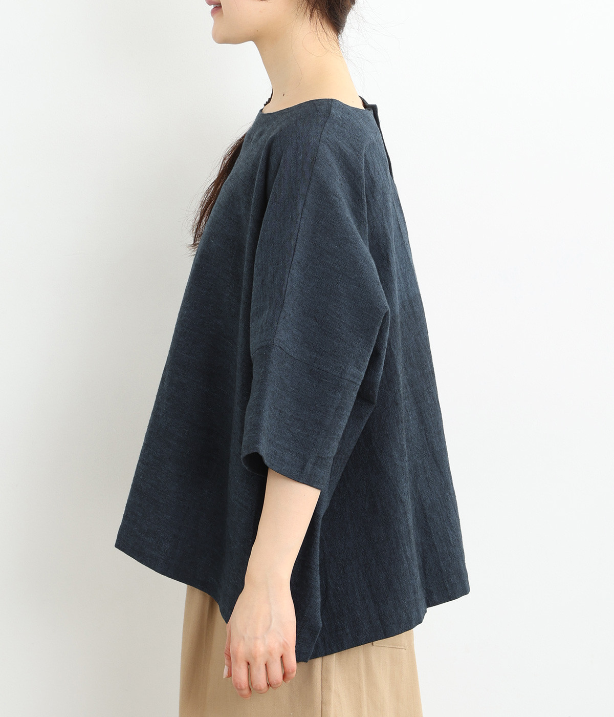 草木染の為、濃淡にムラがあることがございます。また、手織り生地の為「ネップ」が見られます。手仕事の味わいとしてお愉しみください。