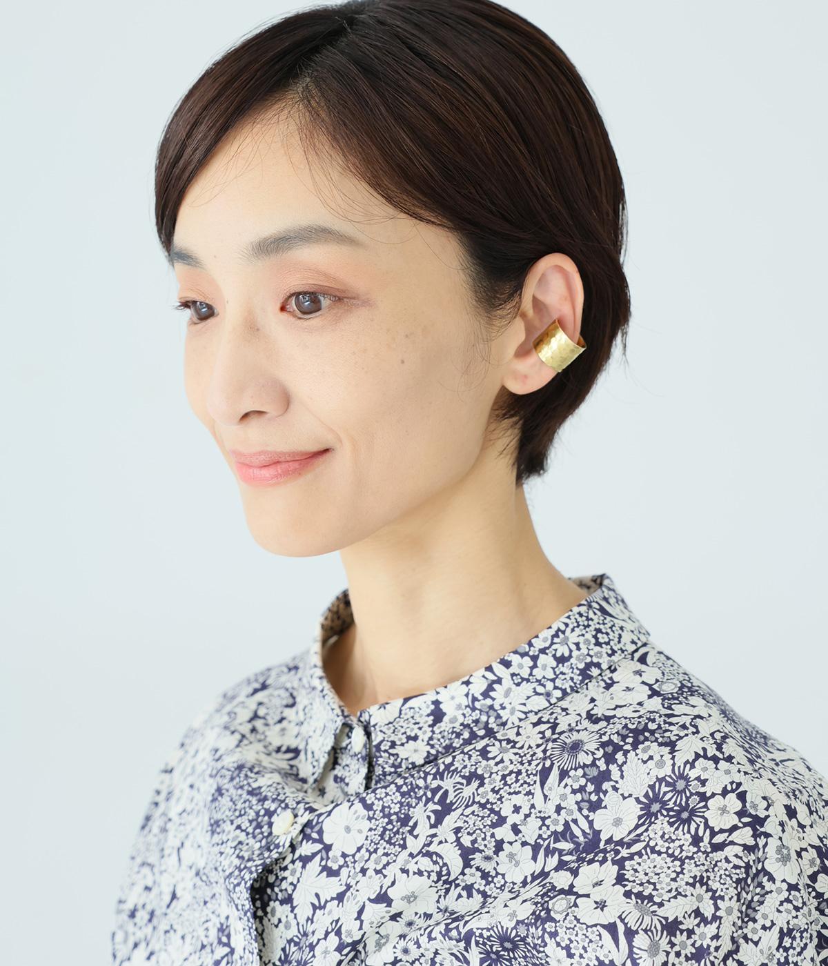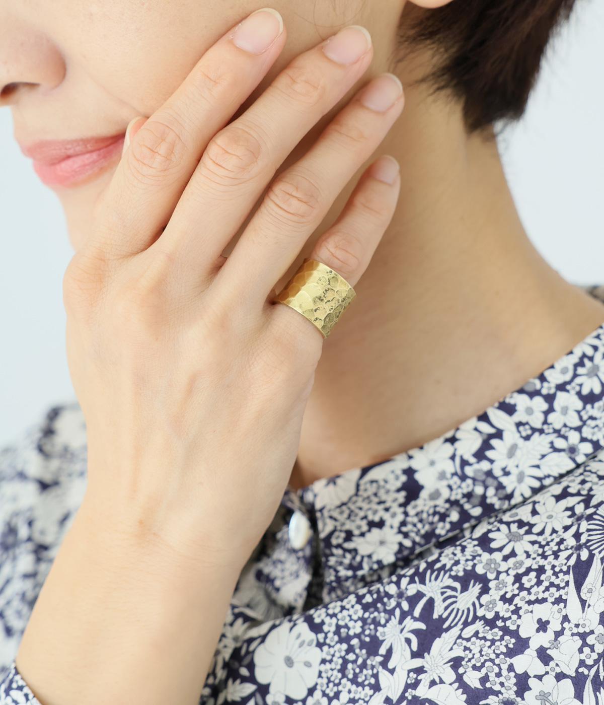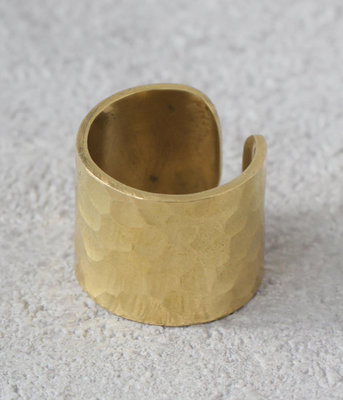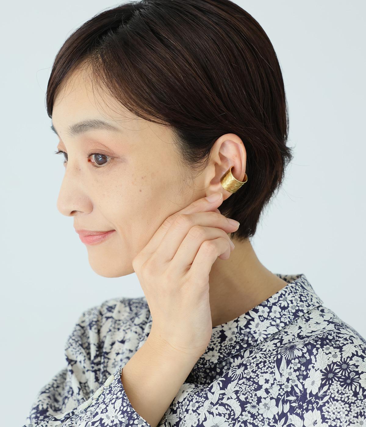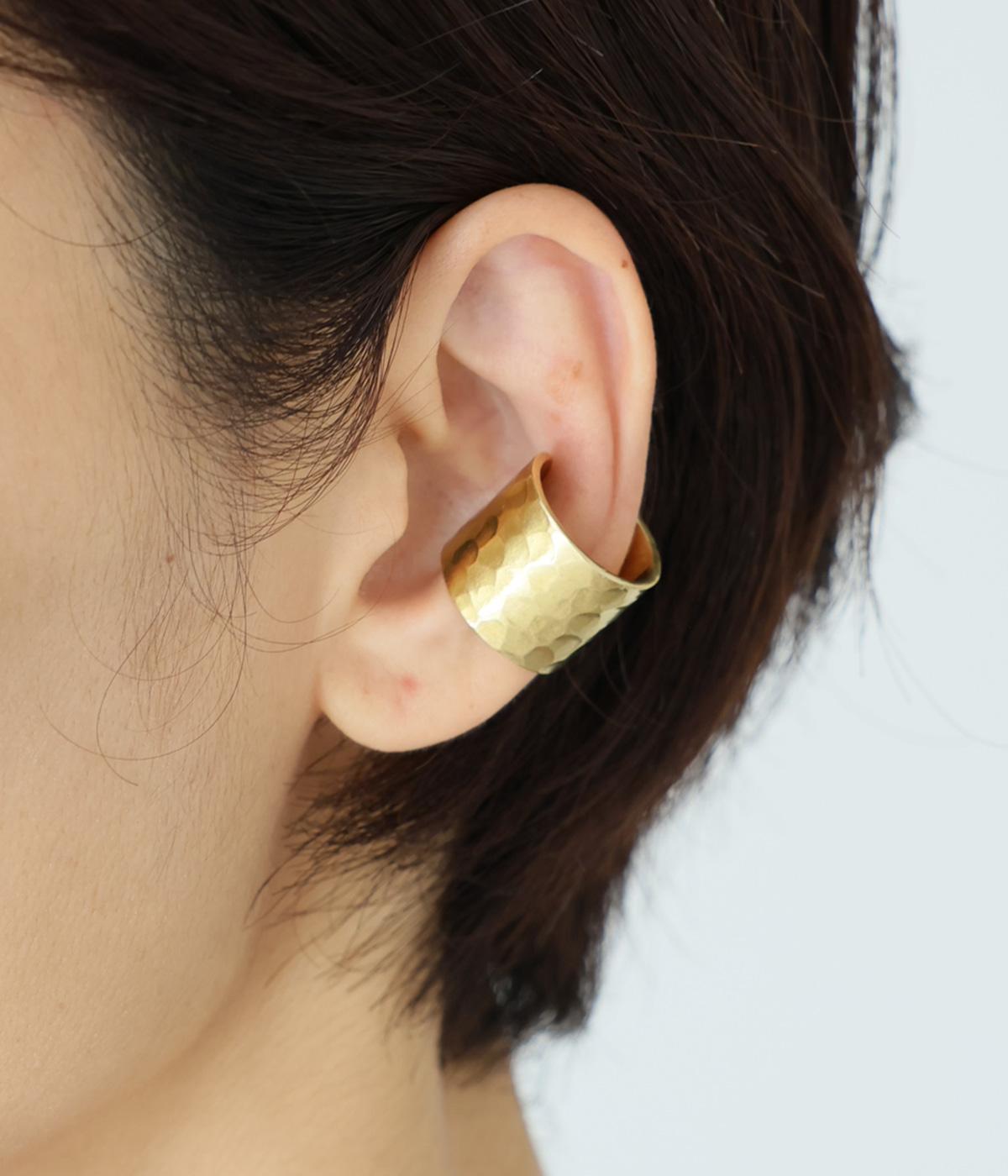 リングにもイヤーカフにもなる2wayアイテム。表面がデコポコした槌目が特徴的なデザイン。華やかさとナチュラル感のバランスが良く、幅広いスタイリングに合わせられます。太幅で適度に存在感の光るデザインです。