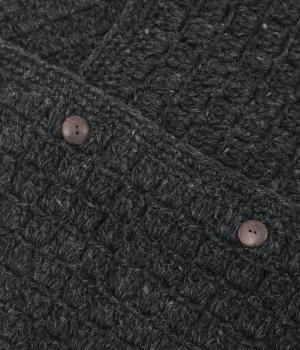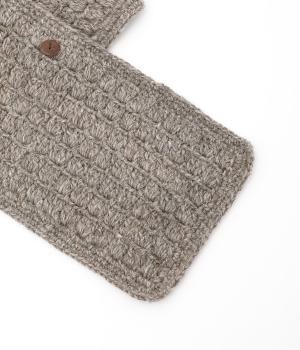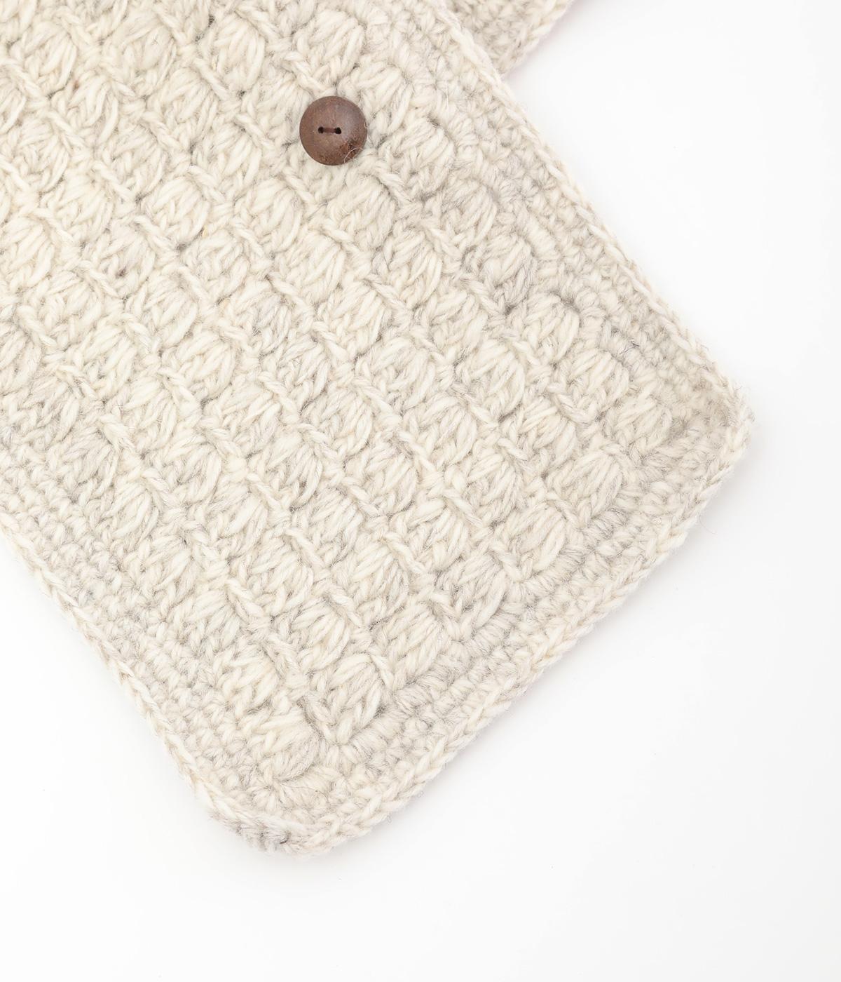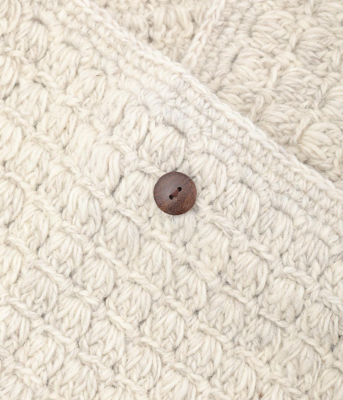 空気を含んだウールの毛糸でふっくらと編まれています。ぽこぽことした立体感のある模様がポイント。一つ一つ丁寧に手編みで作られており、見た目にもあたたかさが感じられます。