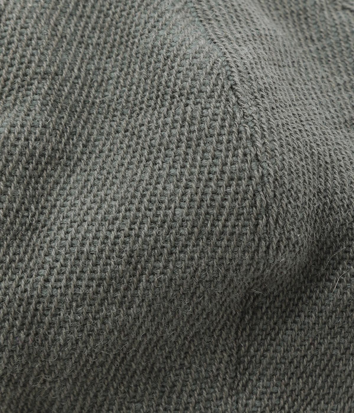 細かな凹凸のある独特な表面感が特徴のウールコットン生地を使用。しっかりとした厚みがあり、シルエットをきれいにキープしてくれます。