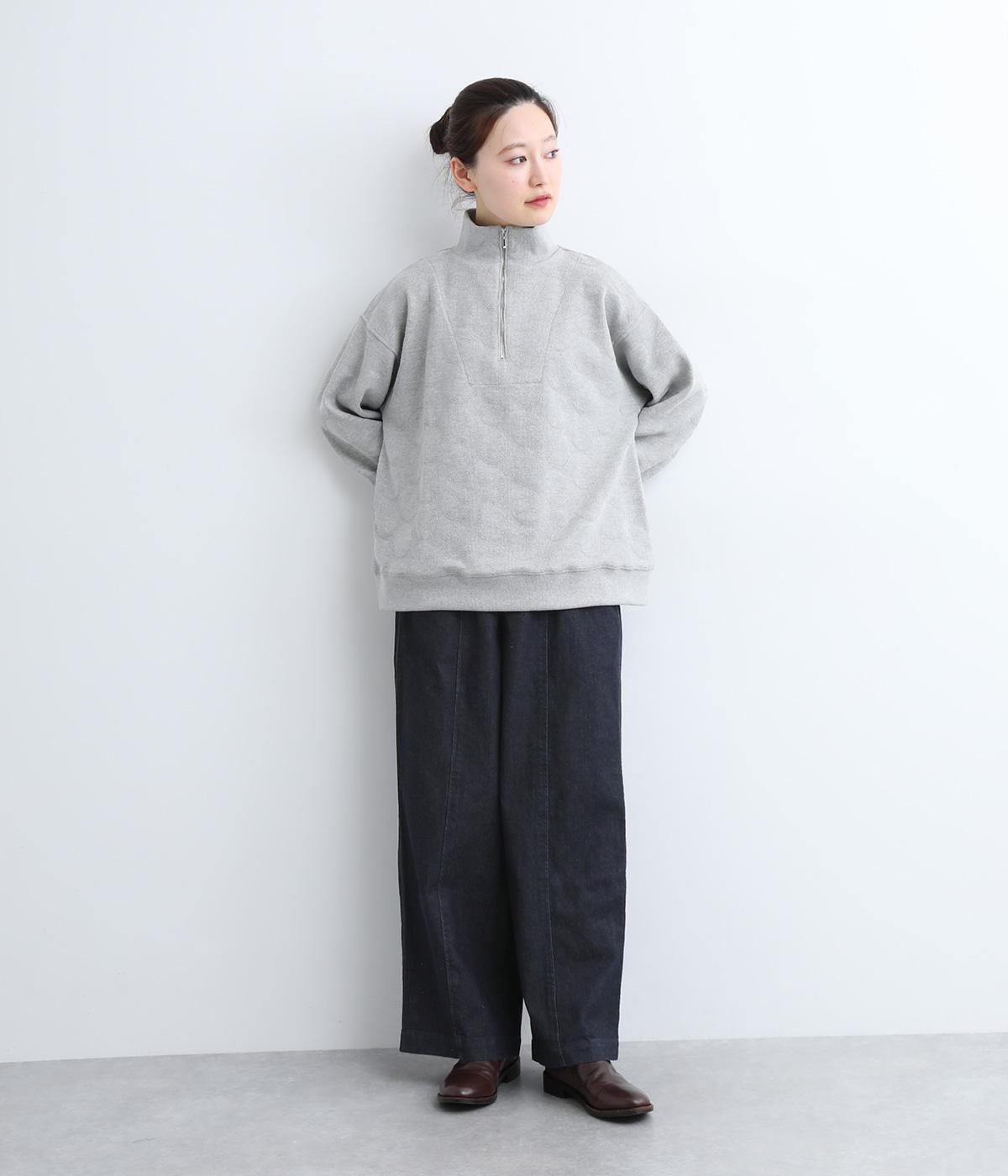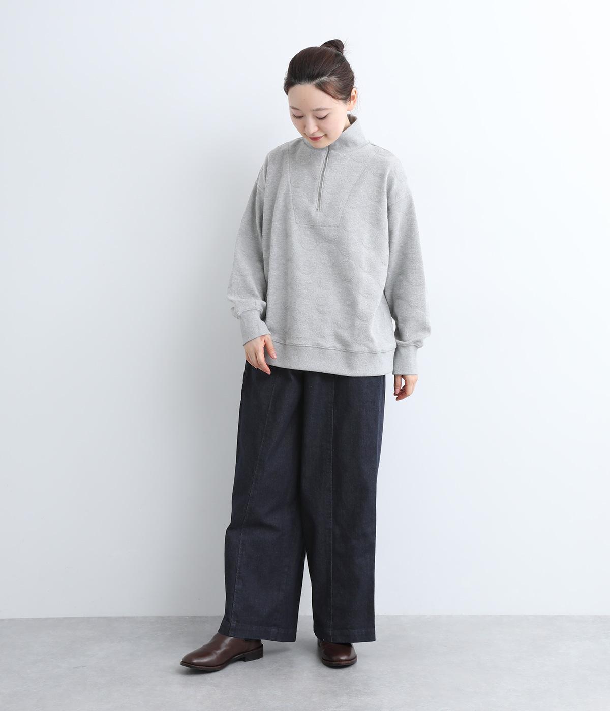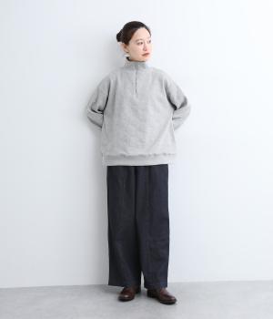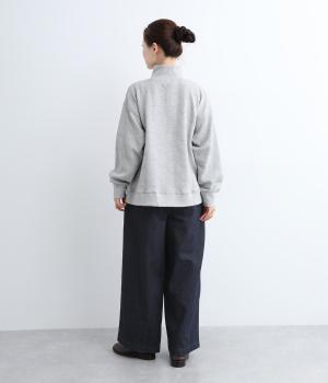 スタイリングしやすさが人気のワイドパンツは、脇線をパンツのフロントにもあしらいデザインを効かせました。腰にはギャザーを添えて腰まわりは適度なゆとりで◎。総ゴムのウエストにさりげなく配した刺しゅうもポイントです。