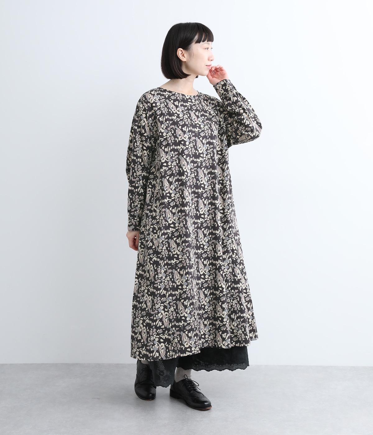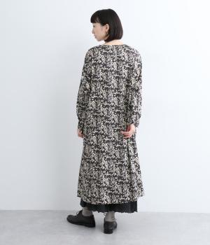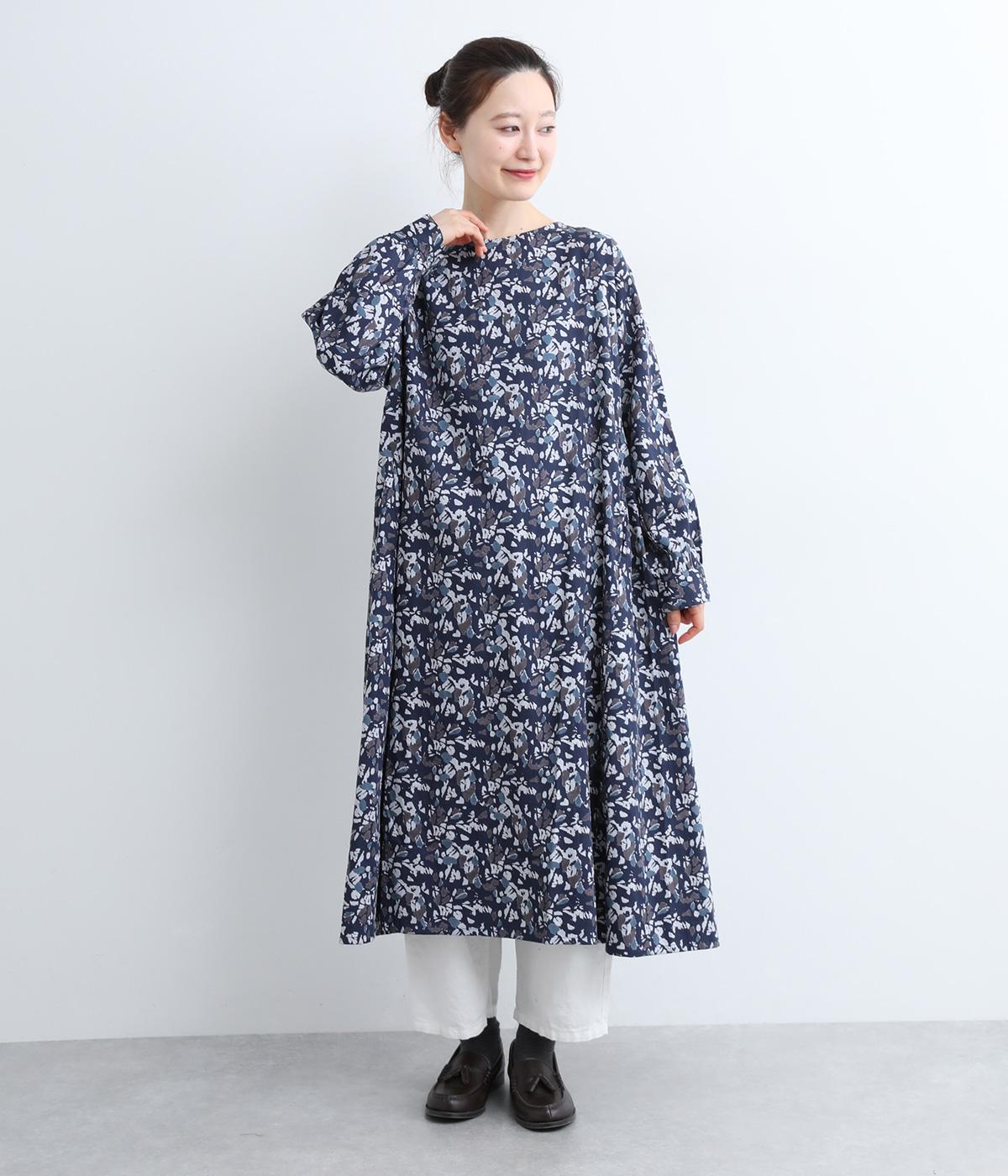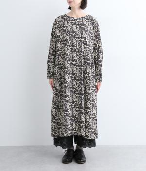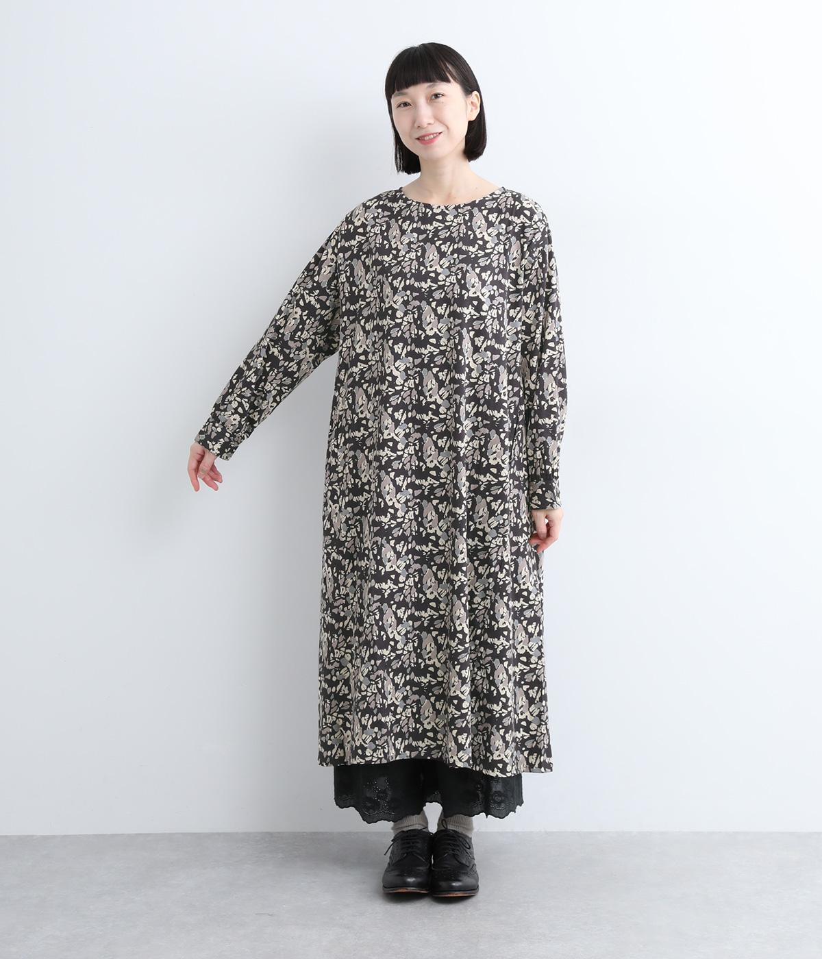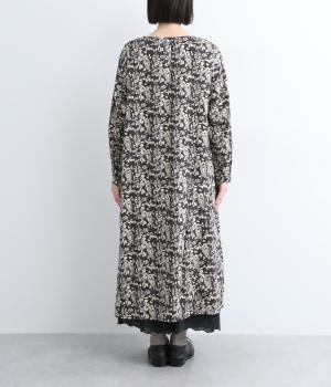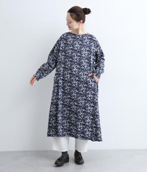 たっぷりととった身頃がふんわりと広がる優美なAラインワンピース。首元はクルーネックですっきりと仕上げ、柄のインパクトをほどよくセーブしました。足首まで届かない長さだから、スカートやパンツをレイヤードしたスタイリングも楽しめます。