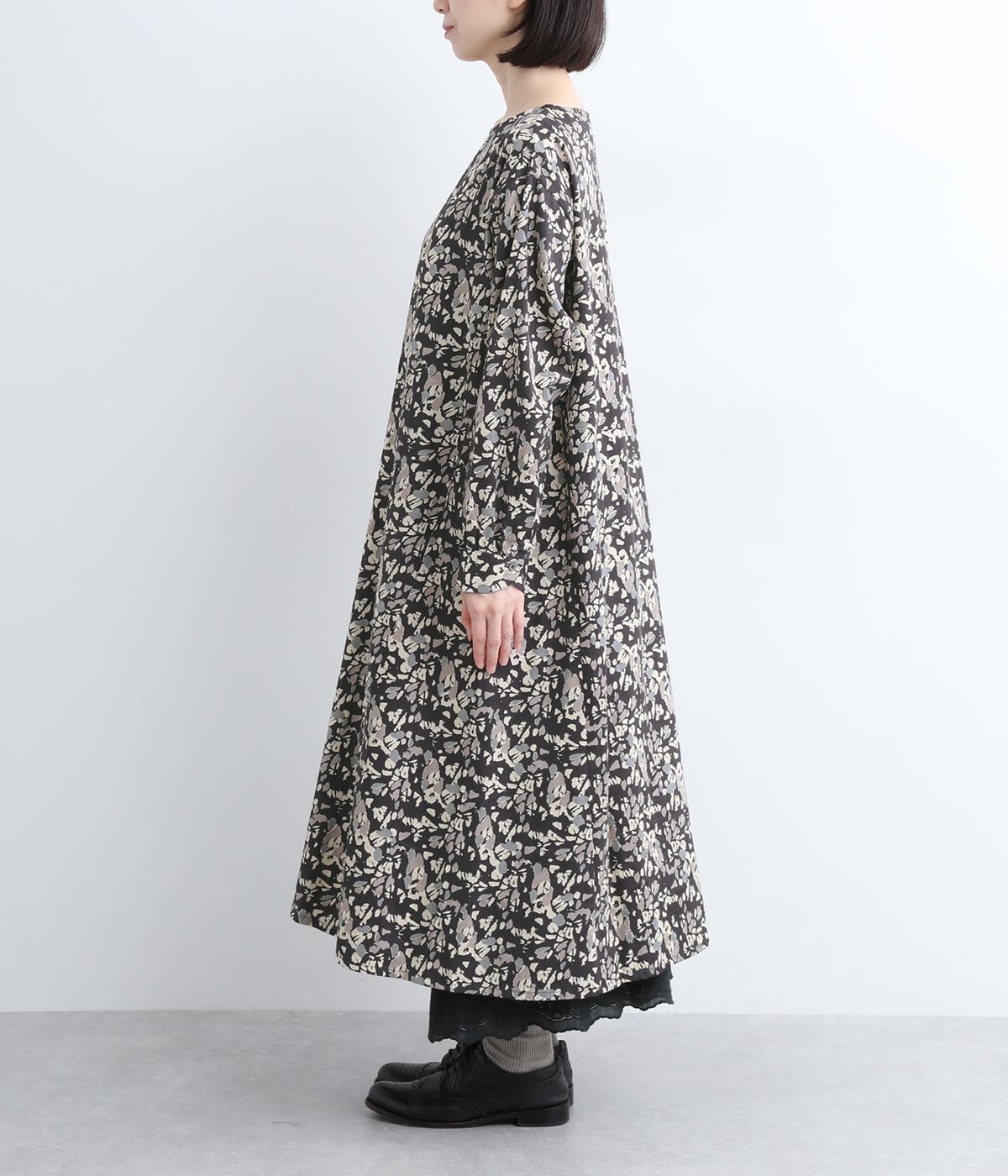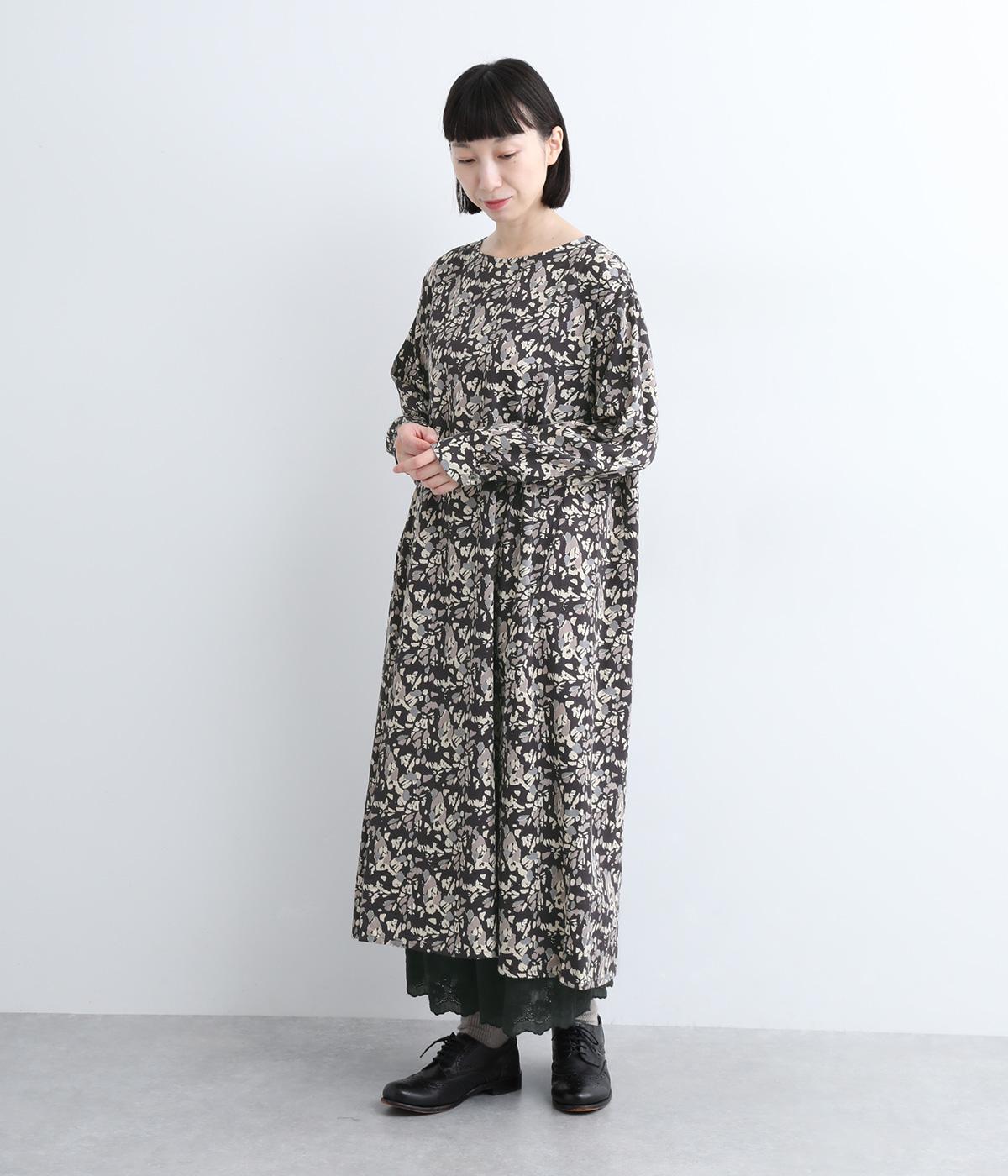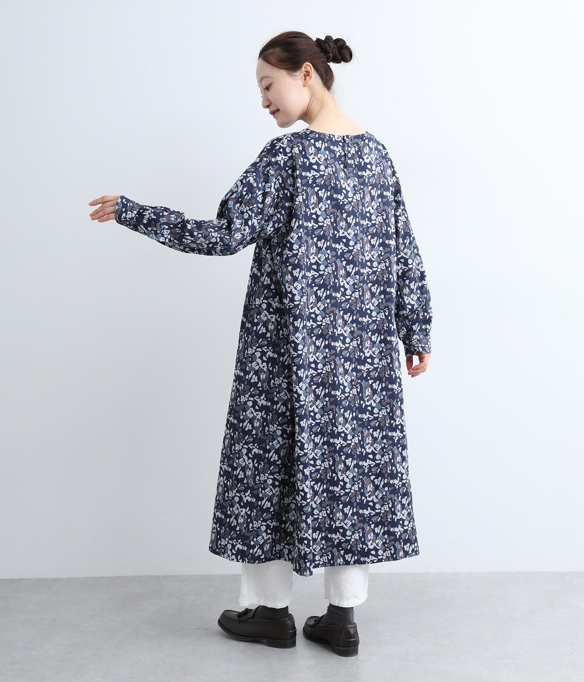 たっぷりととった身頃がふんわりと広がる優美なAラインワンピース。首元はクルーネックですっきりと仕上げ、柄のインパクトをほどよくセーブしました。足首まで届かない長さだから、スカートやパンツをレイヤードしたスタイリングも楽しめます。