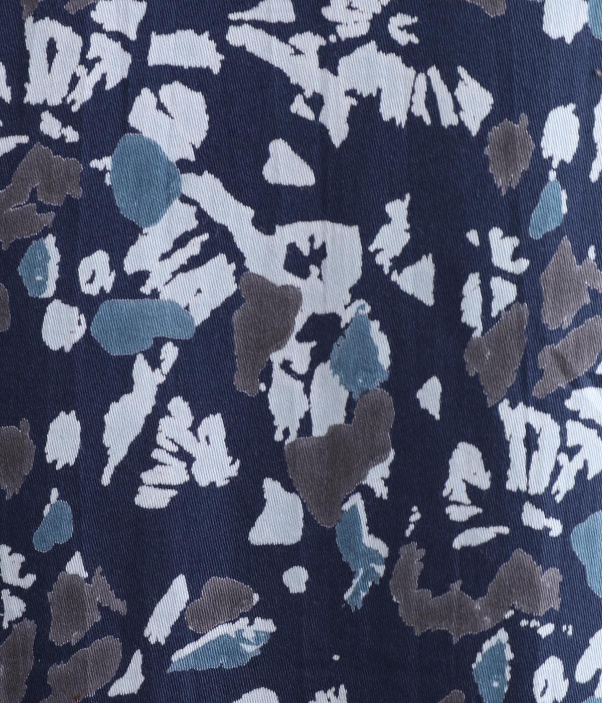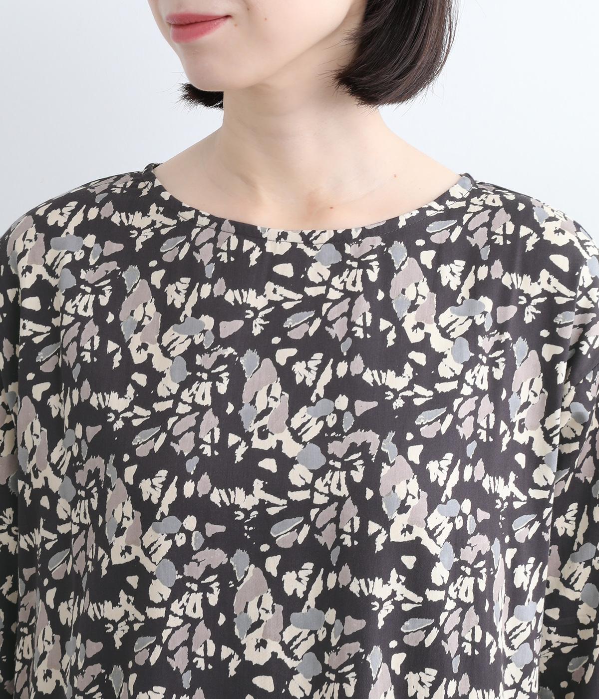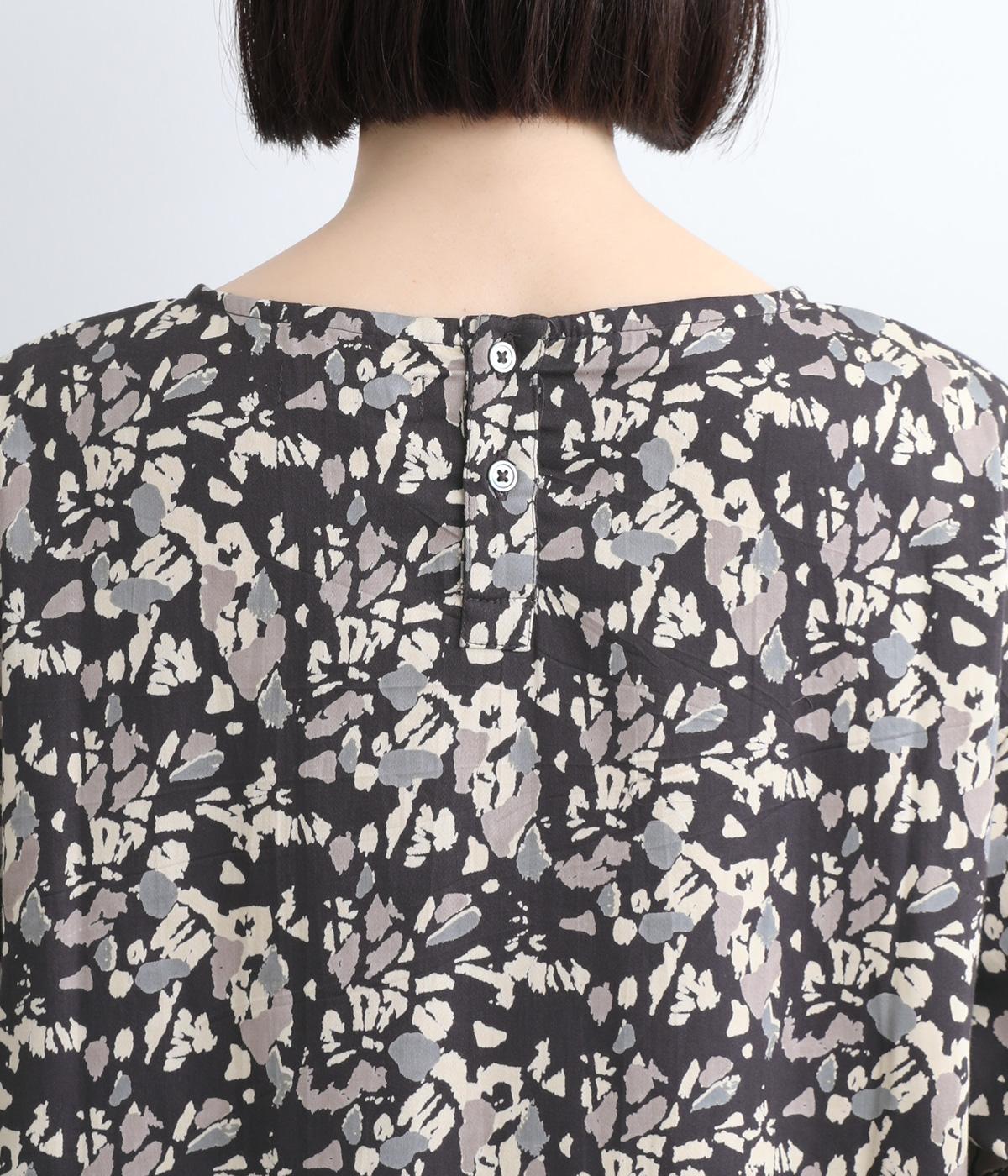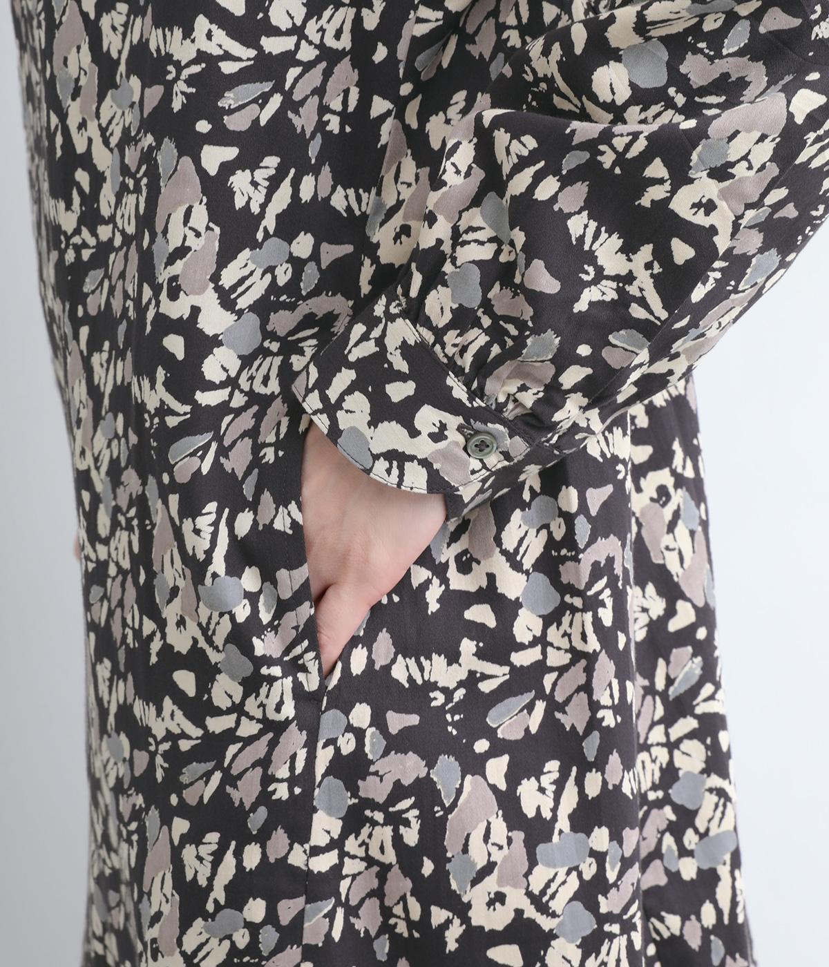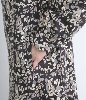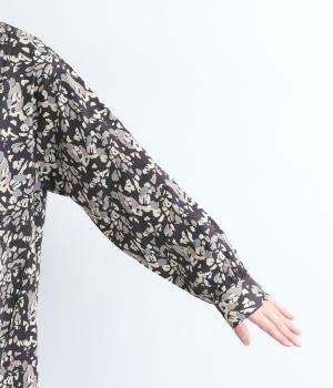 オーガニックコットンのやわらかな表情に、ほんのりと滑らかなツヤを添えてサテンのような風合い実現。木洩れ日をイメージしたシックな色味のプリントに好相性な生地感です。