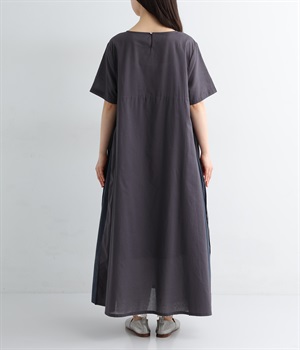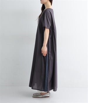 両サイドに施された配色切り替えが、シンプルな中にも立体感とアクセントを生むワンピース。
