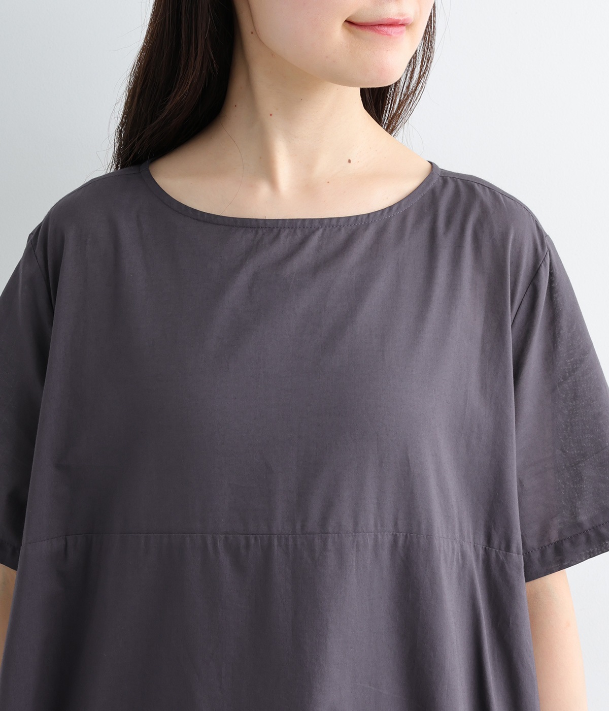 滑らかできれいめなコットン素材を採用しました。さらりとした軽やかな生地でまとまりもよく、切り替え下には裏地をつけて透け感を軽減。ご自宅で手洗いできるのも、夏にはうれしいポイントです。