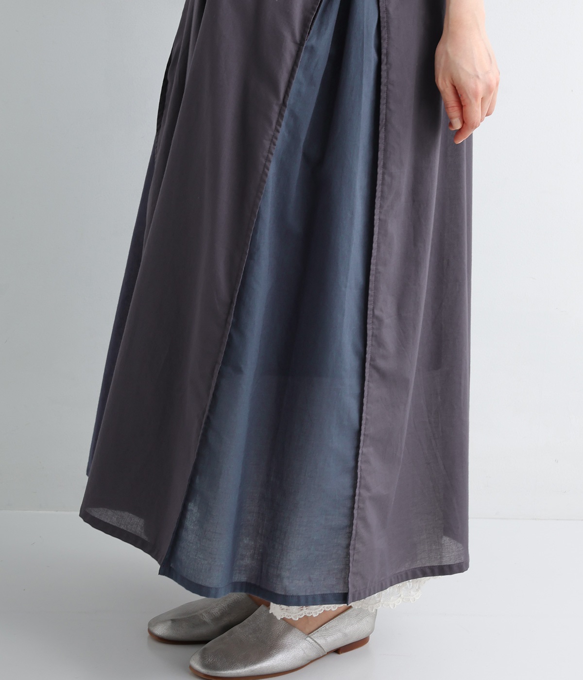 たっぷりと生地を使った贅沢なAラインが、動くたびにしなやかなドレープを描きます。