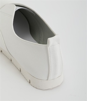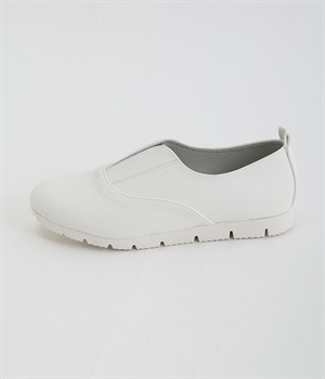 靴ひもを結ぶ手間がカットされて足入れがとてもスムーズなスリッポンシューズ。タン部分にはゴム素材を使用し、足の形状に合わせて柔軟に伸びてくれるコンフォートタイプです。つま先部分がやや上向きにせり上がっているため快適な歩行をサポート。脱ぎはきをスムーズに行えるよう、かかとにはタブを備えました。アッパーにあしらったステッチワークで魅せるシンプルな佇まいで、大人のスタイリングにスッとなじみます。